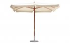 Lekki parasol ogrodowy z nogą centralną egzotycznego drewna.