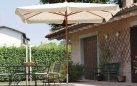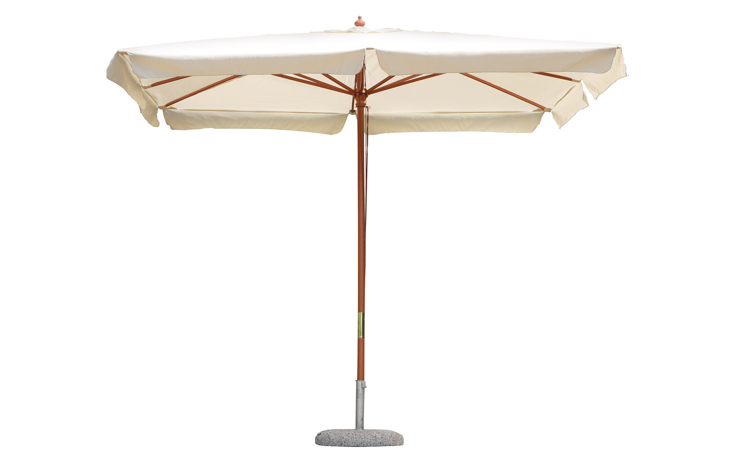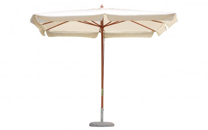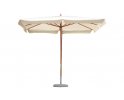 Lekki parasol ogrodowy z nogą centralną egzotycznego drewna.