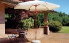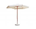 Lekki parasol ogrodowy z nogą centralną egzotycznego drewna.
