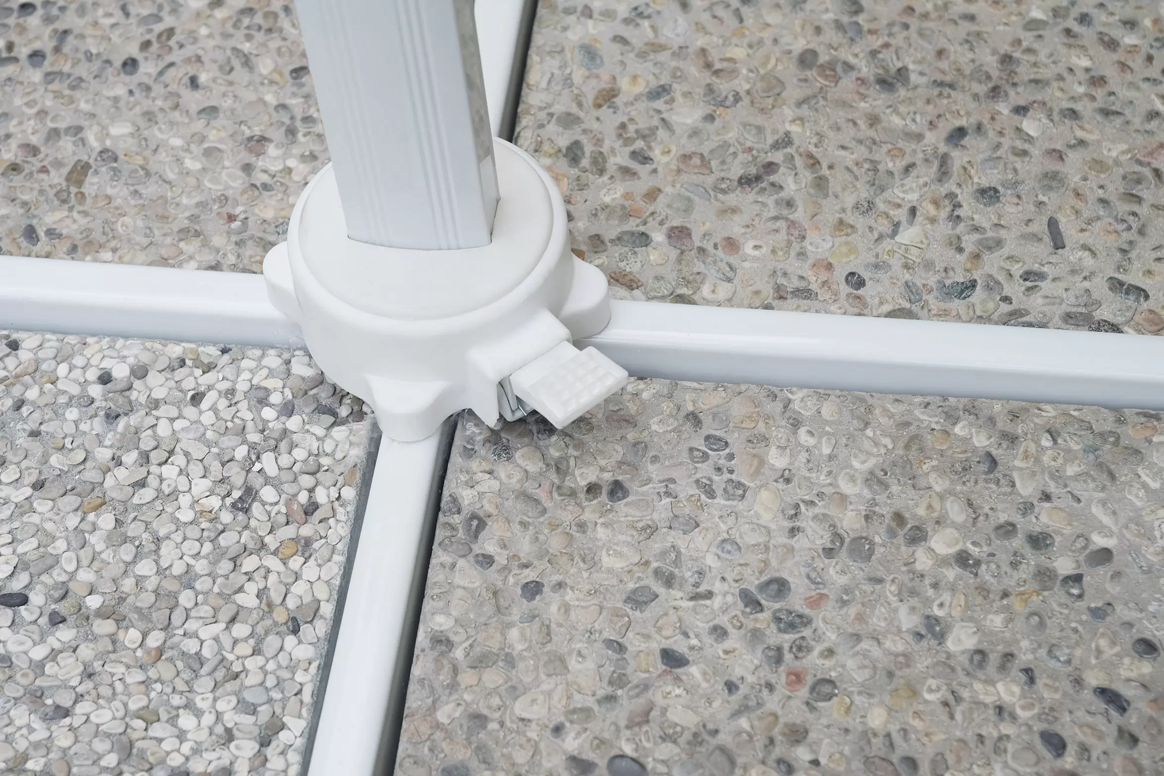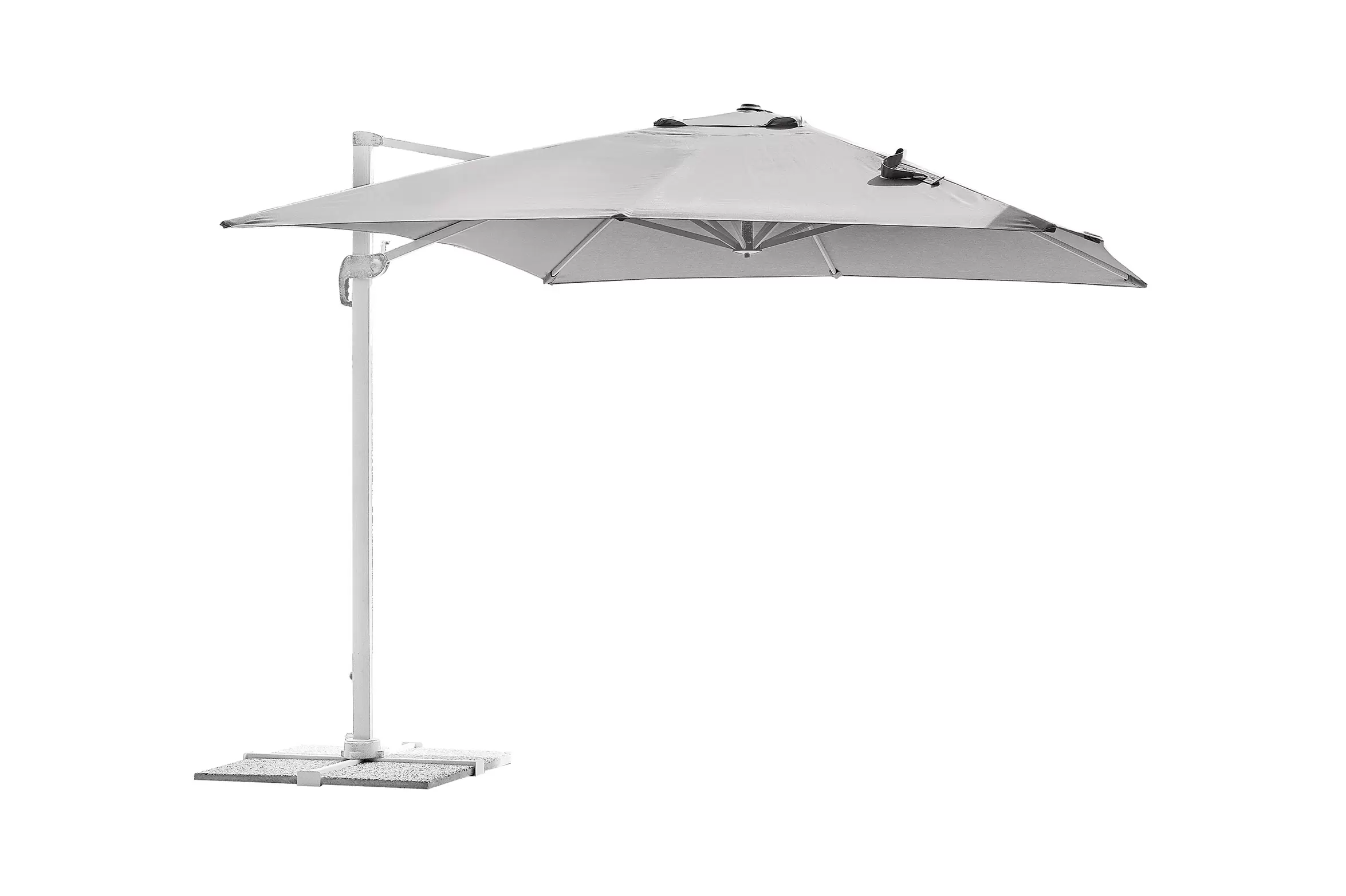 Obrotowy parasol ogrodowy z nogą boczną w kolorze białym.