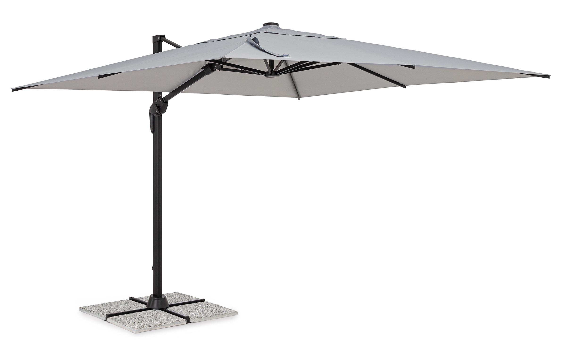 Podstawa w kształcie krzyża wykonana jest ze stali. W zestawie znajduje się pokrowiec, jednak cementowe bazy należy dokupić oddzielnie.