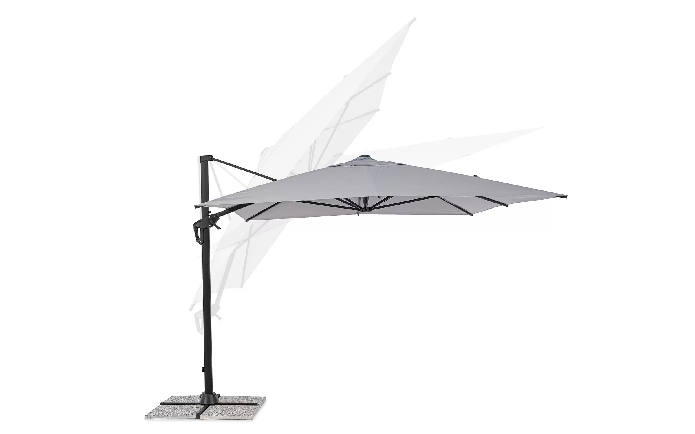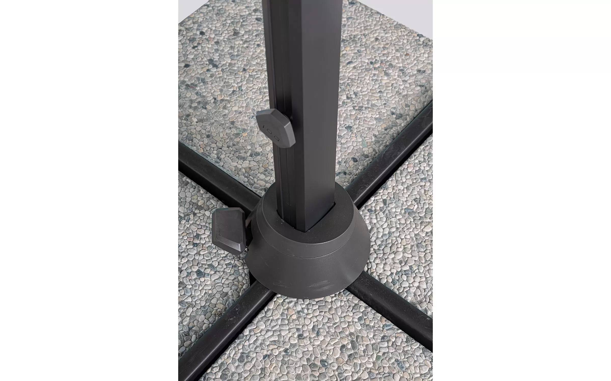 Podstawa w kształcie krzyża wykonana jest ze stali. W zestawie znajduje się pokrowiec, jednak cementowe bazy należy dokupić oddzielnie.