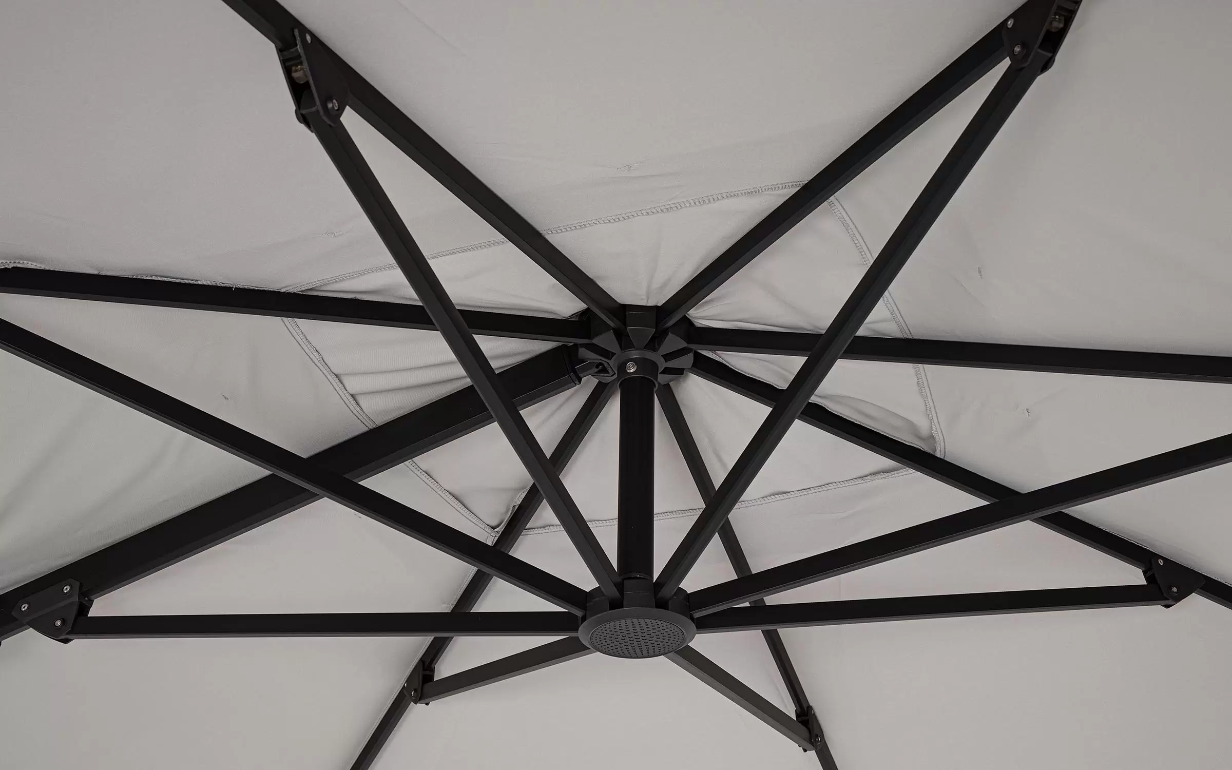 Pokrycie poliestrowe 250gr/m2 pokryte poliamidem z odpowietrznikiem. Stalowa podstawa krzyżowa. Obracany o 360°.