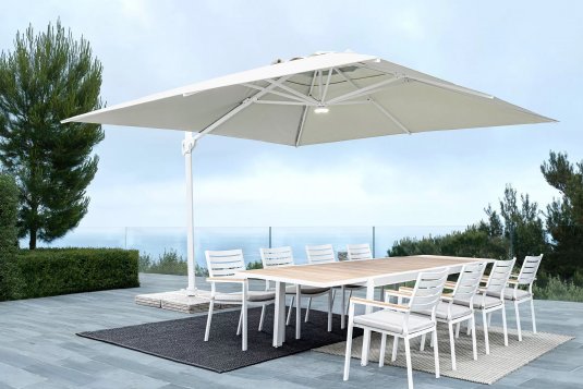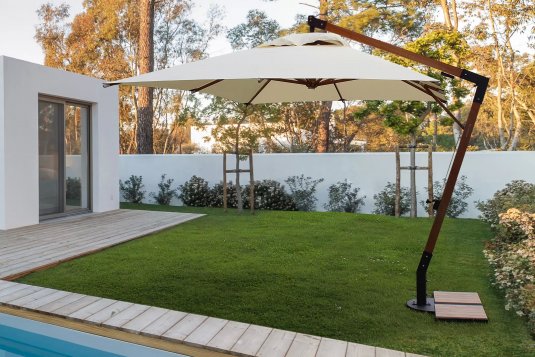 Duże parasole doskonale sprawdzą się wszędzie tam, gdzie ulgi od słońca potrzebuje większa ilość osób lub większego gabarytu produkty jak np. meble ogrodowe, gdzie schronienie znajdzie cała rodzina.
