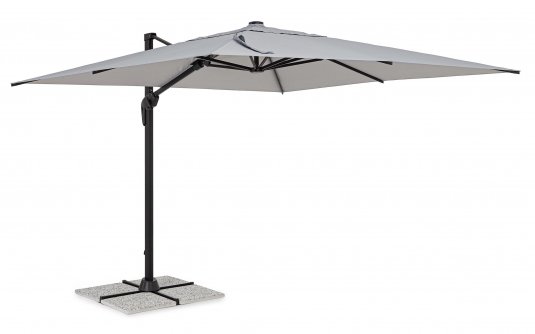 Parasol noga boczna 300x300 cm / noga aluminiowa ciemnoszara / parasol obrotowy 360 st, pochylany w 2 płaszczyznach / materiał poliestrowy 220 g/m2 UPF 30+ / podstawa granitowa 90 kg w cenie