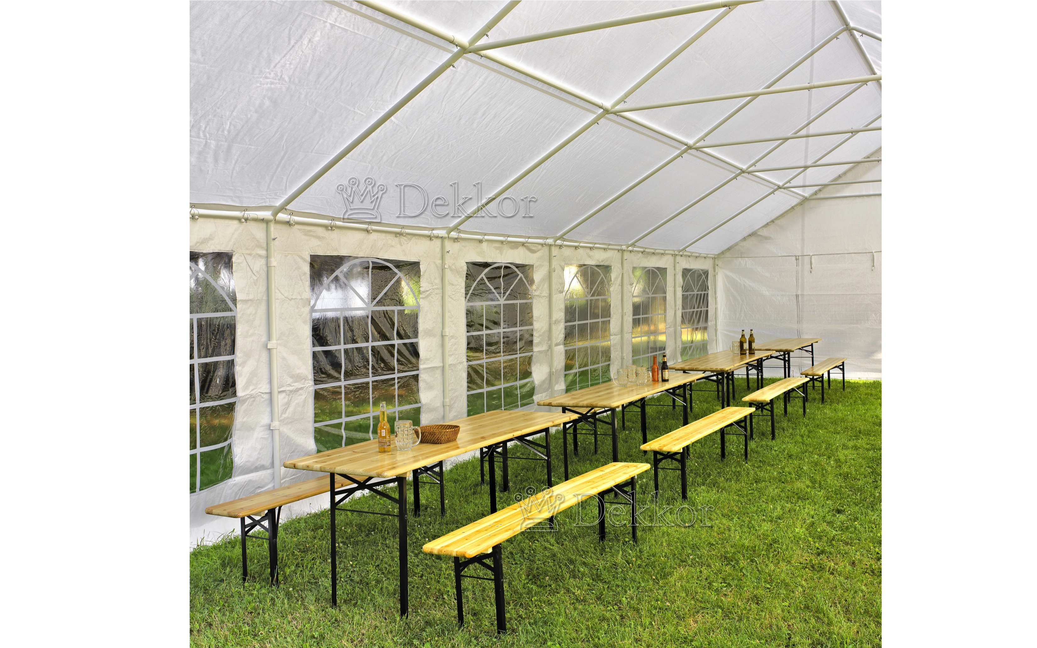 Pawilon idealnie sprawdzi się podczas organizowania większych przyjęć na świeżym powietrzu lub jako namiot handlowy. Wysoka jakość wykonania oraz użytych do produkcji materiałów gwarantuje długoletnie użytkowanie bez widocznych zmian wizualnych.