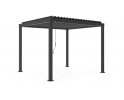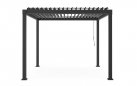 Pergola ogrodowa wykonana ze stali ocynkowanej malowana na kolor antracyt do zadaszenia tarasu z dachem z obracanymi lamelami pozwalającymi całkowicie chronić przed słońcem i deszczem.