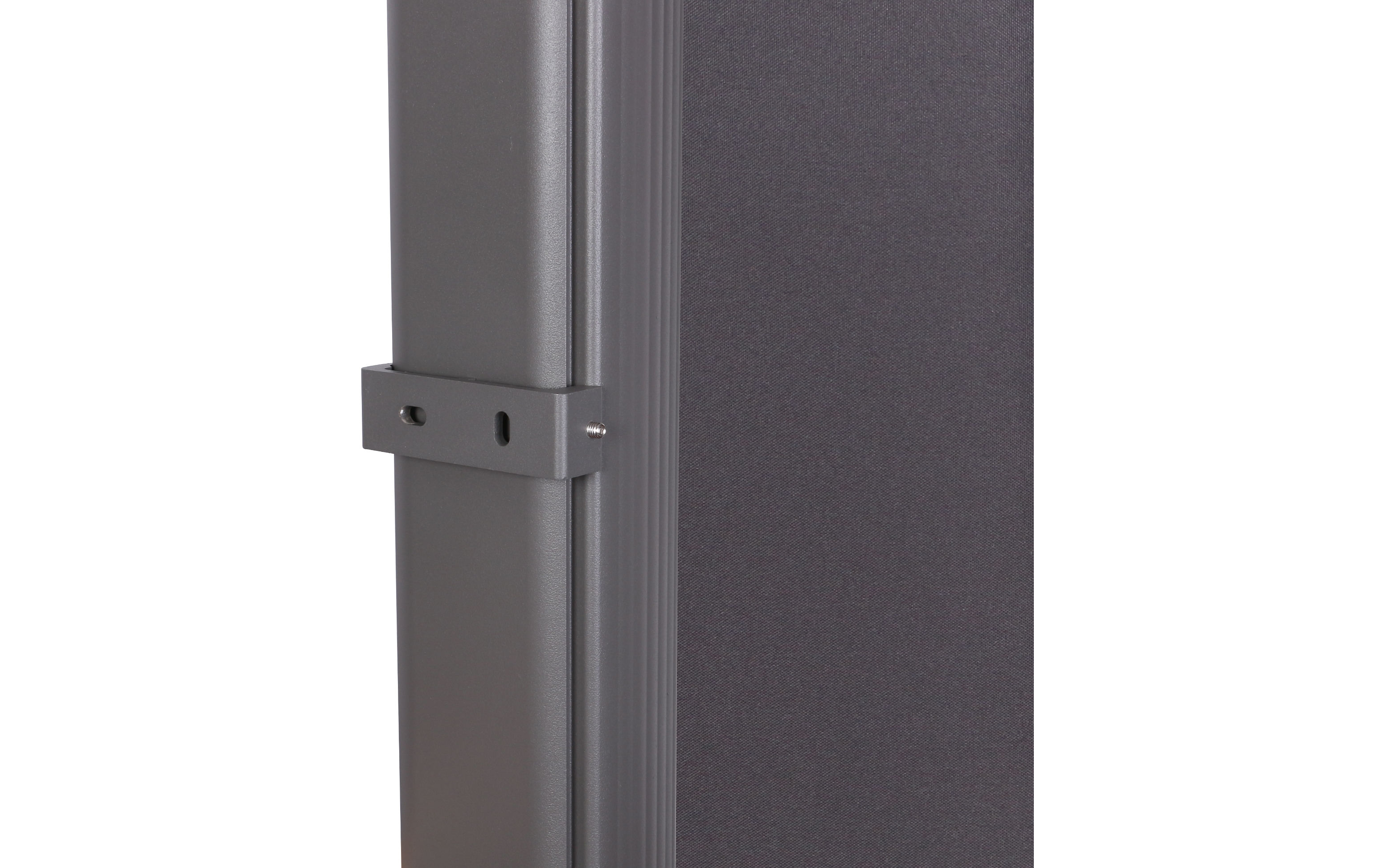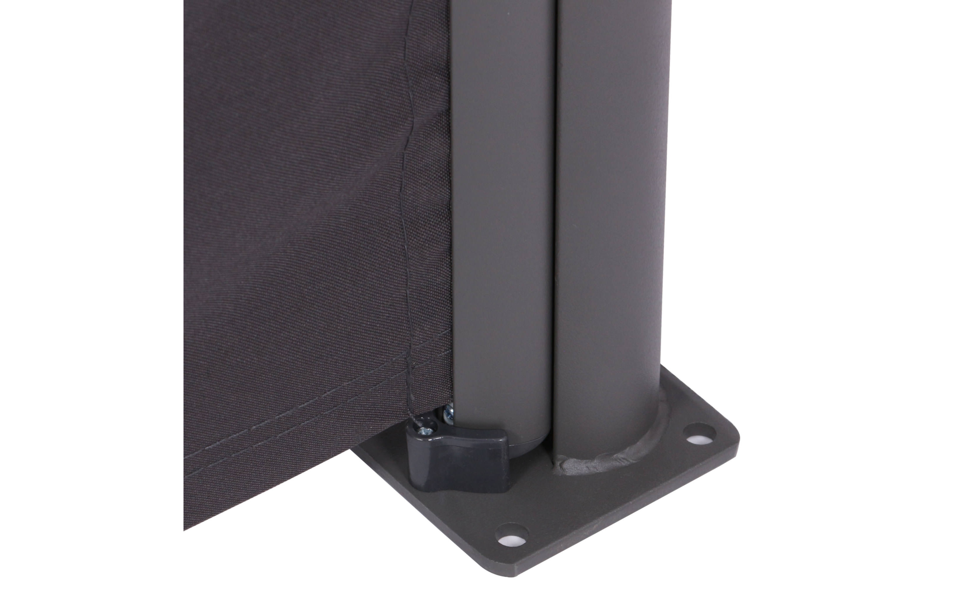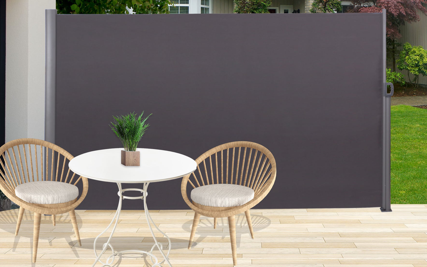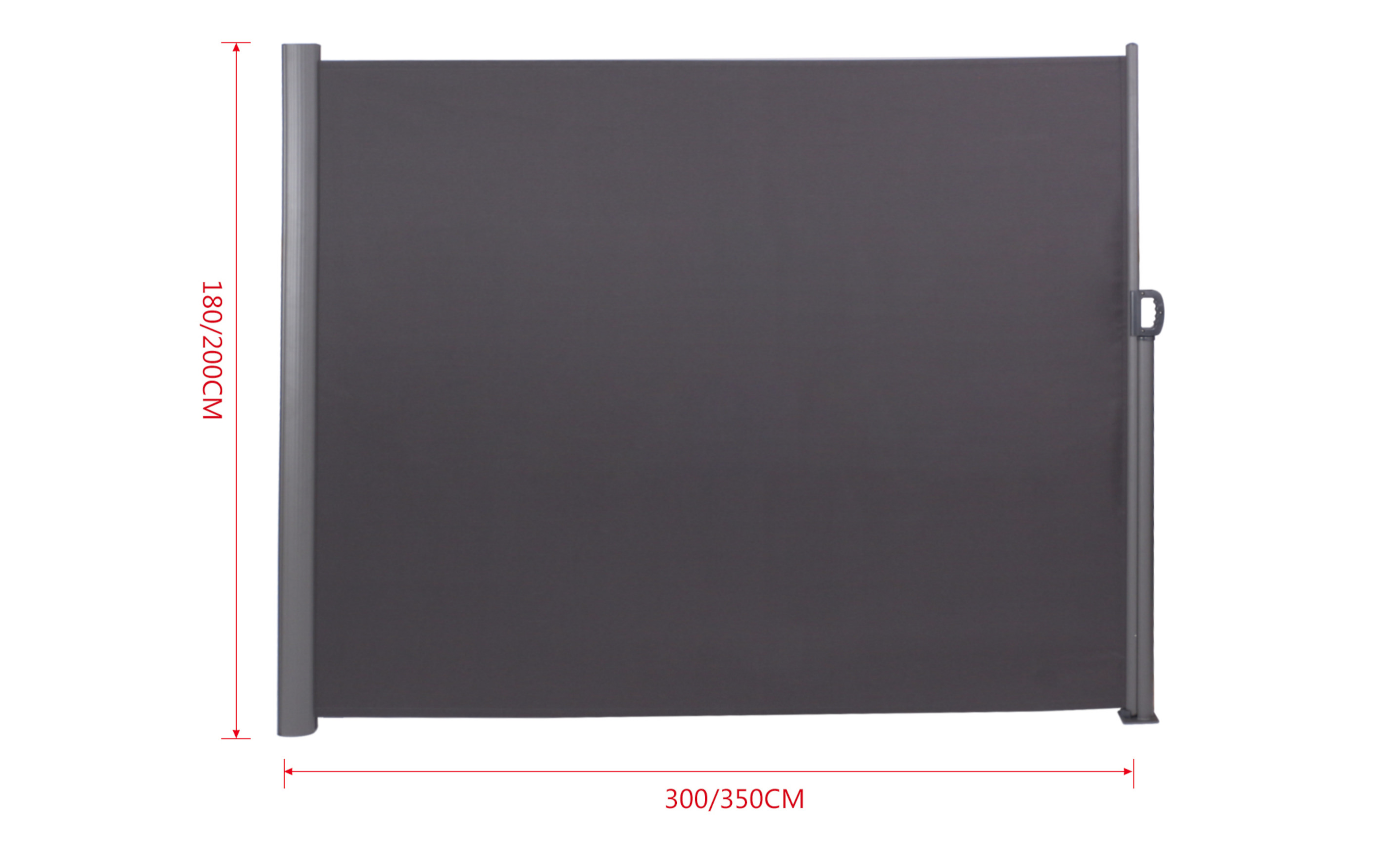 Nieprzejrzysty i wytrzymały materiał poliestrowy (280 g/m²) zapewnia całkowitą prywatność w ogrodzie i na tarasie. Dzięki powłoce PU i współczynnikowi ochrony przed światłem UV30+, ekran jest całkowicie odporny na warunki atmosferyczne. Przy 4 poziomie światłotrwałości tkanina blaknie bardzo powoli przy ciągłym wystawieniu na działanie światła. Zarówno kaseta markizy, jak i uchwyt do podłoża wykonane są z wytrzymałego aluminium, które nie rdzewieje, natomiast dołączone śruby do podłoża wykonane są z ocynkowanej stali. Oczywiście w zależności od podłoża i rodzaju ściany należy dobrać odpowiednie zamocowania.