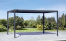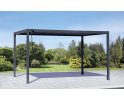 Nowoczesna pergola lamelowa z konstrukcją aluminiowo-stalową malowaną proszkowo w kolorze antracytowym. Wyposażona w regulowany dach lamelowy obsługiwany za pomocą zewnętrznej korby stalowej. Idealna na taras, do ogrodu lub strefy wypoczynku.