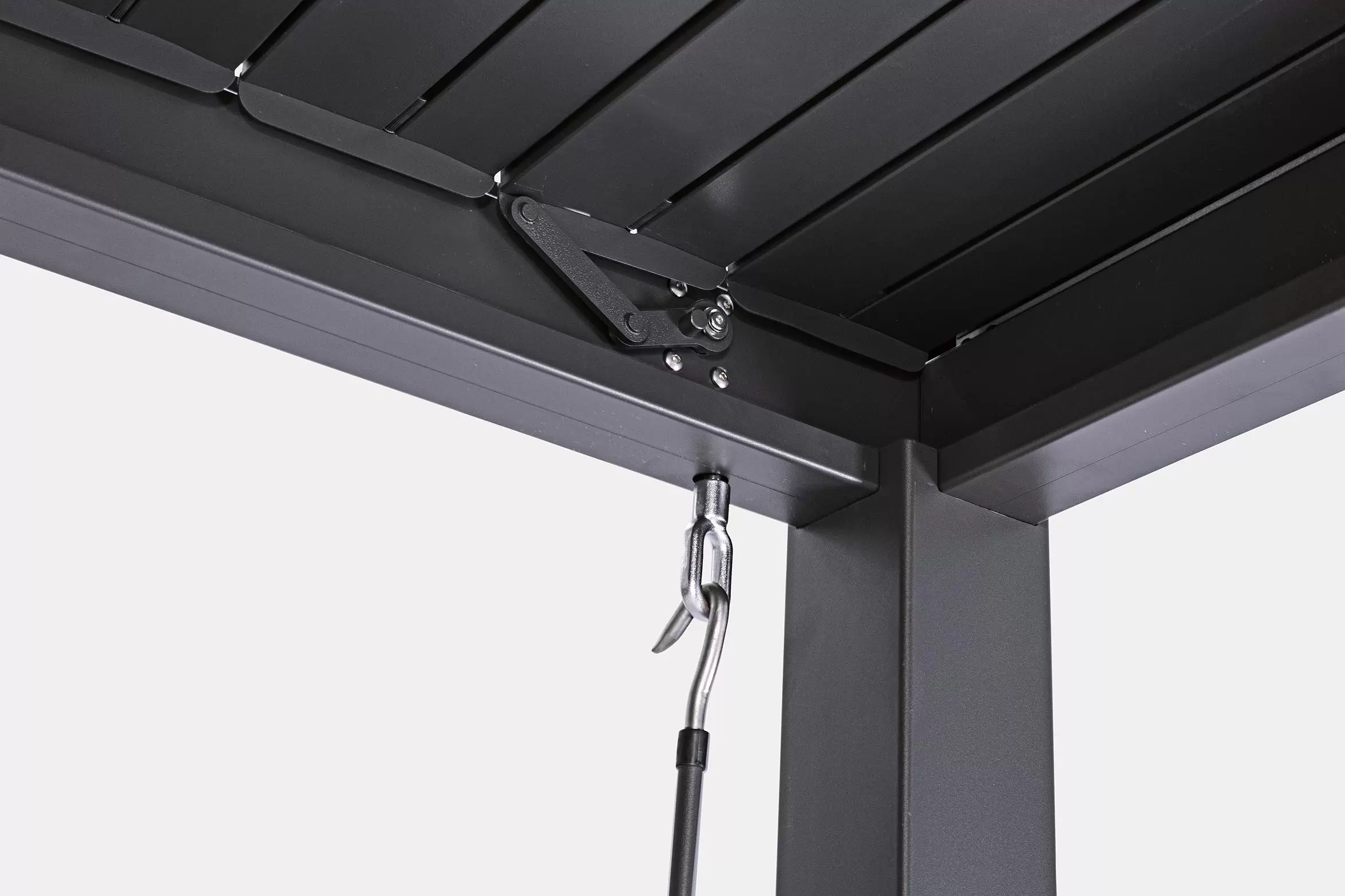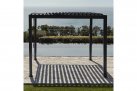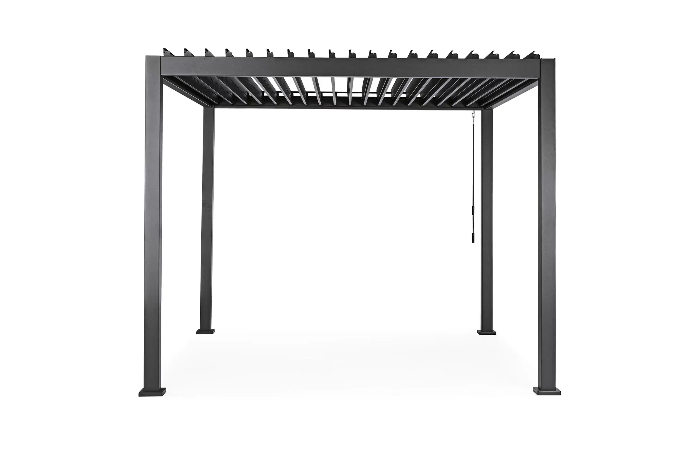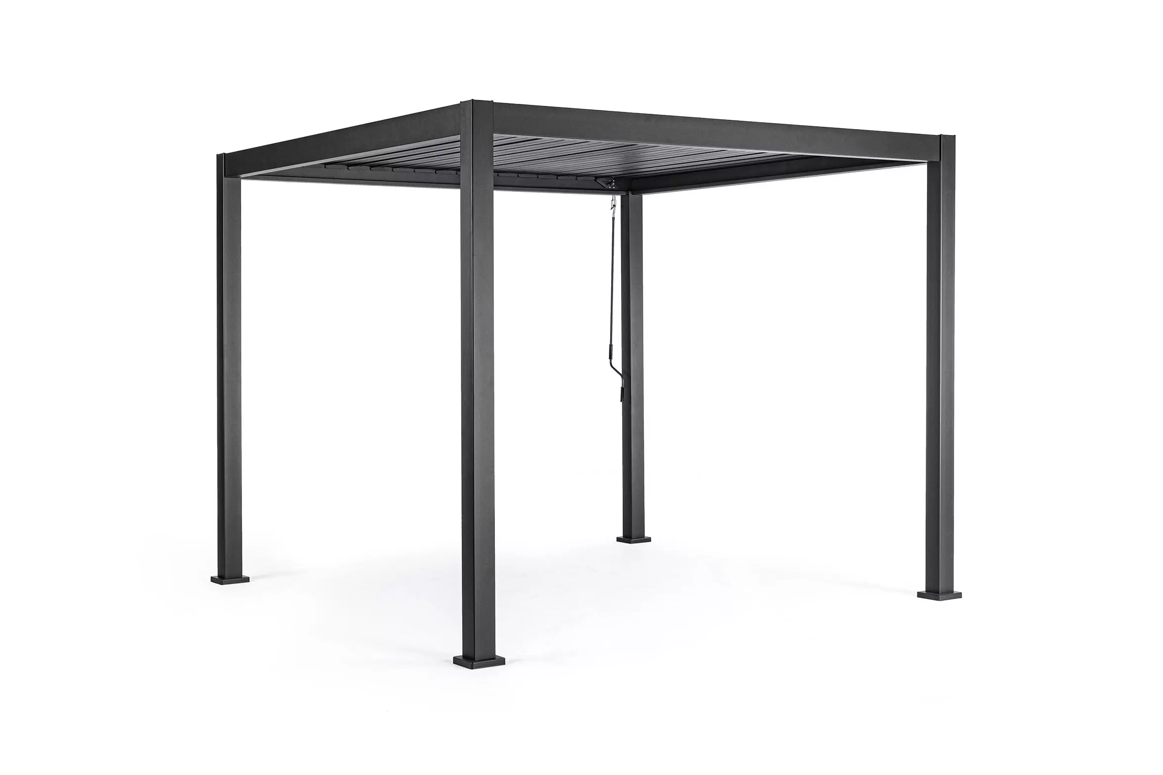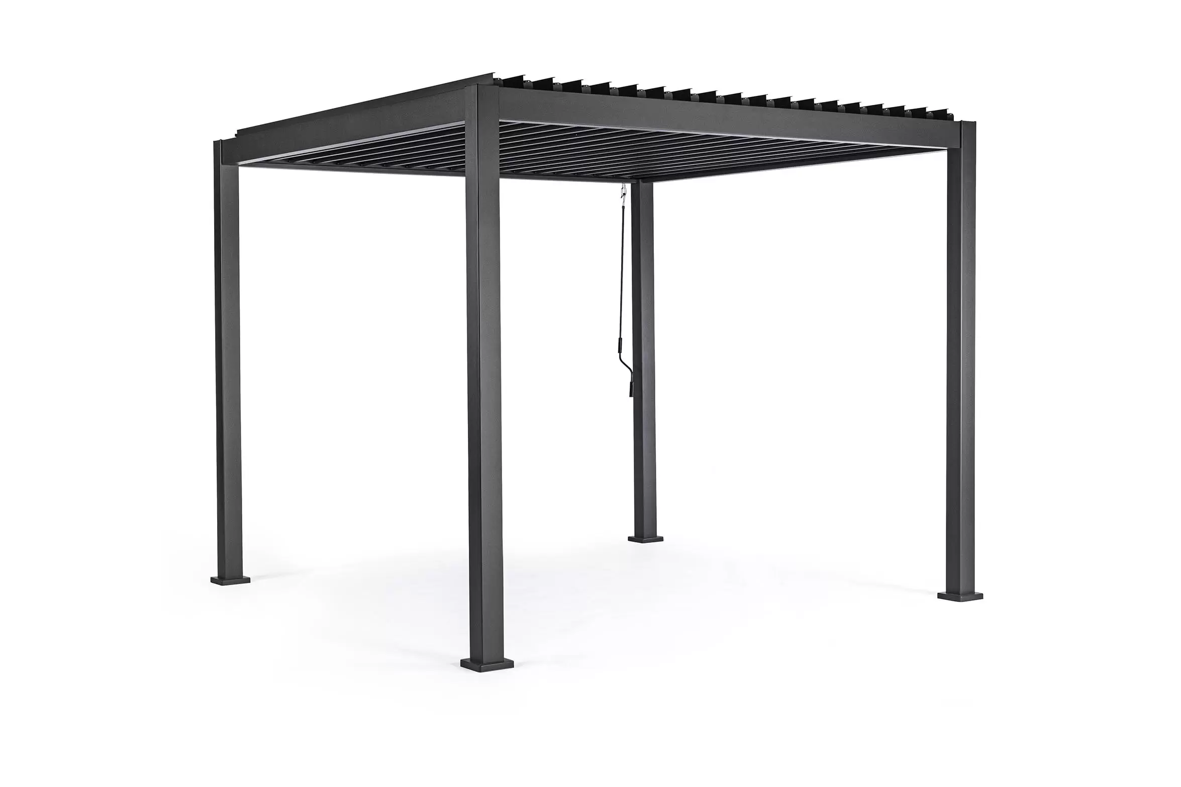 Pawilon ogrodowy aluminiowy do zadaszenia tarasu z dachem z obracanymi lamelami pozwalającymi całkowicie chronić przed słońcem i deszczem.