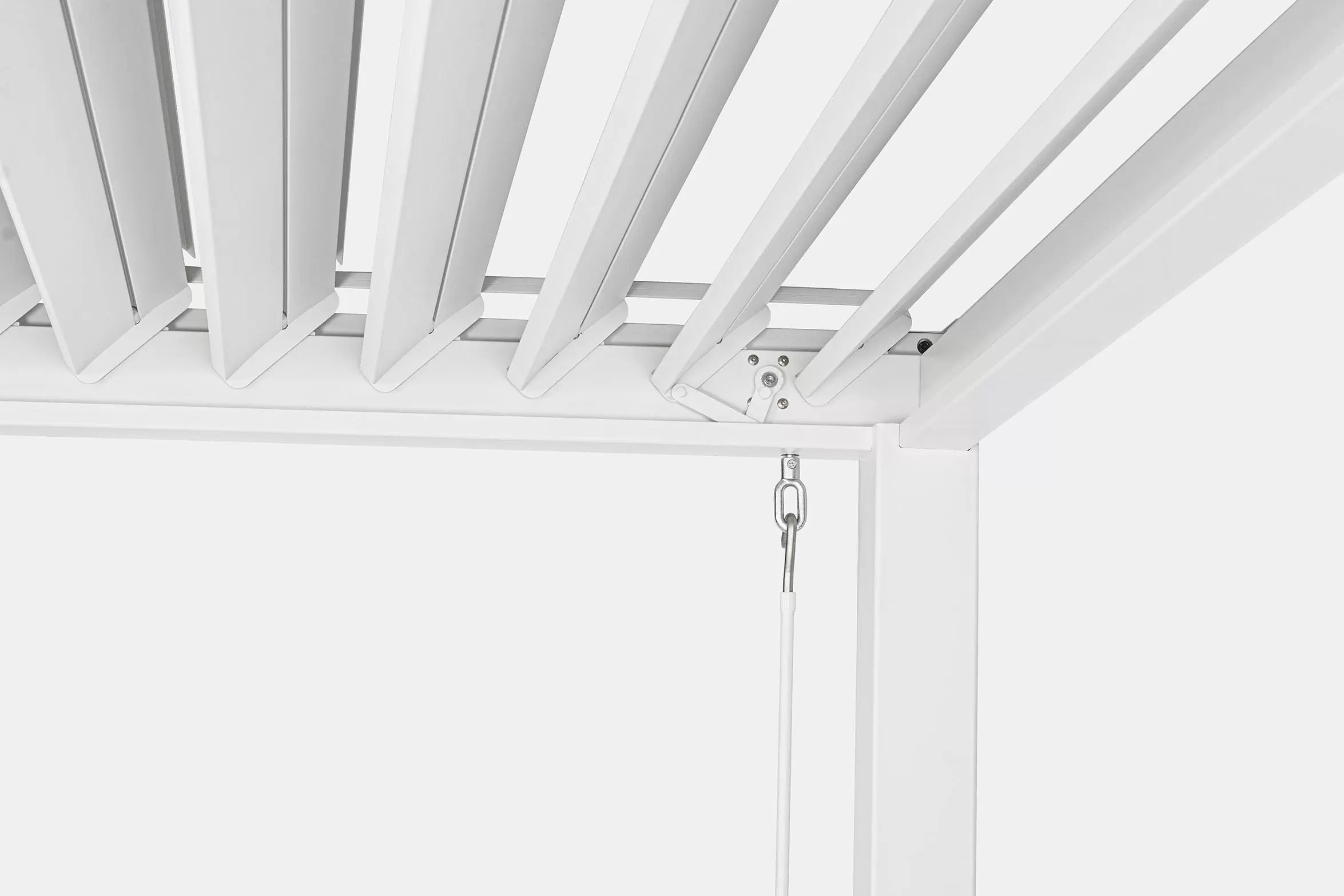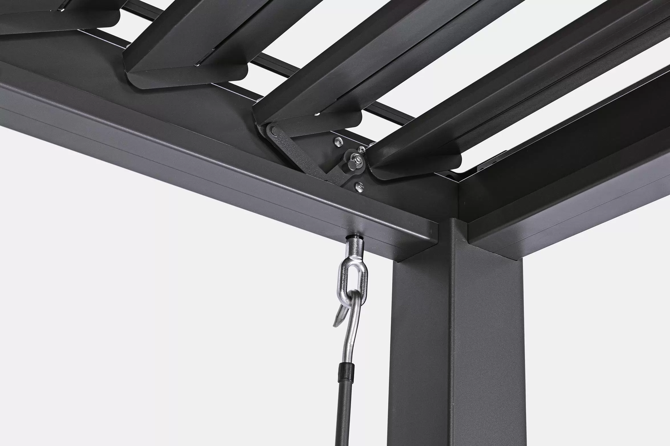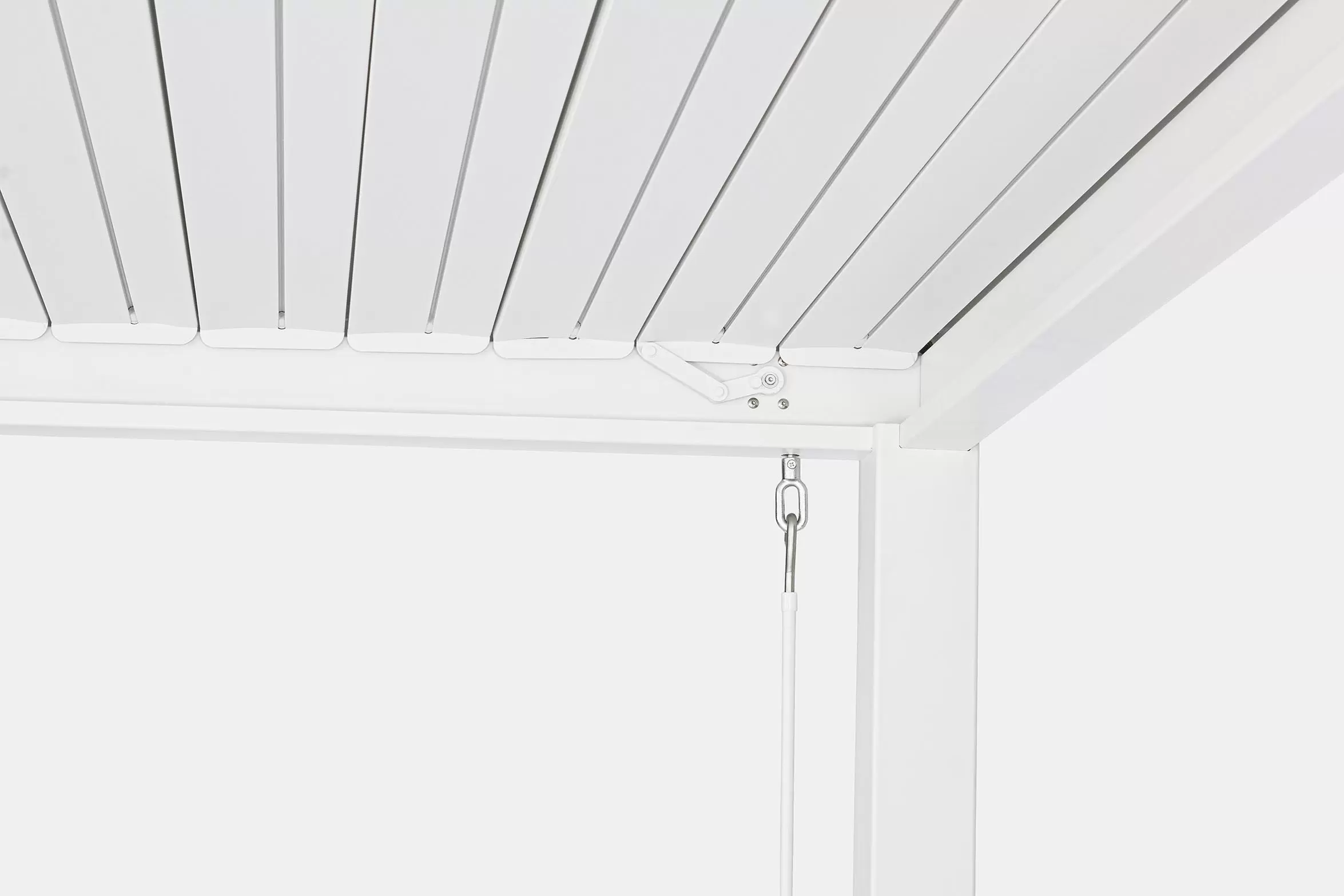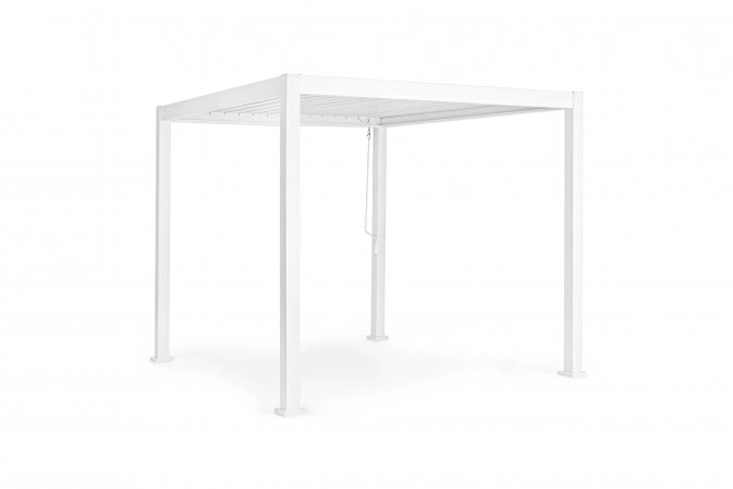 Pawilon ogrodowy aluminiowy do zadaszenia tarasu z dachem z obracanymi lamelami pozwalającymi całkowicie chronić przed słońcem i deszczem.