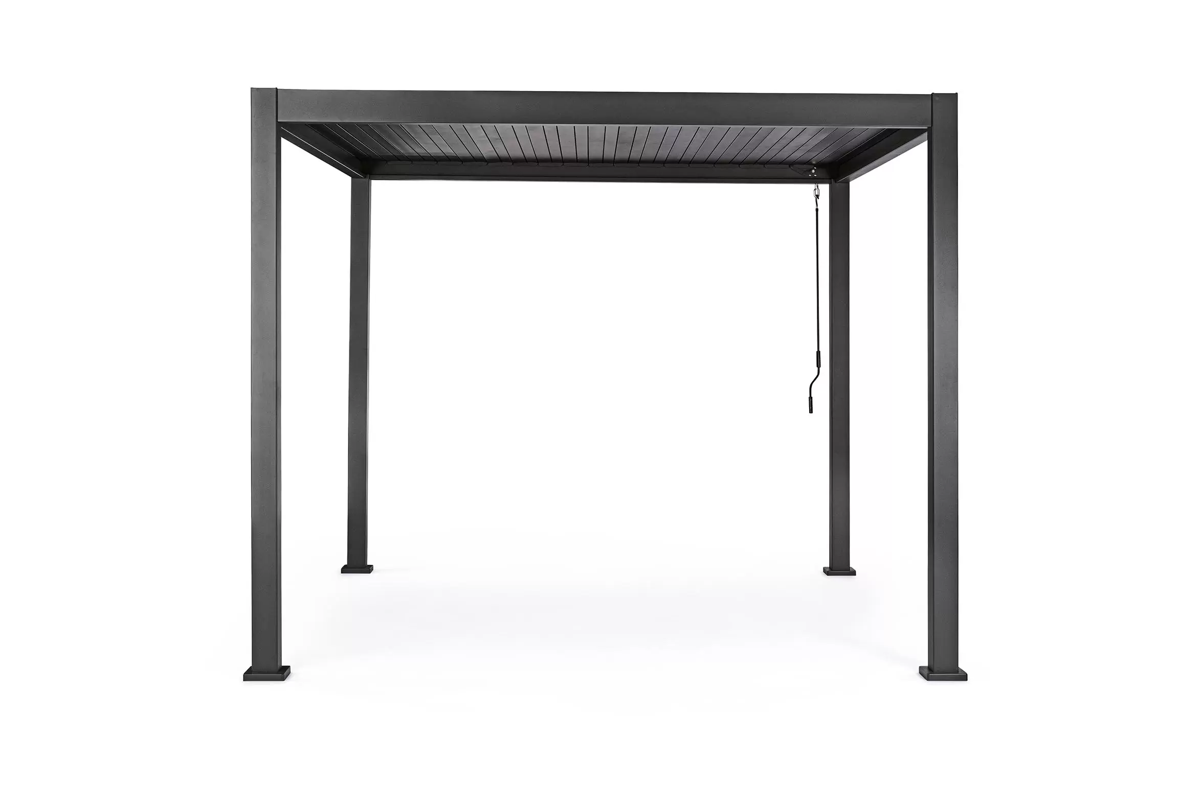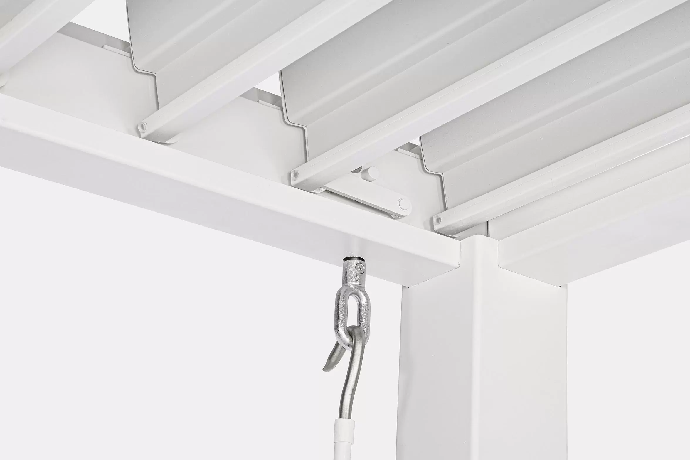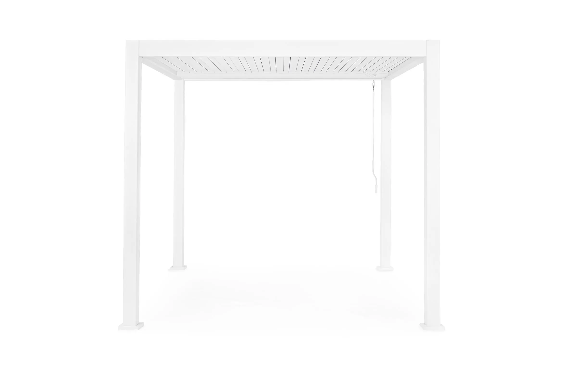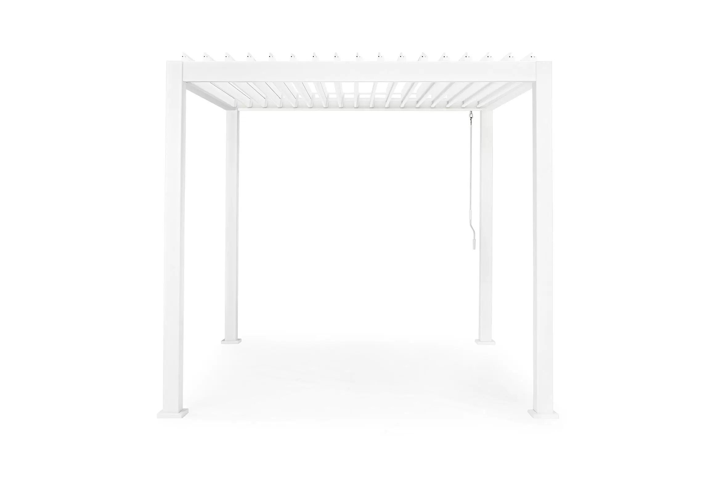 Pawilon ogrodowy aluminiowy do zadaszenia tarasu z dachem z obracanymi lamelami pozwalającymi całkowicie chronić przed słońcem i deszczem.