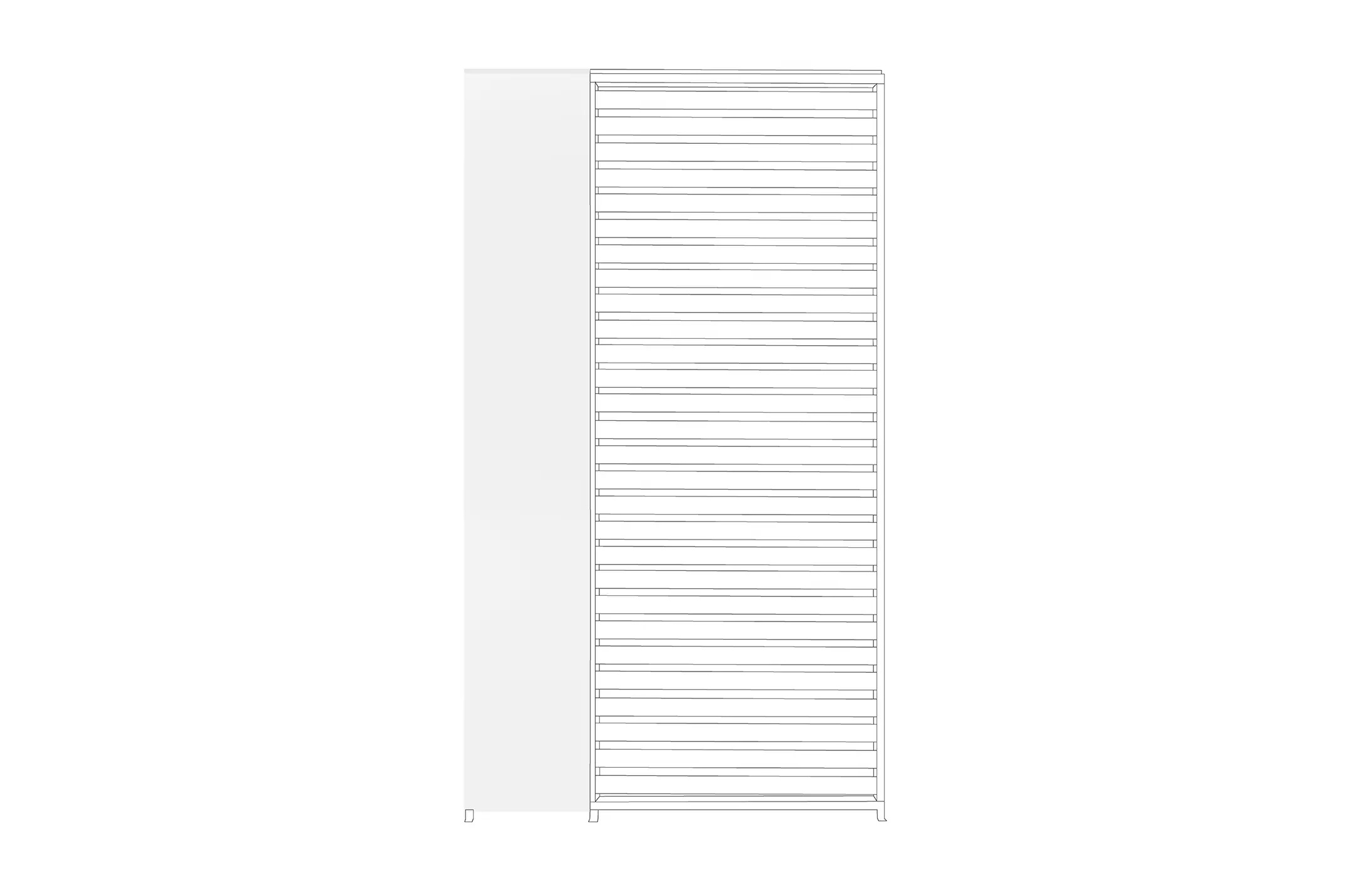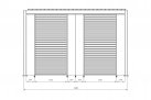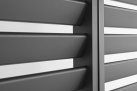 Aluminium malowane proszkowo. Słupki główne 11x11 cm, słupki poziome 14x7,5 cm.