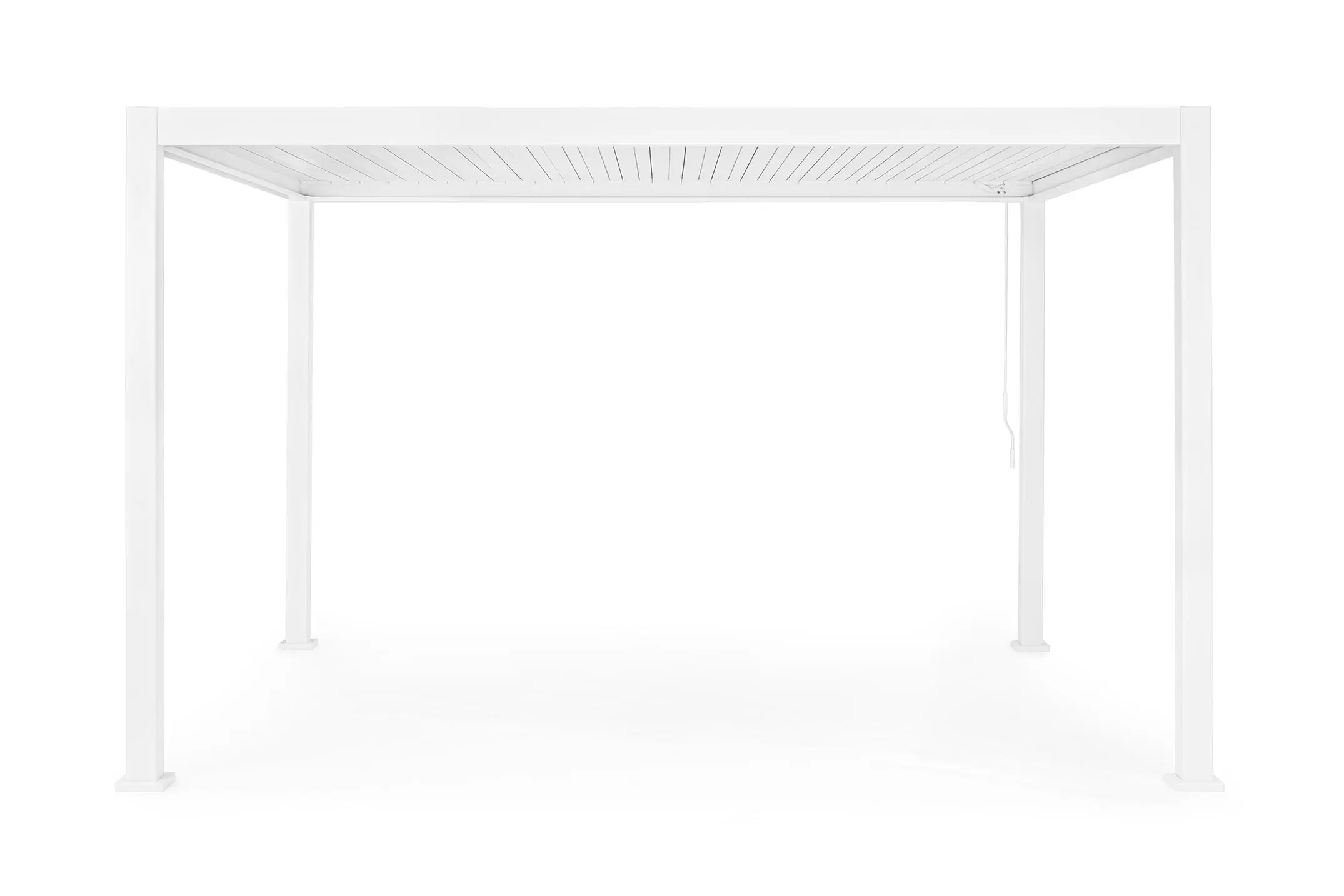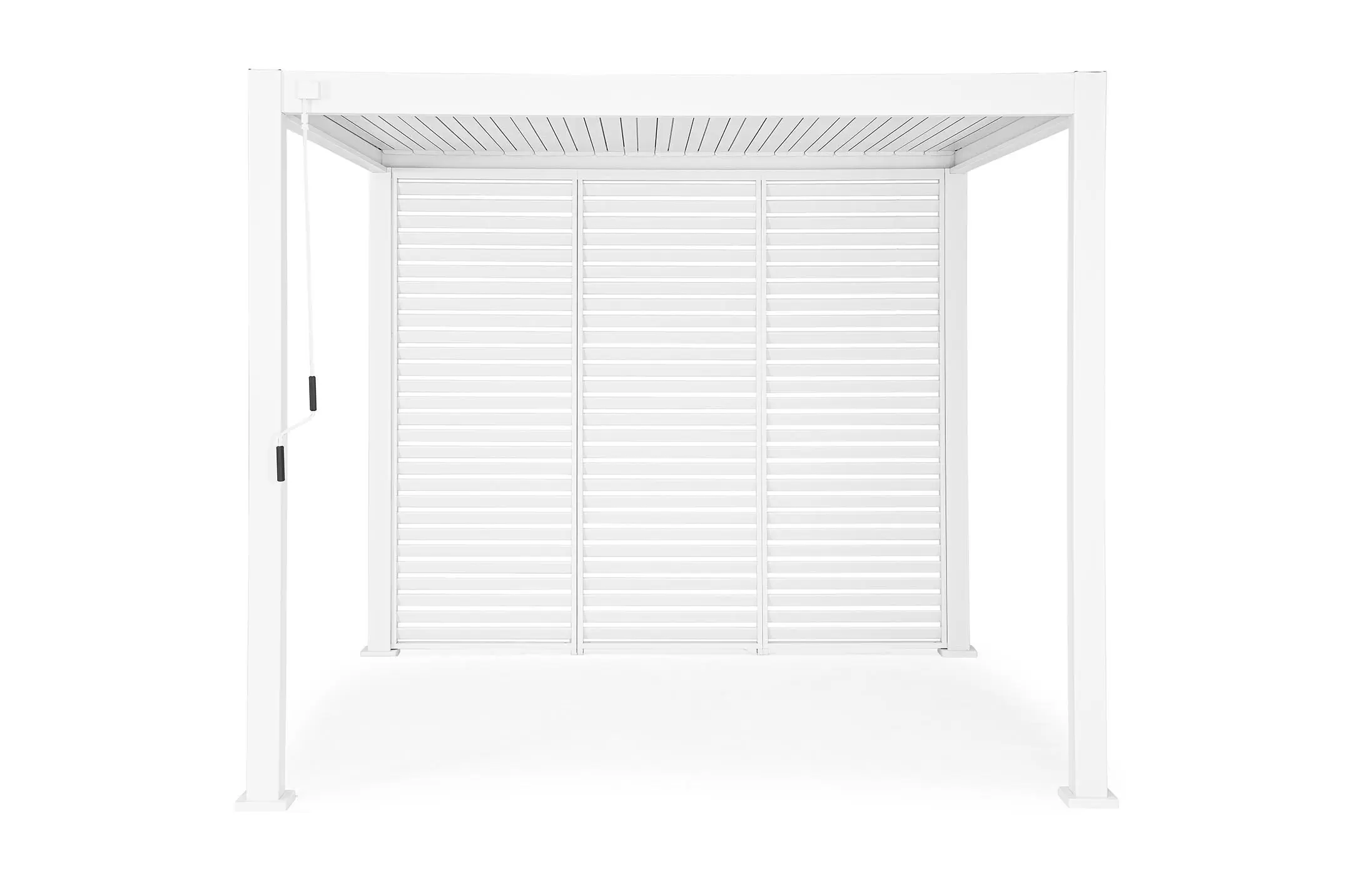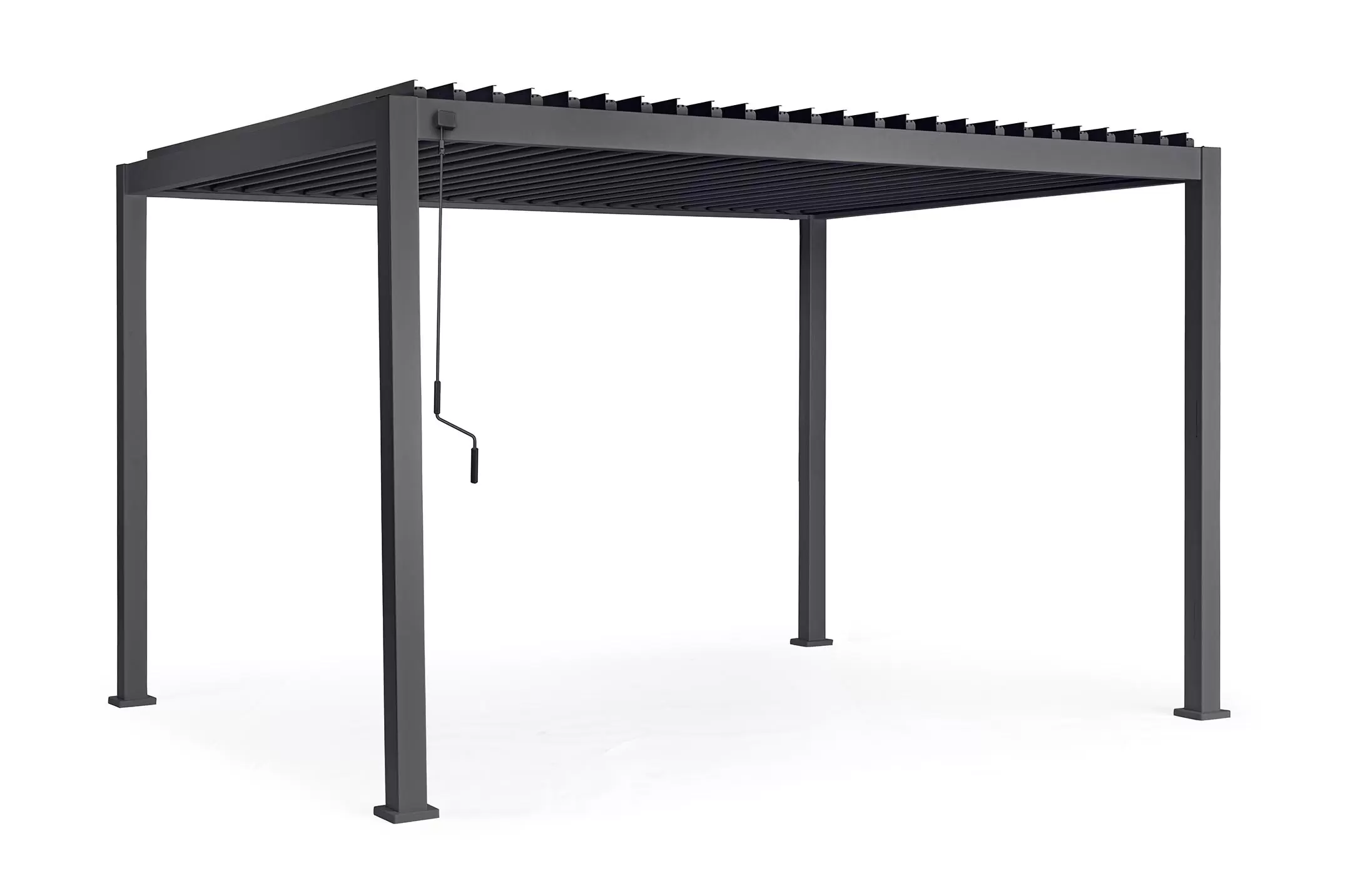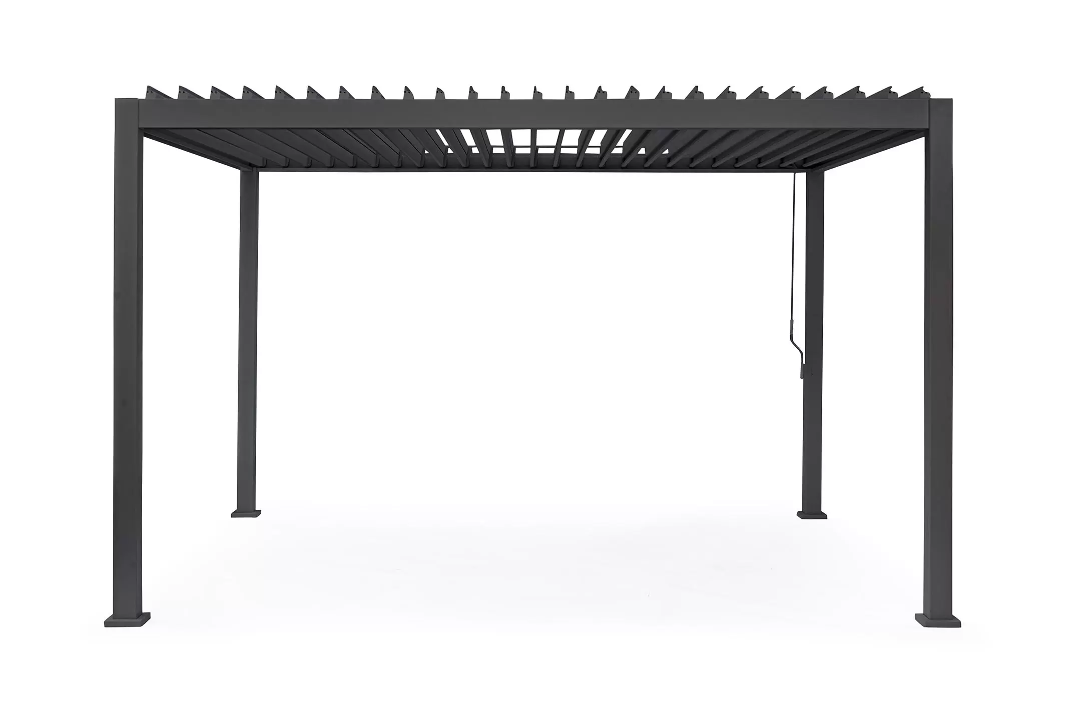 Pawilon ogrodowy aluminiowy do zadaszenia tarasu z dachem z obracanymi lamelami pozwalającymi całkowicie chronić przed słońcem i deszczem.