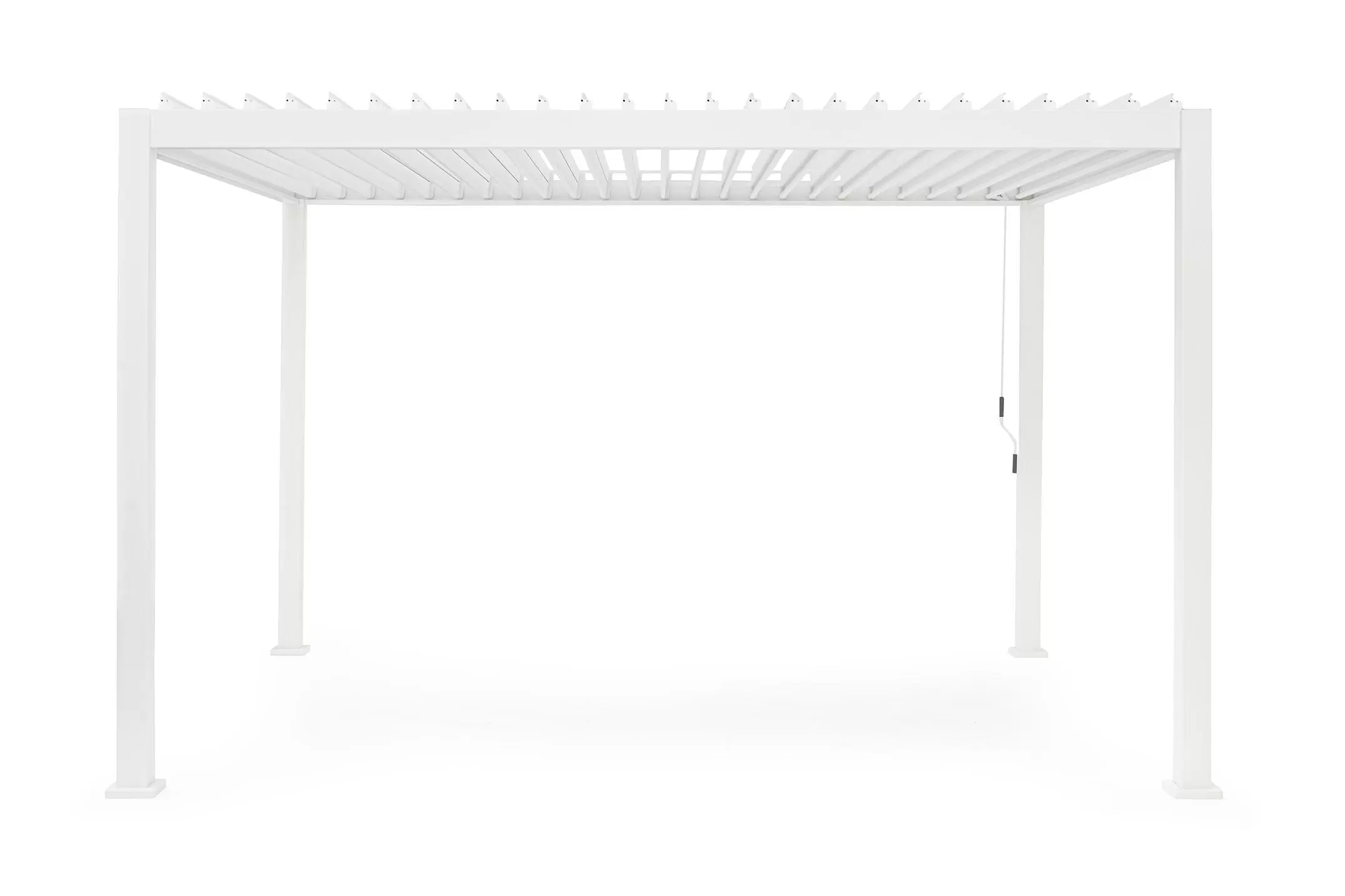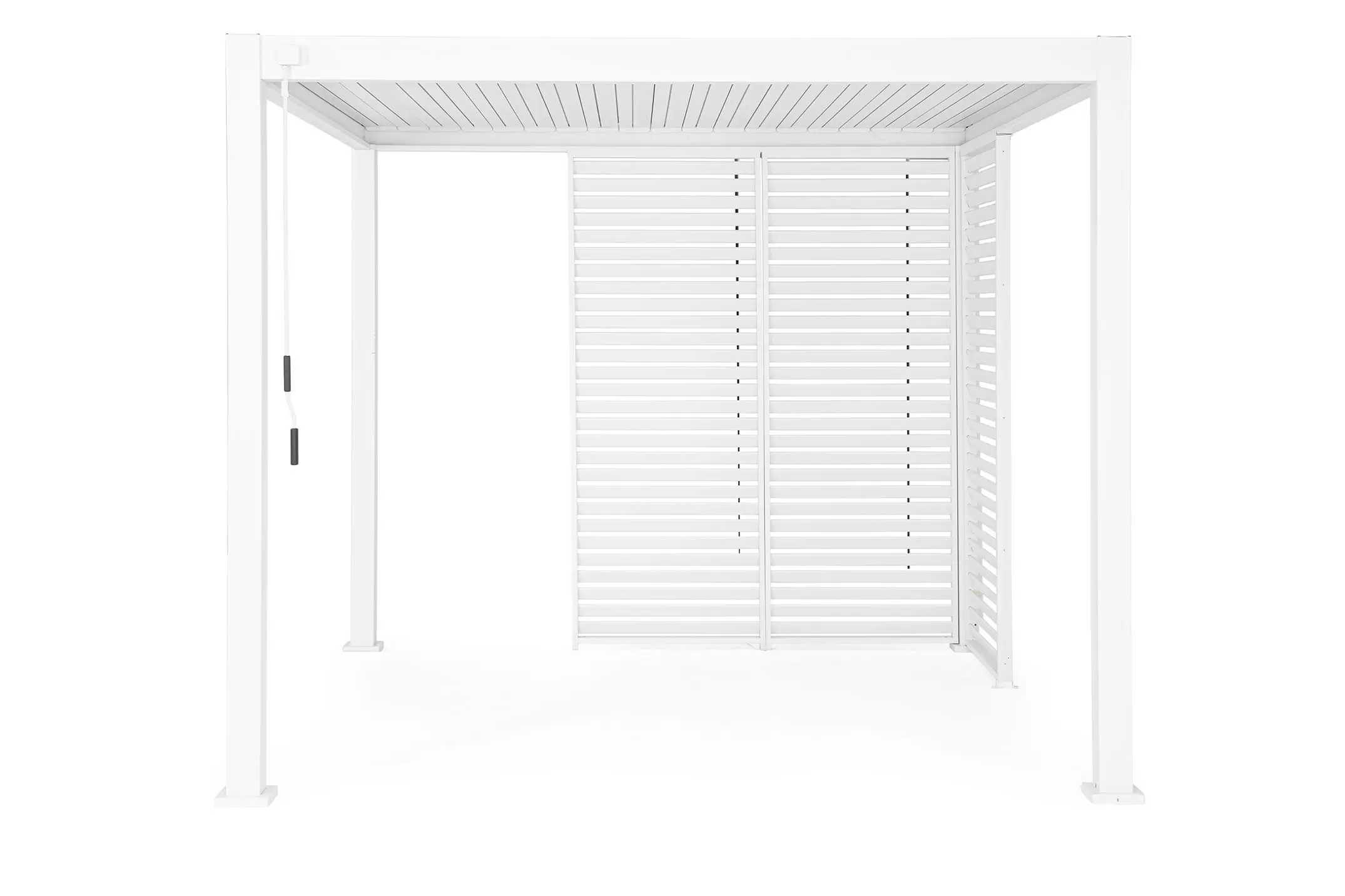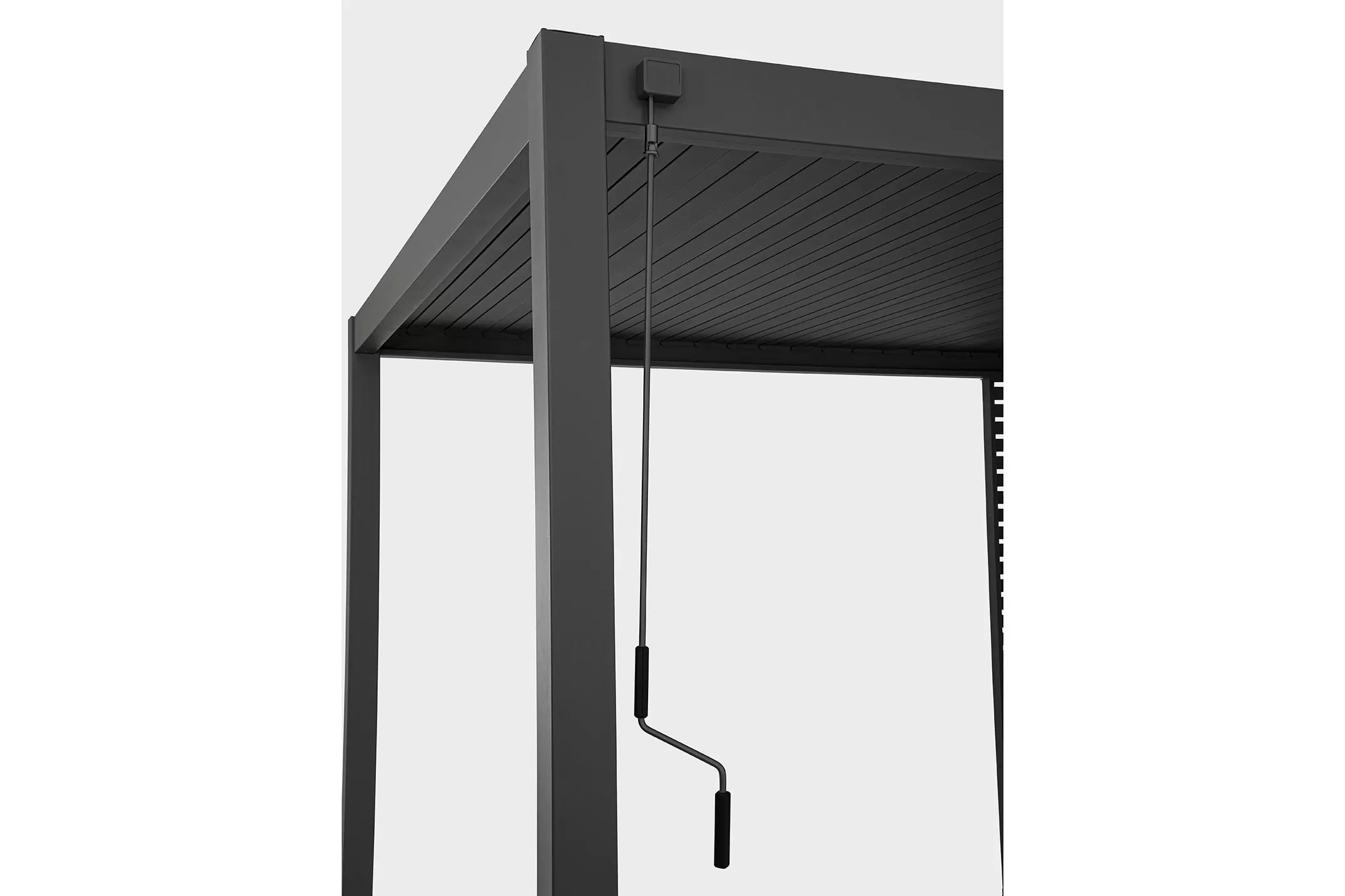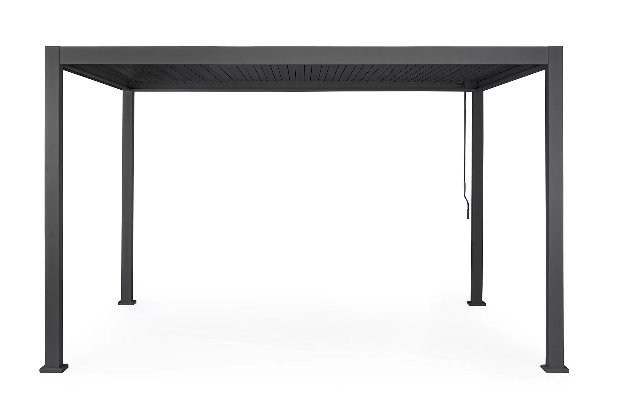 Pawilon ogrodowy aluminiowy do zadaszenia tarasu z dachem z obracanymi lamelami pozwalającymi całkowicie chronić przed słońcem i deszczem.