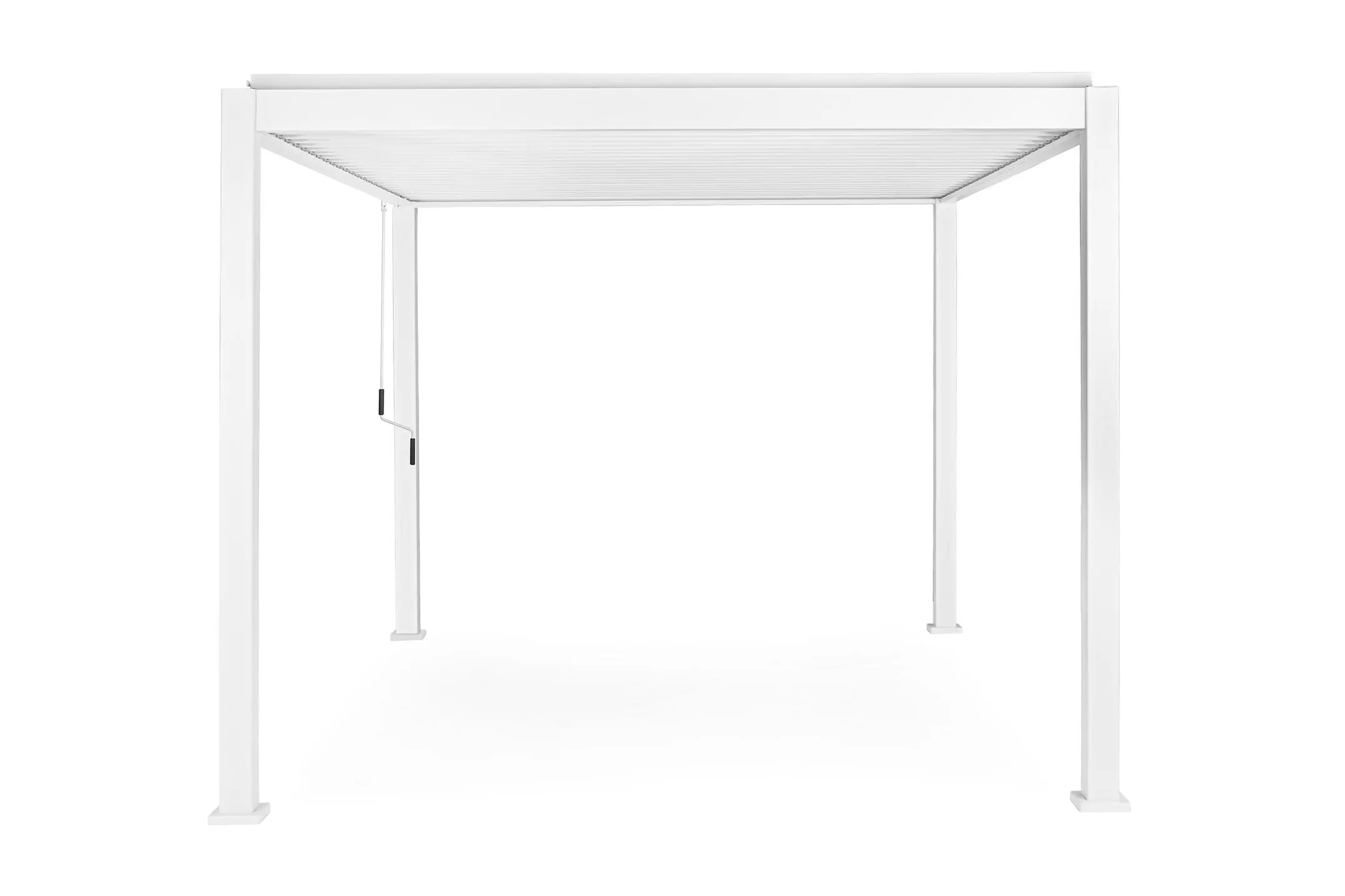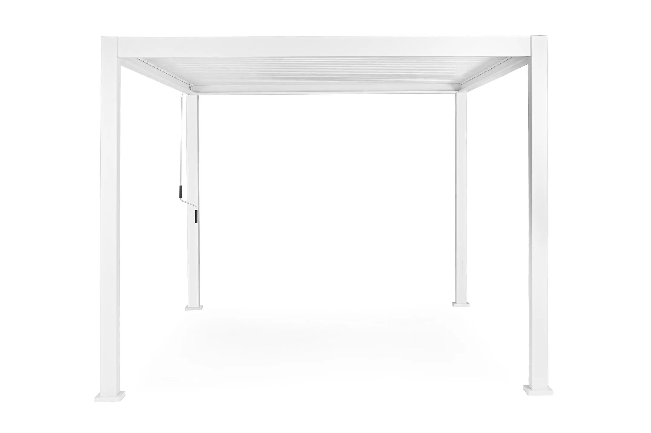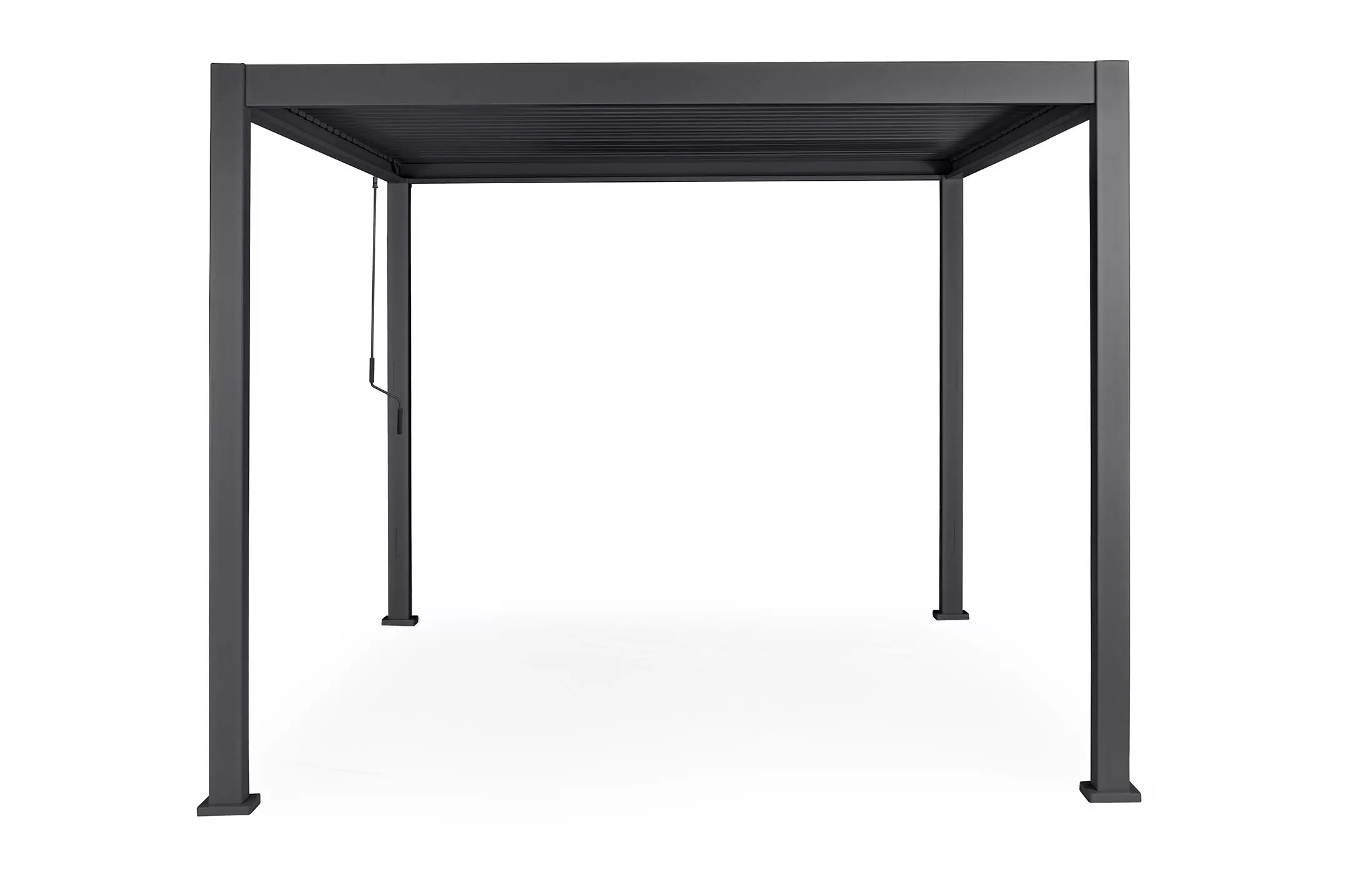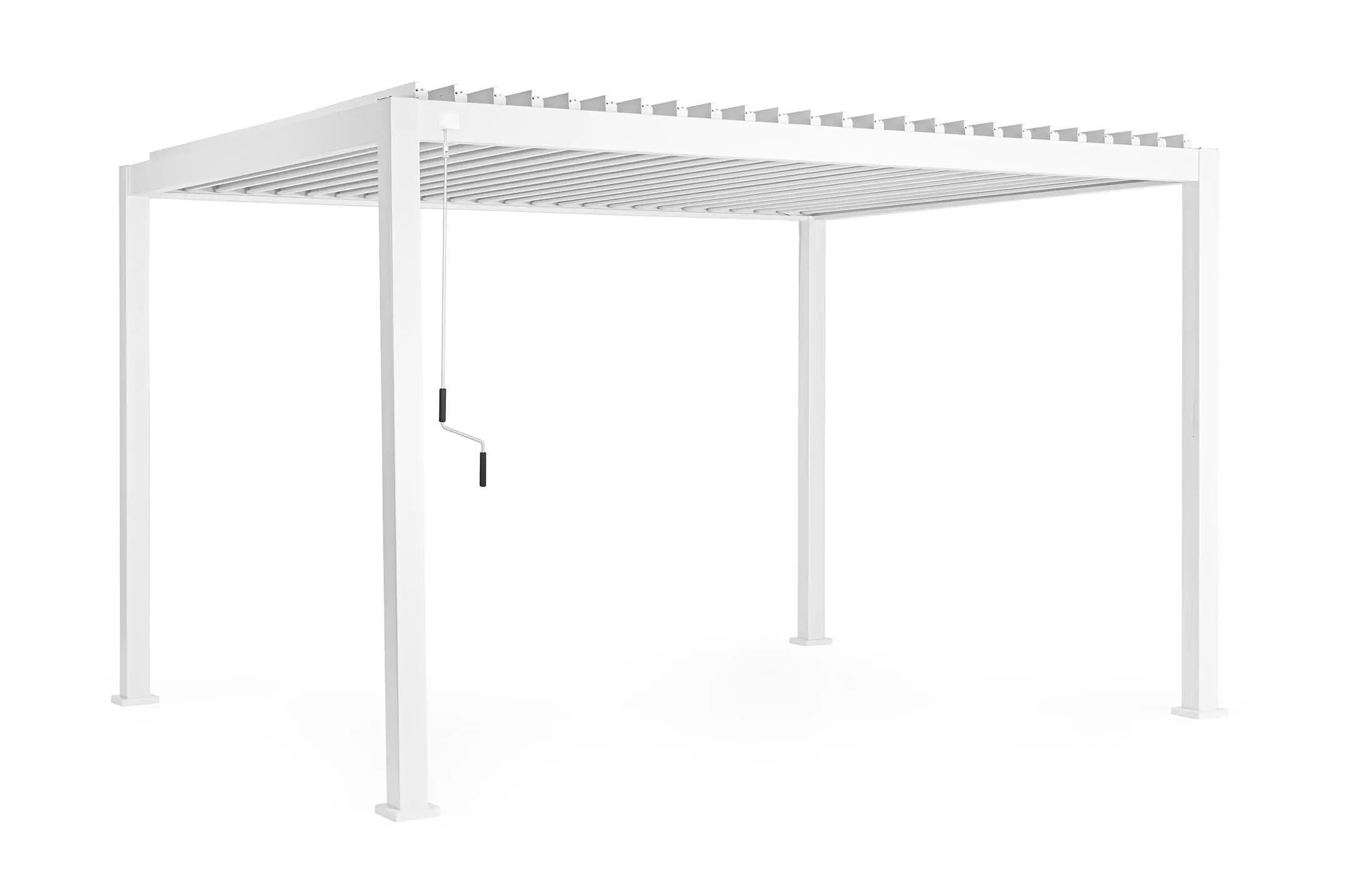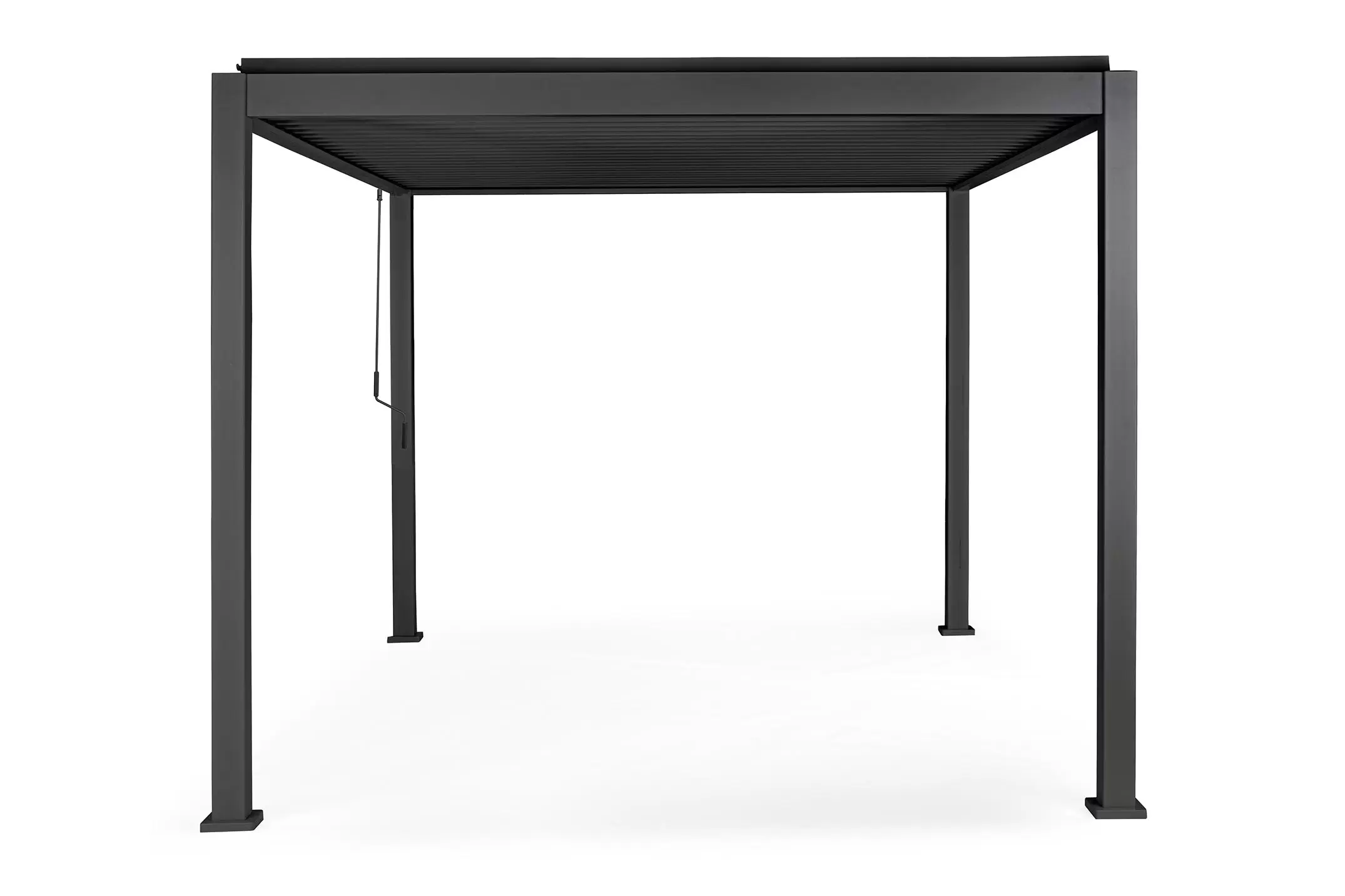 Pawilon ogrodowy aluminiowy do zadaszenia tarasu z dachem z obracanymi lamelami pozwalającymi całkowicie chronić przed słońcem i deszczem.