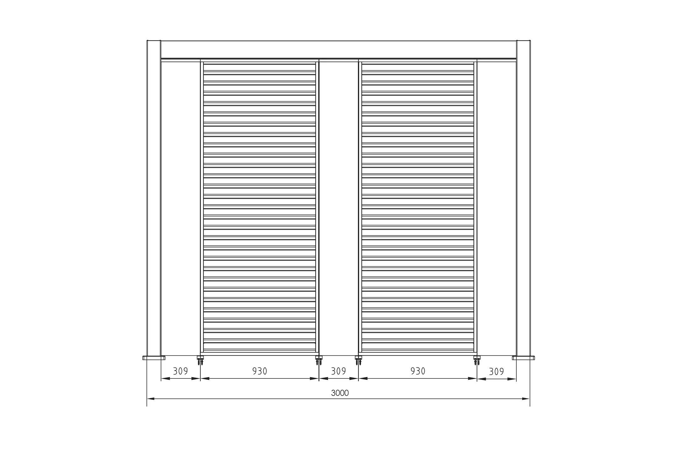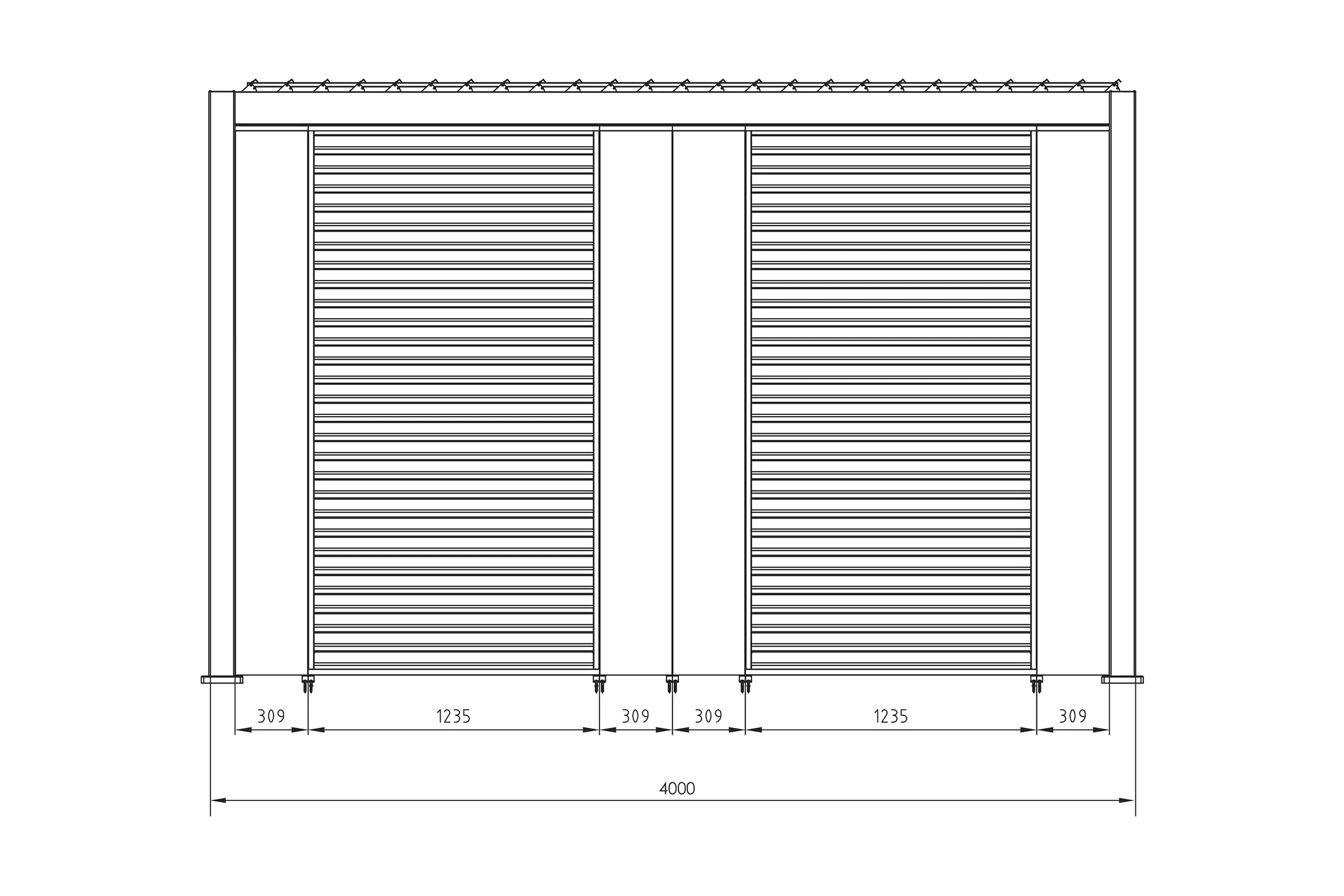 Szerokość 400 cm / Głębokość 300 cm / Wysokość 250 cm