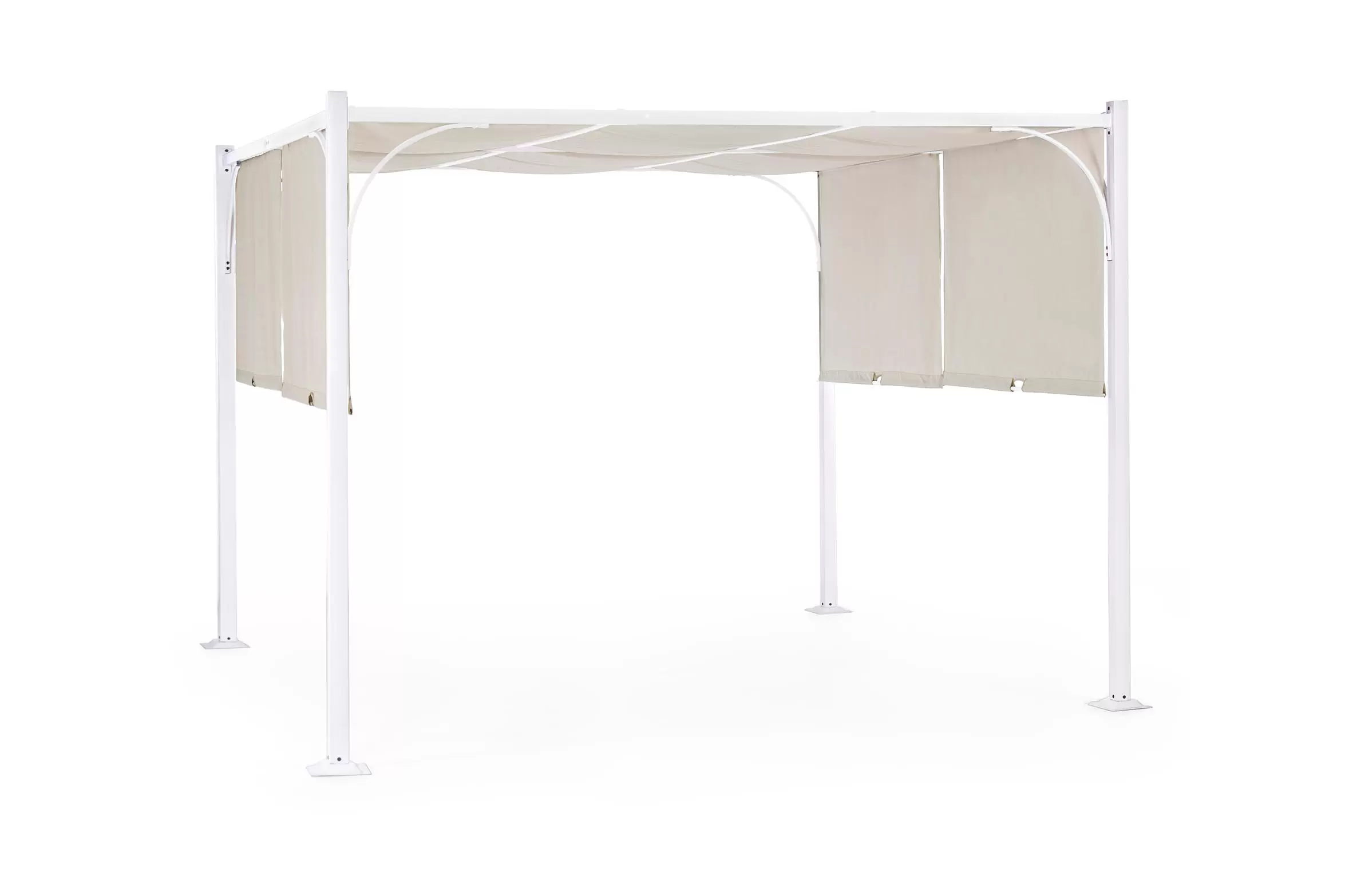 Pawilon ogrodowy stalowy do zadaszenia tarasu z dachem z materiałowym całkowicie chroniącym przed słońcem.