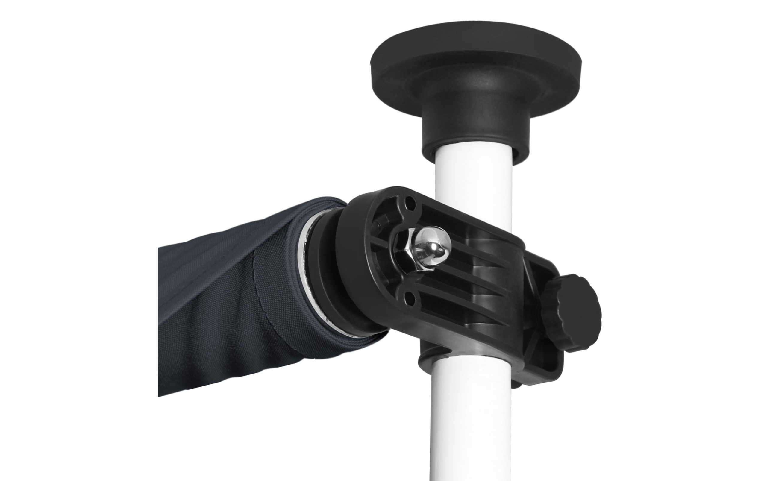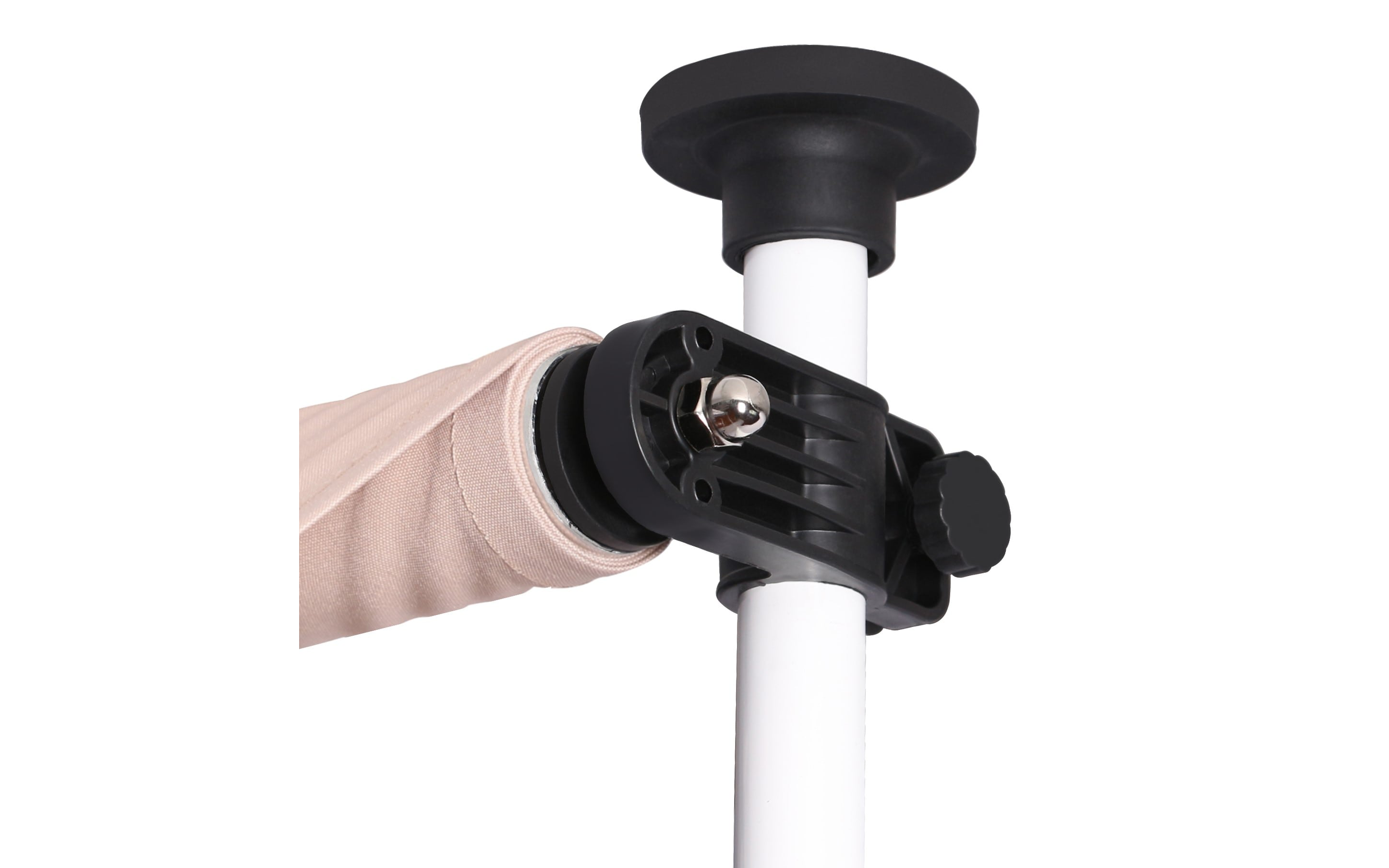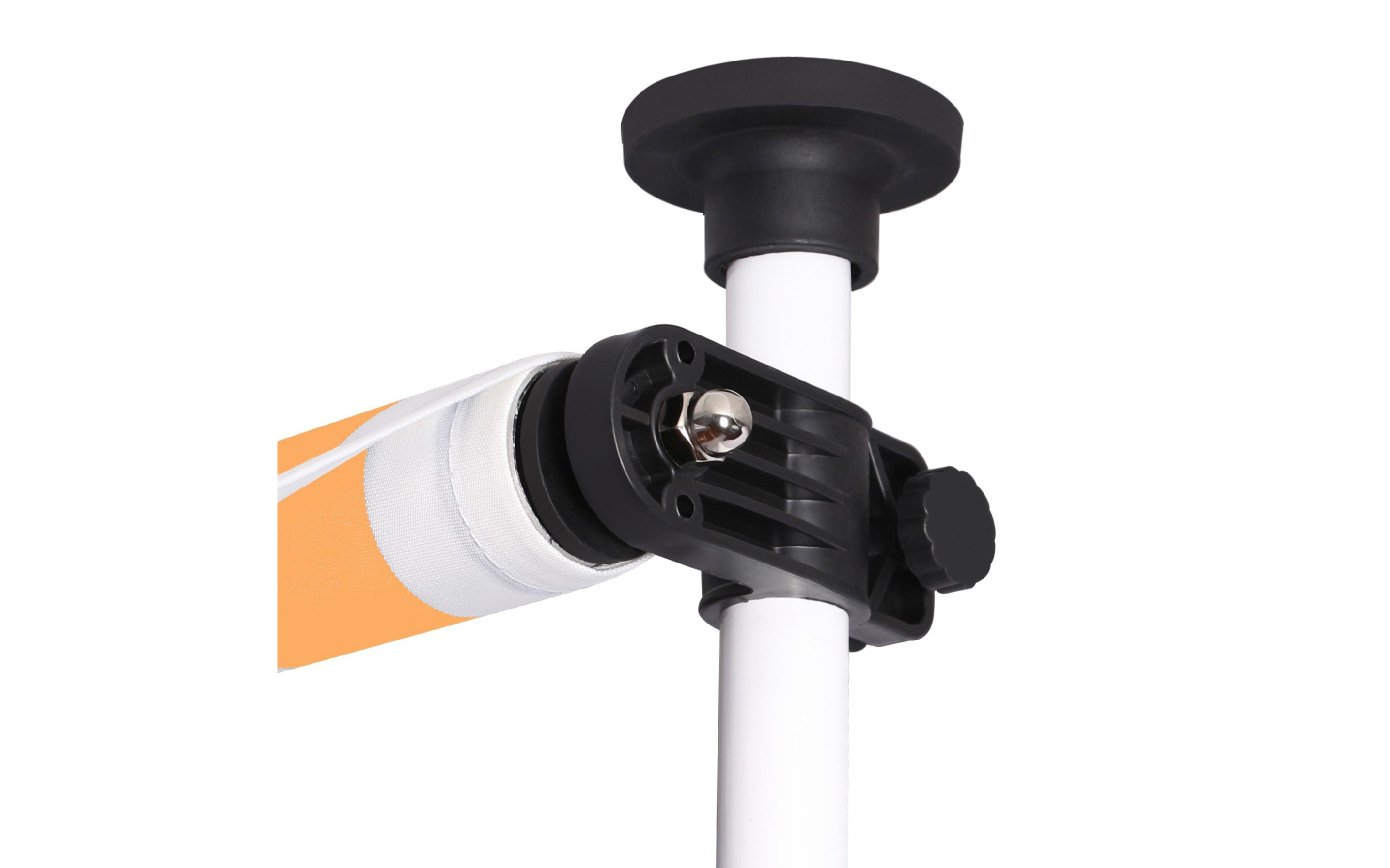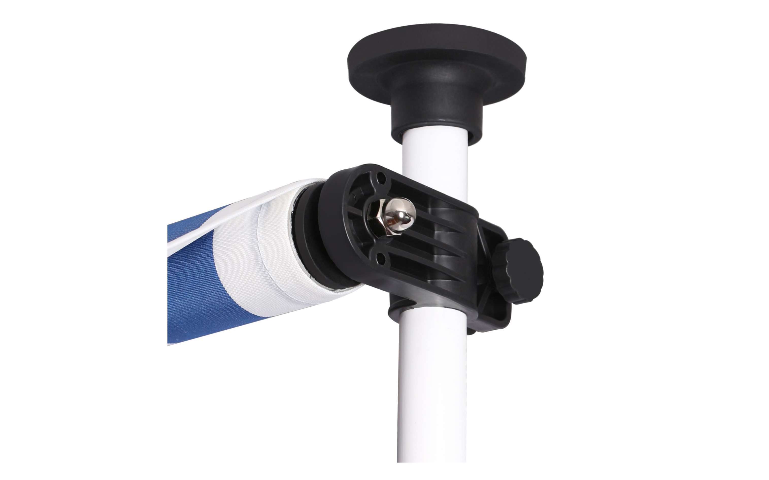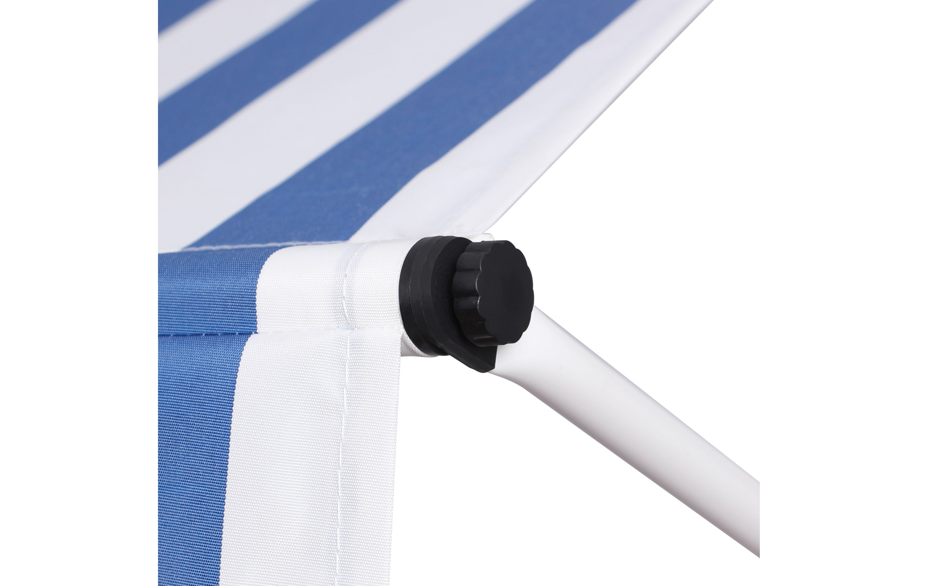 Do montażu potrzebny jest tylko mały występ na suficie, w którym można umieścić górny element rozporowy. wysokość występu od 200 do 300 cm. Aby rama mogła być odporna na lekkie podmuchy wiatru, jest wykonana z wytrzymałej i nierdzewnej stali. Maksymalnie markizę zasłania do 120 cm - regulacja za pomocą ręcznej korbki. Długość zadaszenia 150 cm. Kąt nachylenia markizy można regulować w pewnym zakresie.