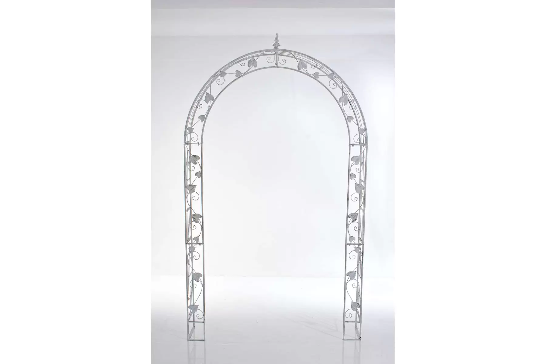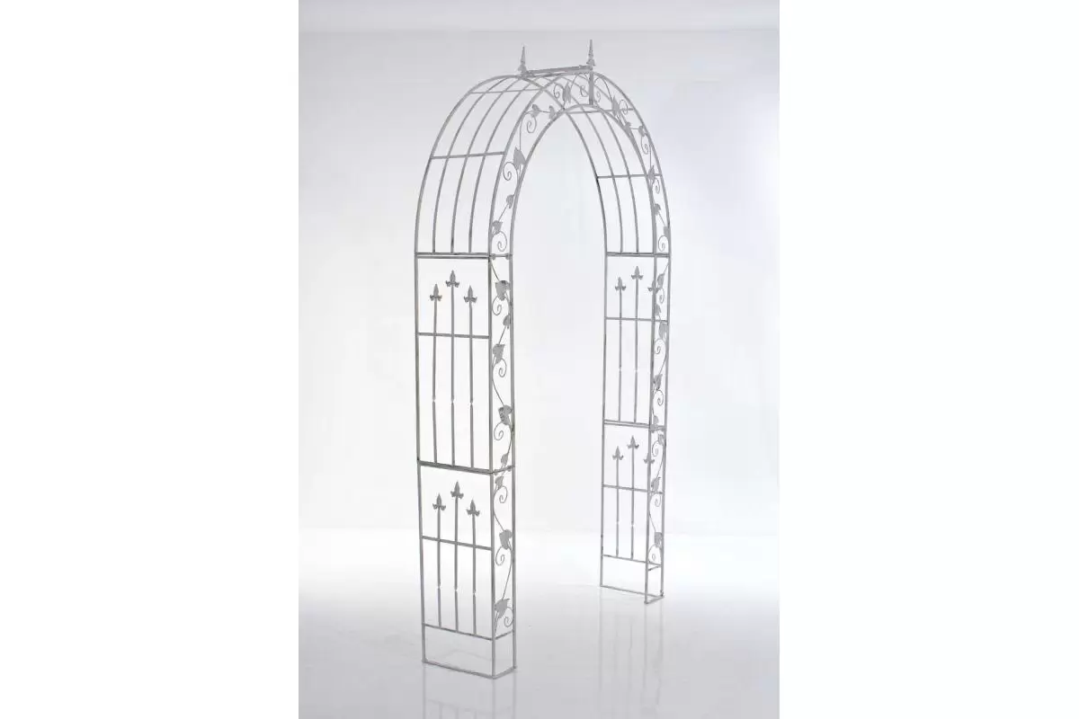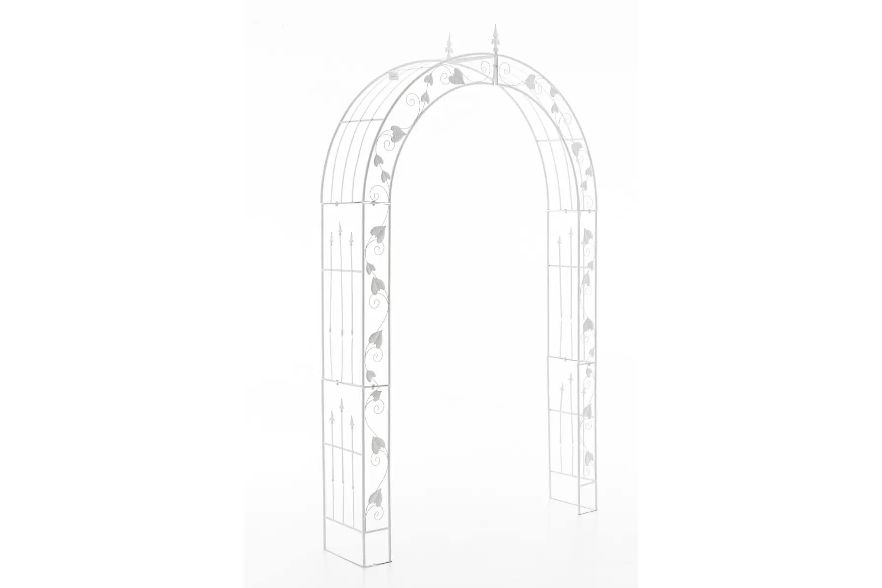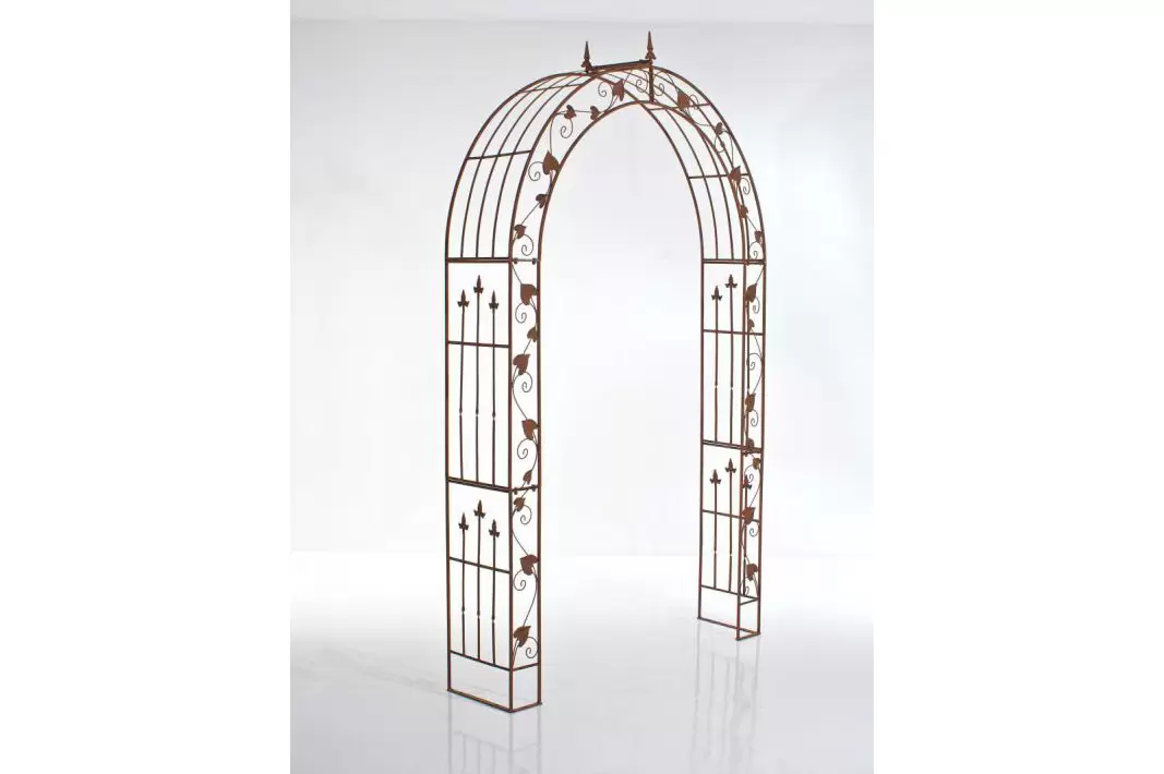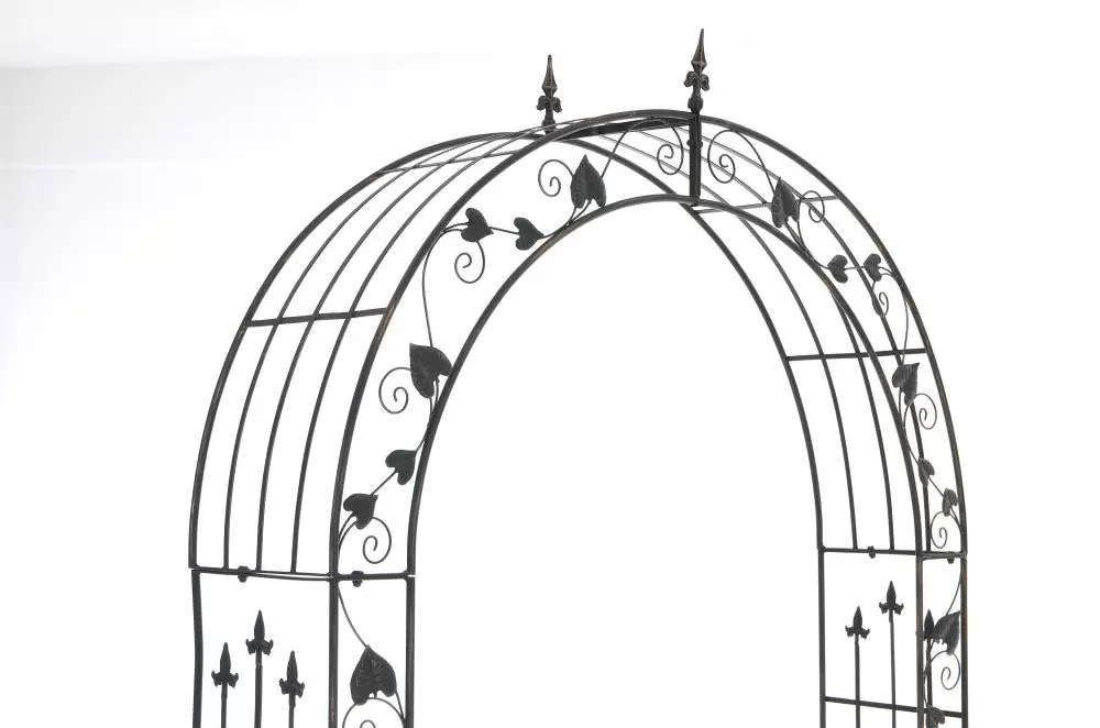Ekskluzywny łuk wykonany ze stali malowanej proszkowo. Łuk ma elegancki wygląd i jest idealną pomocą do wspinaczki dla wszystkich roślin pnących, takich jak róże czy bluszcze. Elementy ozdobne wykonane ręcznie. Do mocowania wykorzystuje się sześć otworów w stopie łuku różanego - łuk różany można łatwo i szybko przymocować do podłoża w stabilny sposób.