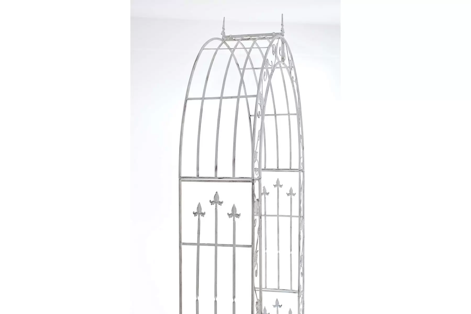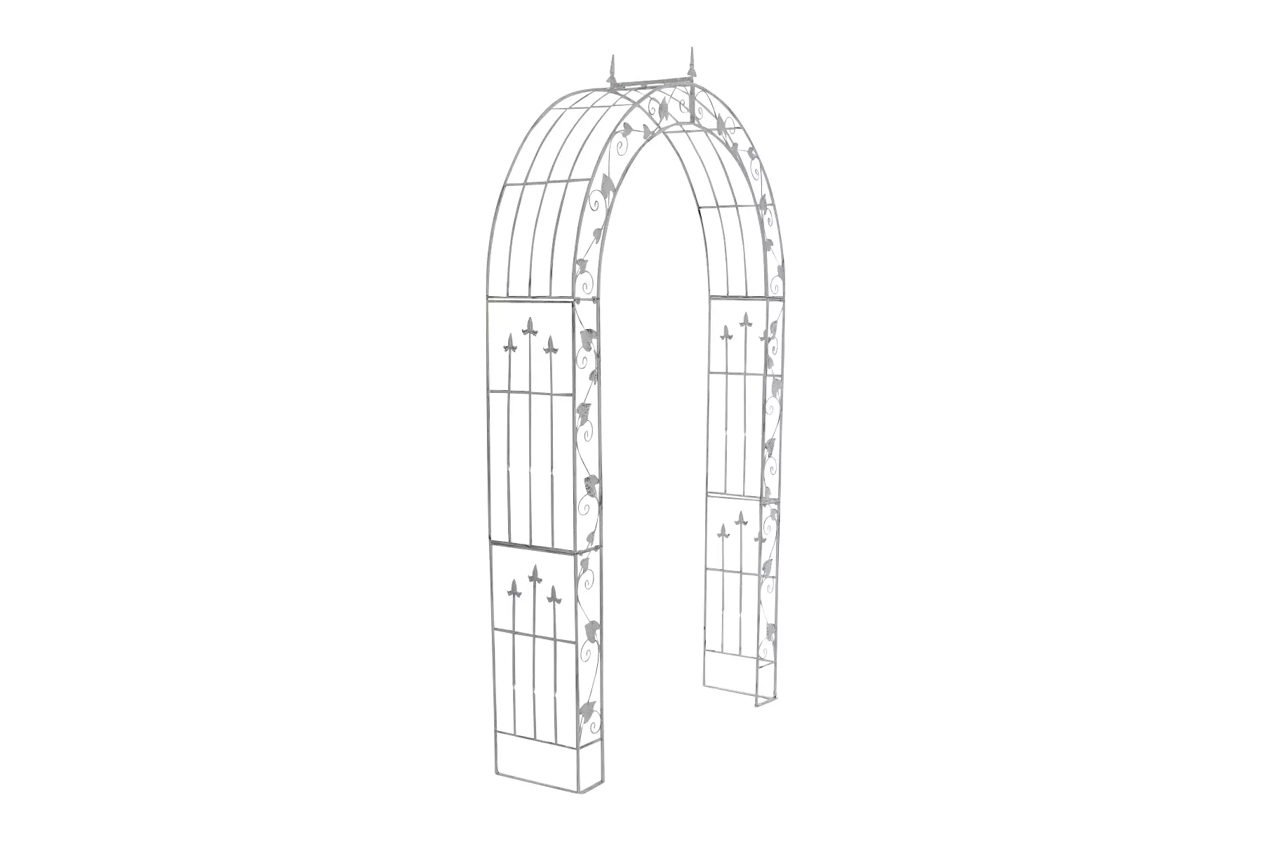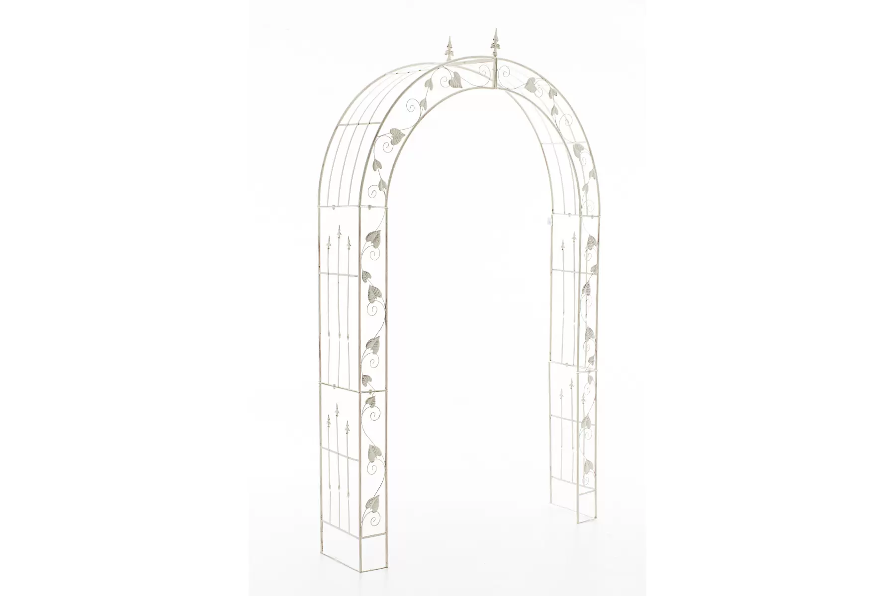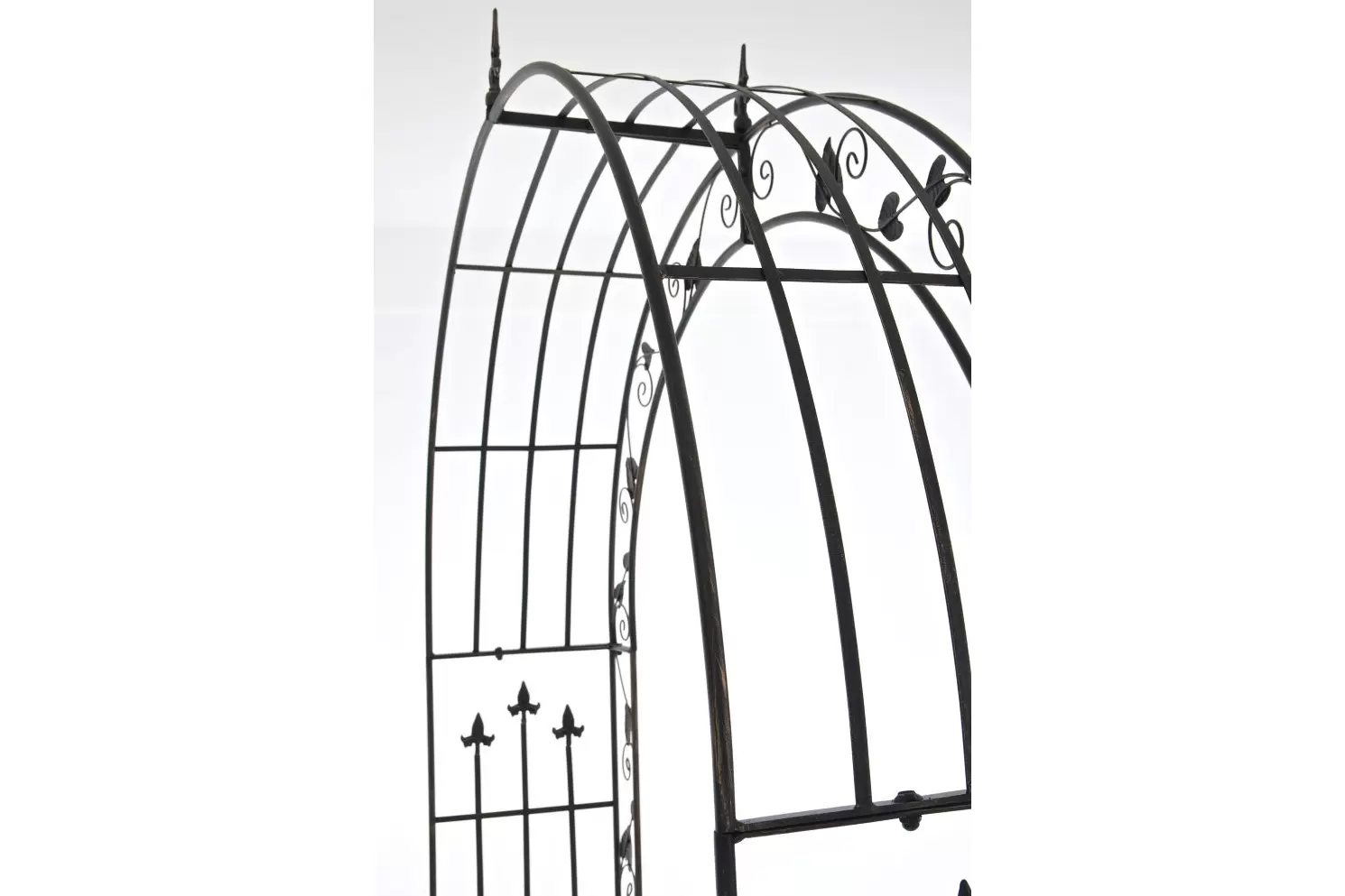 Ekskluzywny łuk wykonany ze stali malowanej proszkowo. Łuk ma elegancki wygląd i jest idealną pomocą do wspinaczki dla wszystkich roślin pnących, takich jak róże czy bluszcze. Elementy ozdobne wykonane ręcznie. Do mocowania wykorzystuje się sześć otworów w stopie łuku różanego - łuk różany można łatwo i szybko przymocować do podłoża w stabilny sposób.