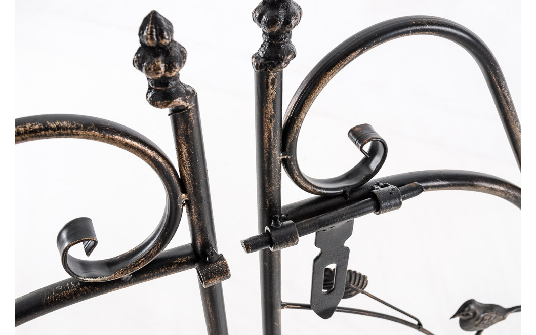 Konstrukcja została wykonana ręcznie z metalu, co zapewnia wysoką stabilność i odporność na obciążenia roślin. Powłoka ochronna zwiększa trwałość i zabezpiecza przed korozją, dzięki czemu łuk zachowuje estetykę przez wiele sezonów.