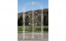 Piękny powitalny akcent każdego ogrodu. Strzeliste ściany łuku zwieńczone giętymi elementami z duża okazałą bramą.