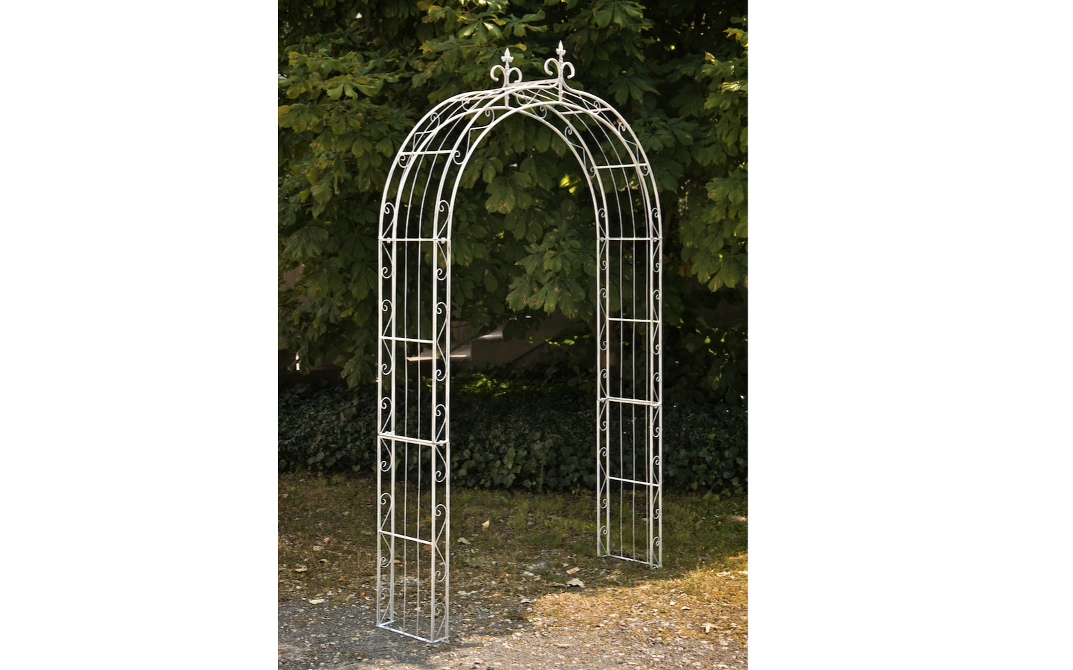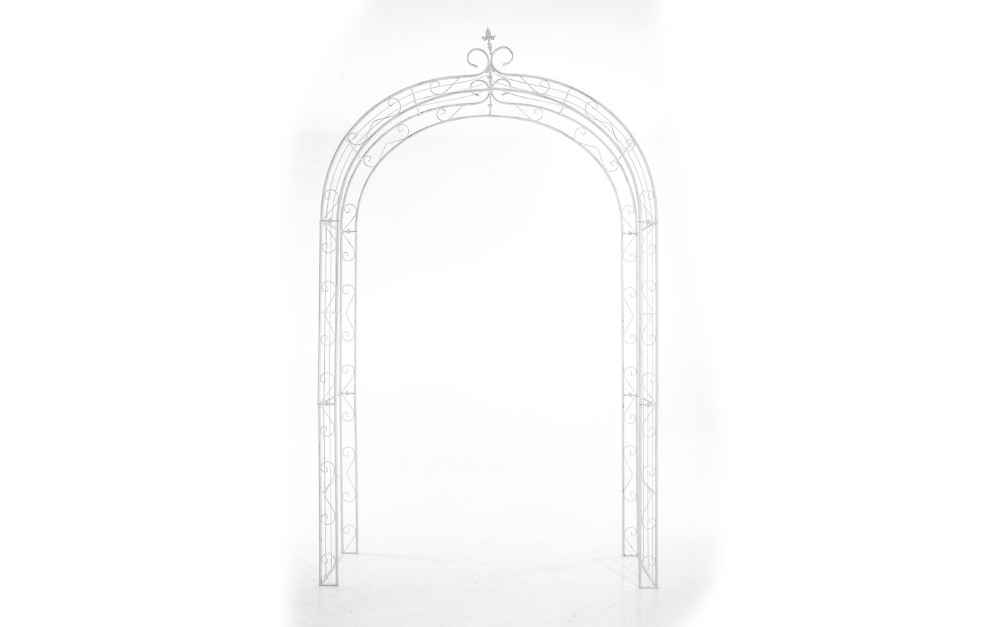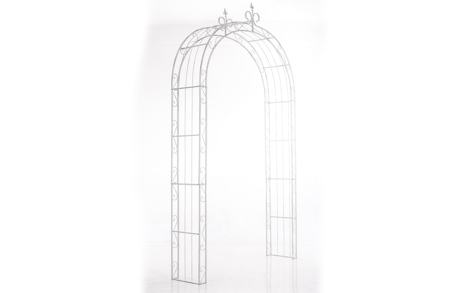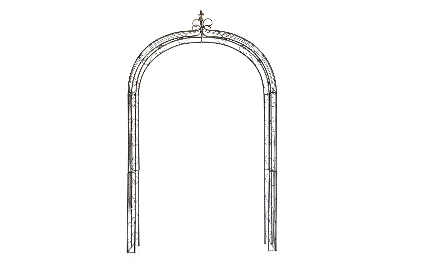 Obowiązkowy powitalny akcent każdego ogrodu. Strzeliste ściany łuku zwieńczone giętymi elementami.