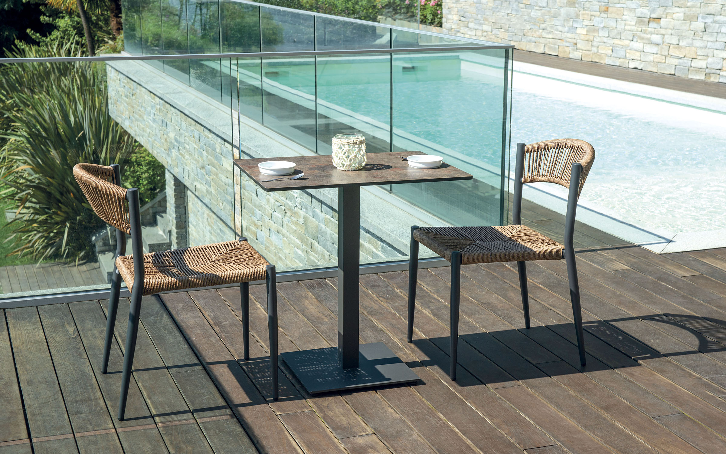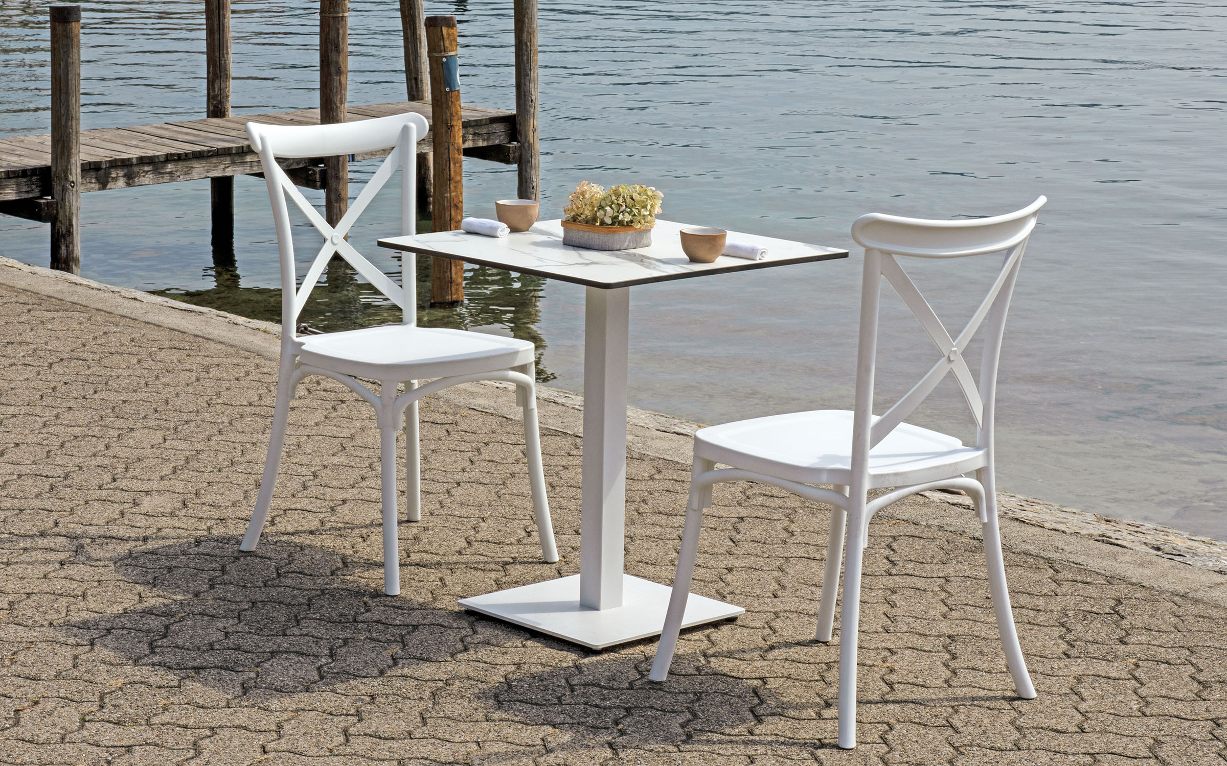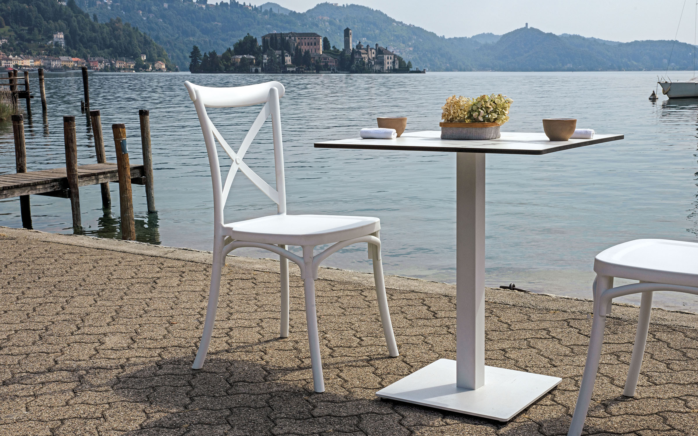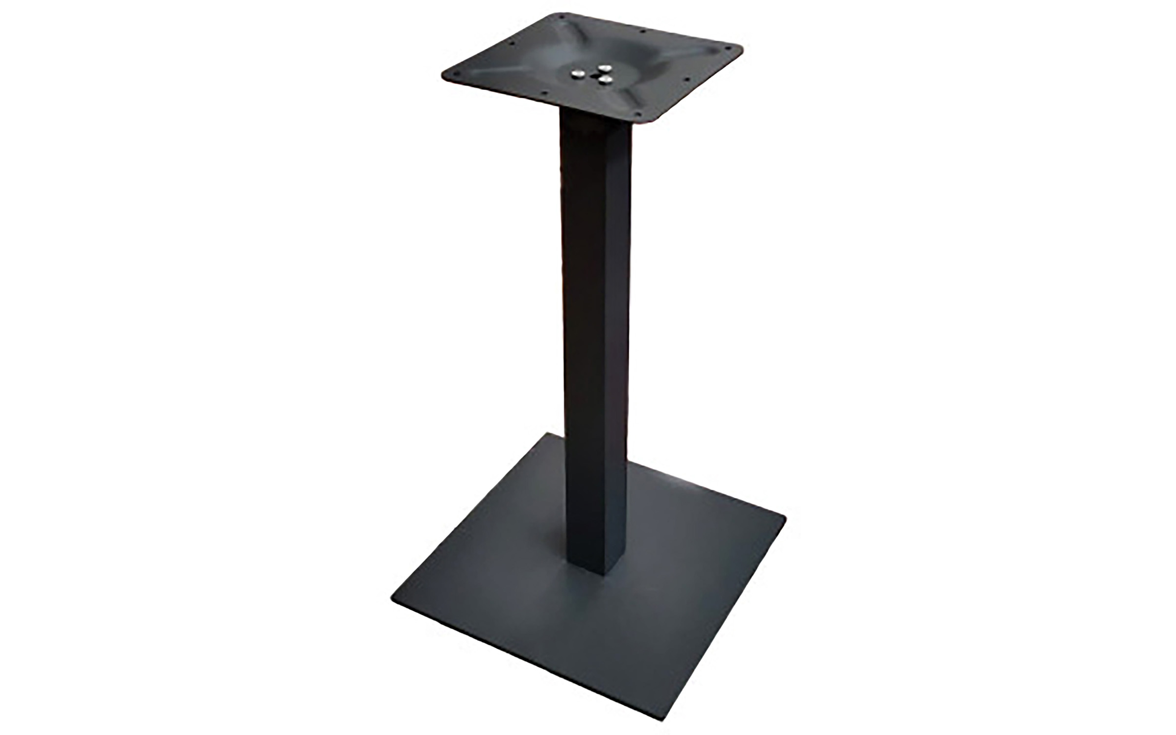 Stalowa podstawa stołu przeznaczona do zastosowań kontraktowych w przestrzeniach horeca – idealna do ogrodów, tarasów, restauracji i stref wypoczynkowych. Wykonana z lakierowanej stali, odporna na warunki atmosferyczne. Konstrukcja z kwadratową płytą 40×40 cm i rurą stalową 60×60 mm. System mocowania na 3 śruby zapewnia stabilność i łatwy montaż.