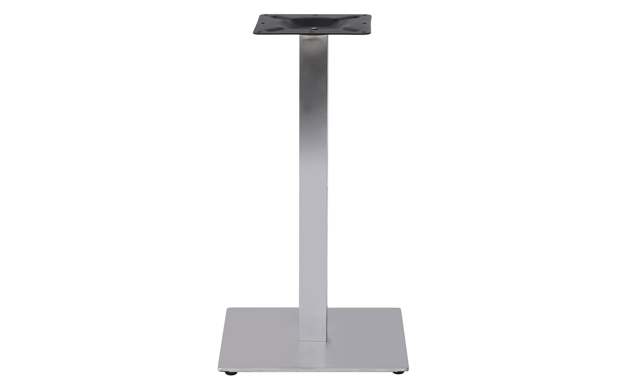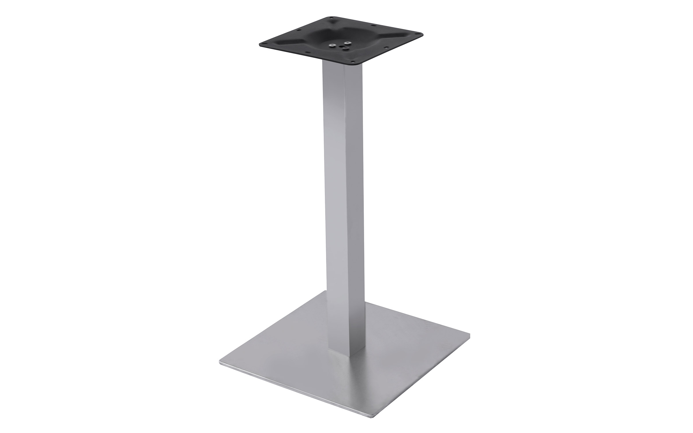 Stalowa podstawa stołu przeznaczona do zastosowań kontraktowych w przestrzeniach horeca – idealna do ogrodów, tarasów, restauracji i stref wypoczynkowych. Wykonana z lakierowanej stali, odporna na warunki atmosferyczne. Konstrukcja z kwadratową płytą 40×40 cm i profilem 60×60 mm. System mocowania na 3 śruby zapewnia stabilność i łatwy montaż.