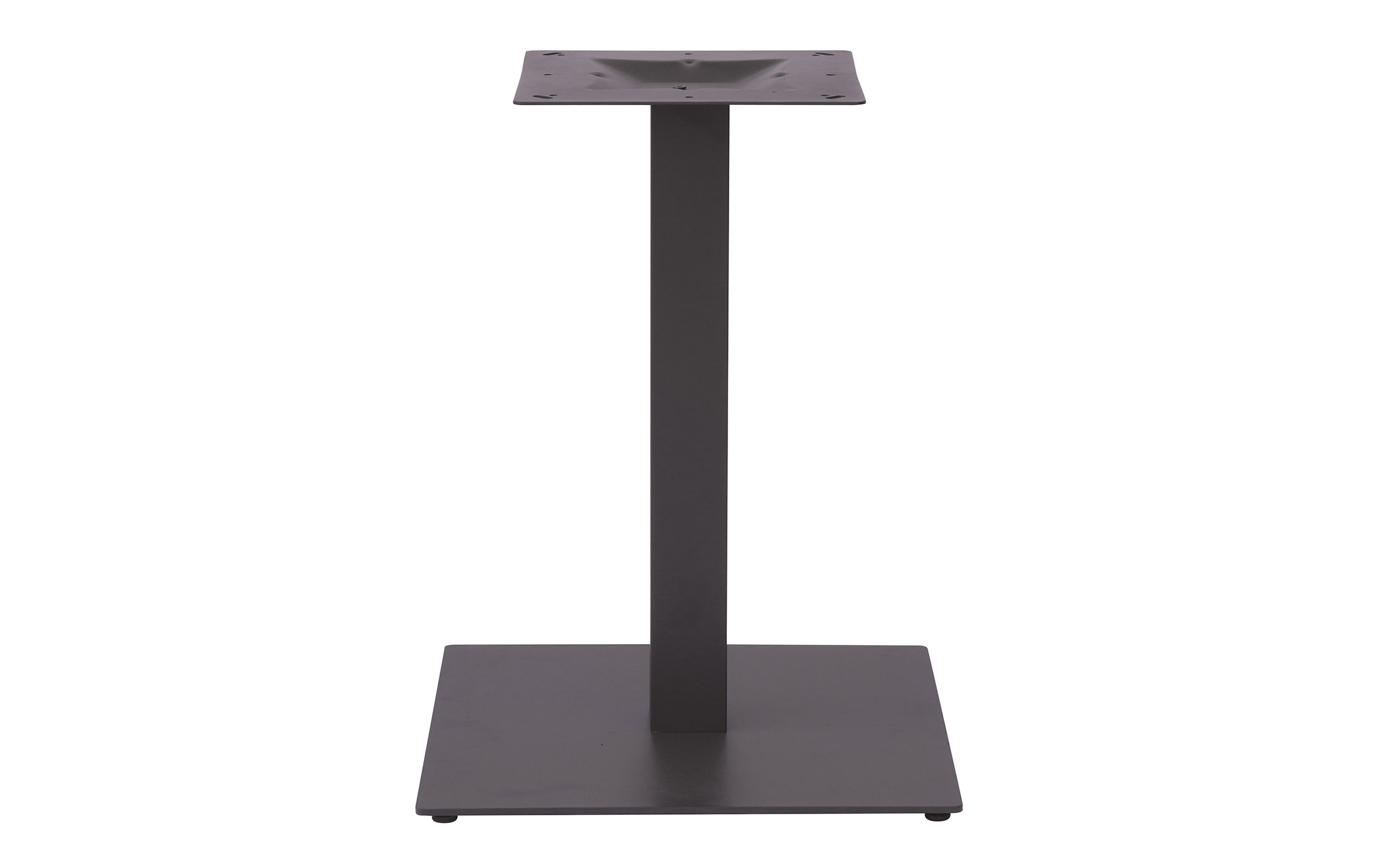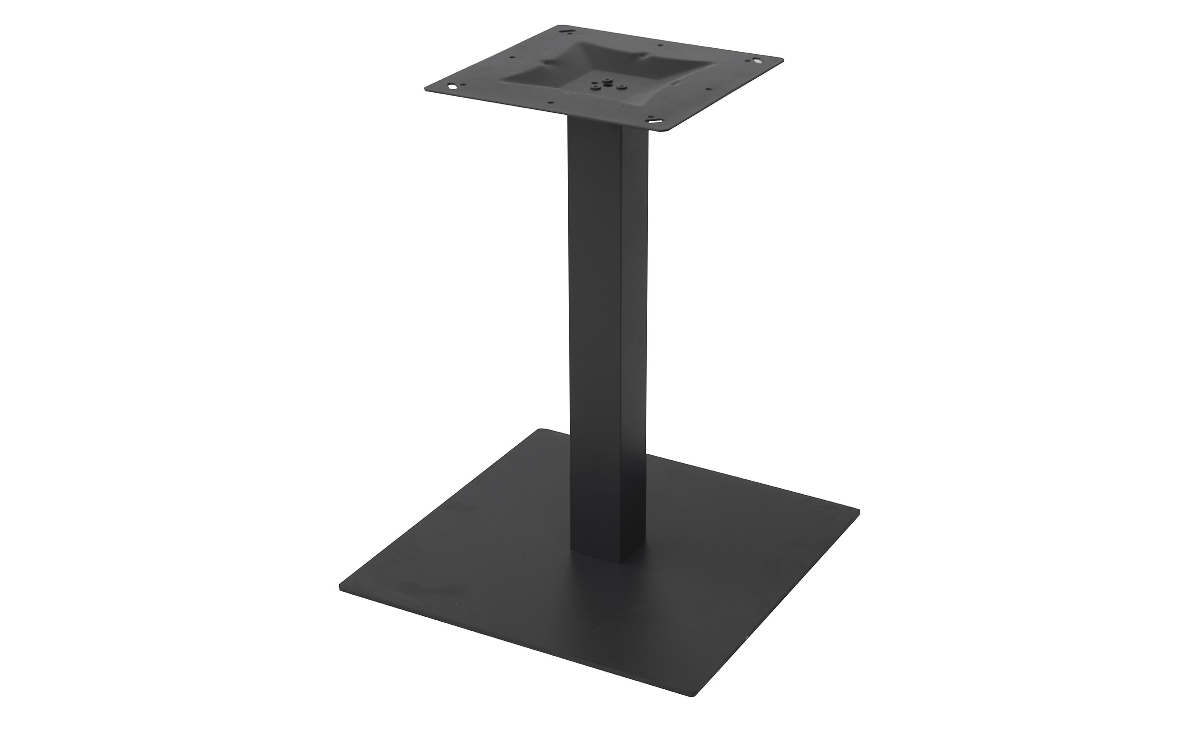 Stalowa podstawa stołu przeznaczona do zastosowań kontraktowych w przestrzeniach horeca – idealna do ogrodów, tarasów, restauracji i stref wypoczynkowych. Wykonana z lakierowanej stali, odpornej na warunki atmosferyczne. Konstrukcja z kwadratową płytą 55×55 cm i rurą stalową 80×80 mm. System mocowania na 3 śruby zapewnia stabilność i łatwy montaż.