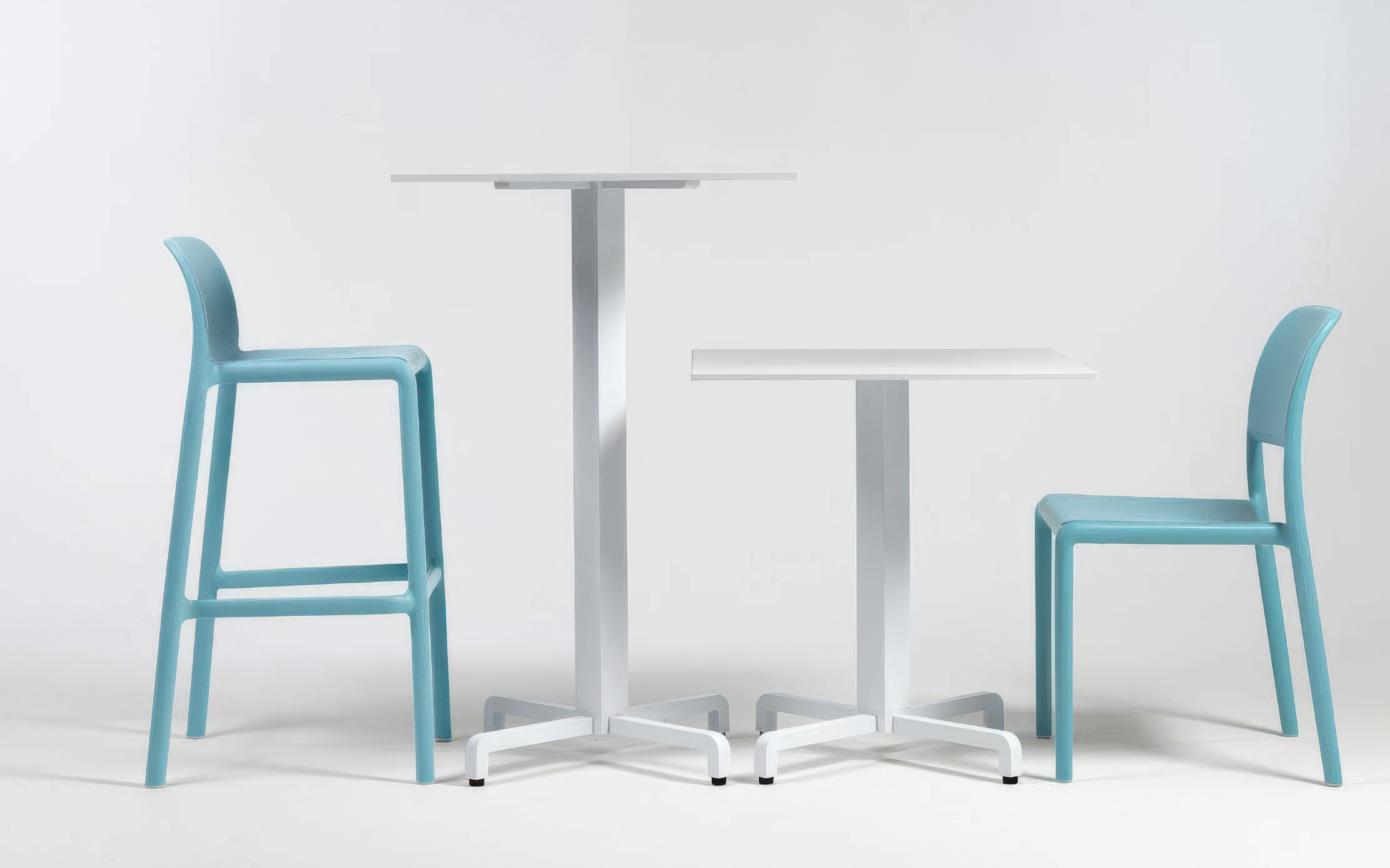 FIORE to lekka, składana podstawa stołu włoskiej marki Nardi, zaprojektowana z myślą o mobilnych aranżacjach gastronomicznych i tarasowych. Mechanizm odchylania blatu pozwala ustawić go pionowo, co znacznie ułatwia przechowywanie i transport.