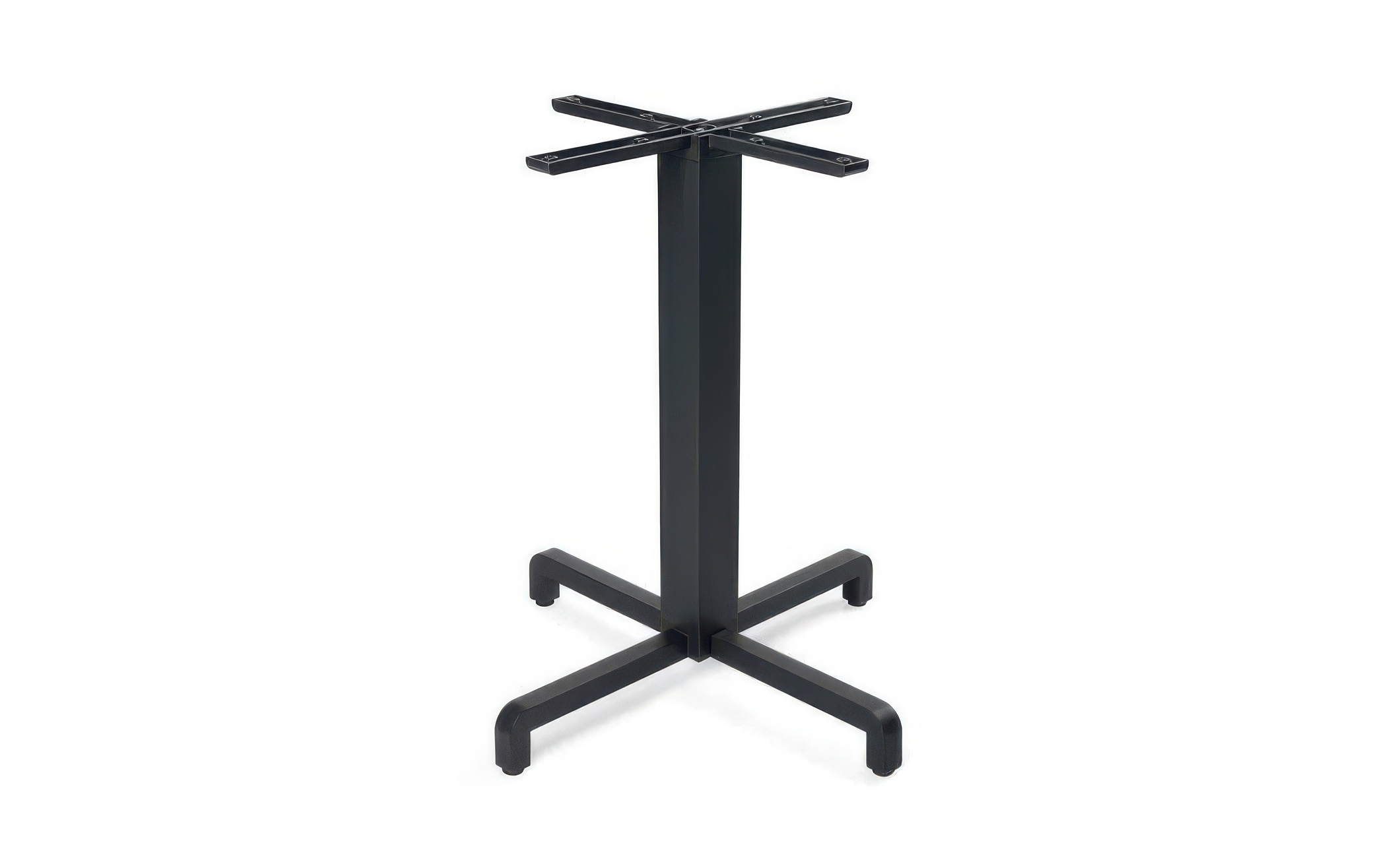 Konstrukcja wykonana jest z aluminium malowanego proszkowo, odpornego na korozję, wilgoć i promieniowanie UV. Szeroko rozstawione ramiona zapewniają stabilność, a regulowane stopki umożliwiają precyzyjne wypoziomowanie stołu na każdej powierzchni.