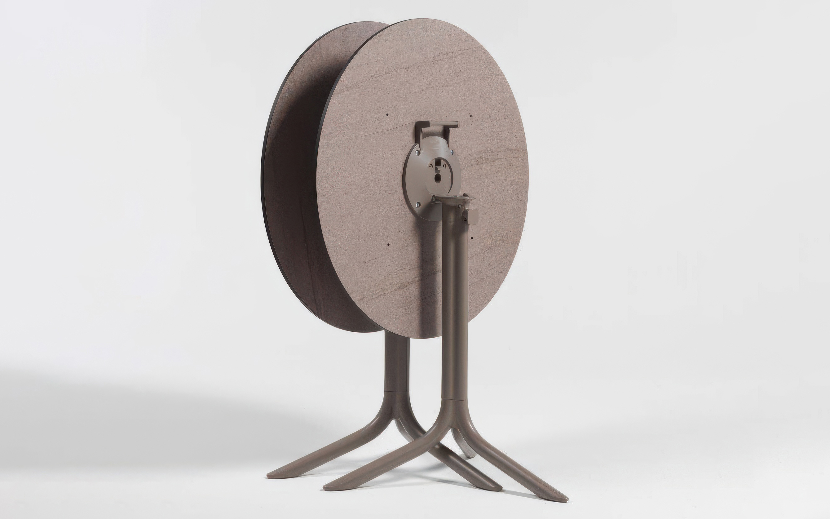 FLUTE to funkcjonalna, składana podstawa stołu włoskiej marki Nardi, zaprojektowana z myślą o przestrzeniach gastronomicznych, tarasach i ogródkach sezonowych. Mechanizm odchylania blatu umożliwia ustawienie go w pozycji pionowej, co znacząco ułatwia przechowywanie i transport.