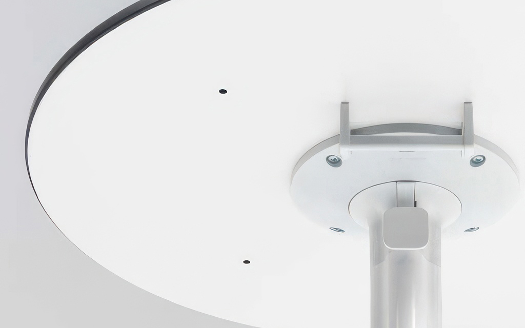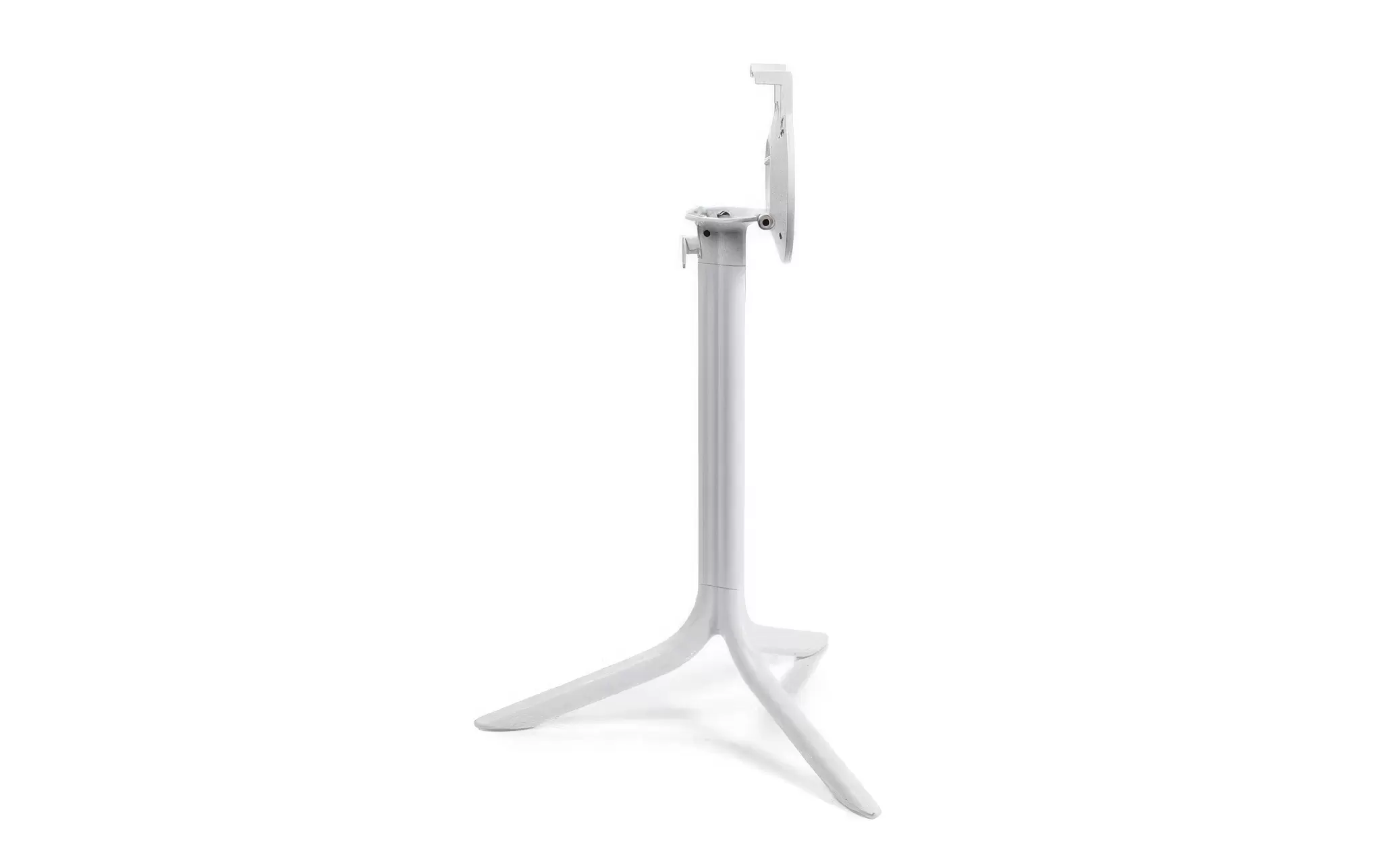 Konstrukcja wykonana jest z aluminium malowanego proszkowo, odpornego na korozję, wilgoć i promieniowanie UV. Szeroko rozstawione ramiona podstawy zapewniają stabilność, a regulowane stopki pozwalają na precyzyjne wypoziomowanie stołu na każdej powierzchni.