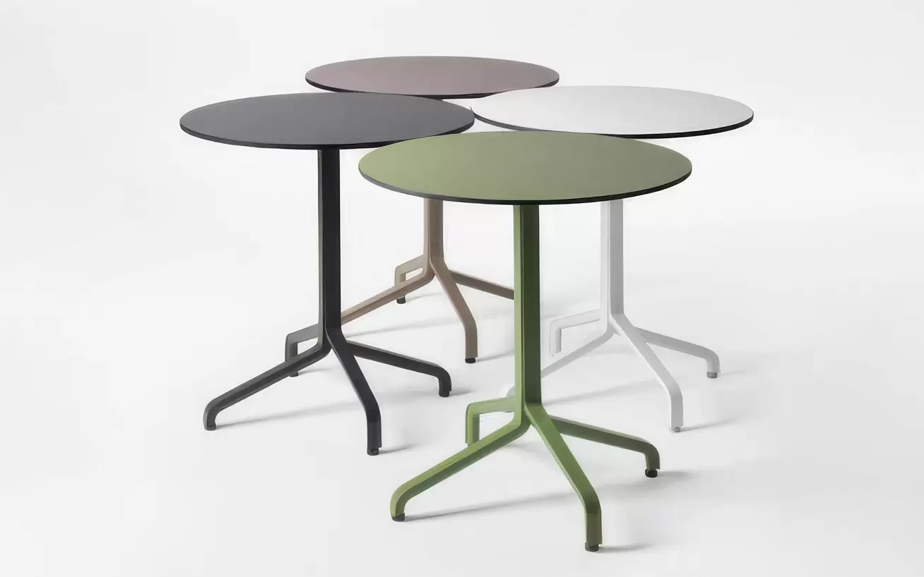 FRASCA HIGH FOLDING to funkcjonalna, składana podstawa stołu barowego włoskiej marki Nardi. Wysoka kolumna inspirowana formą odwróconego drzewa nadaje konstrukcji lekkości, a jednocześnie zapewnia stabilność wymaganą w przestrzeniach gastronomicznych.