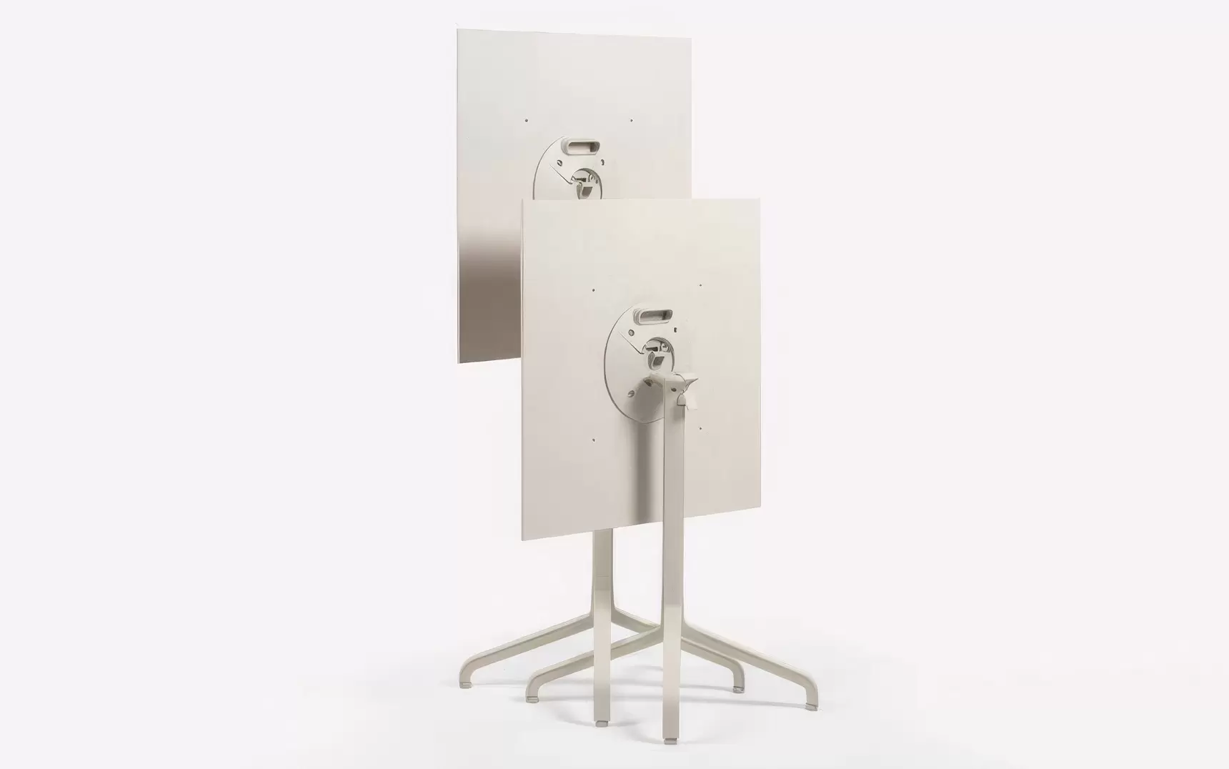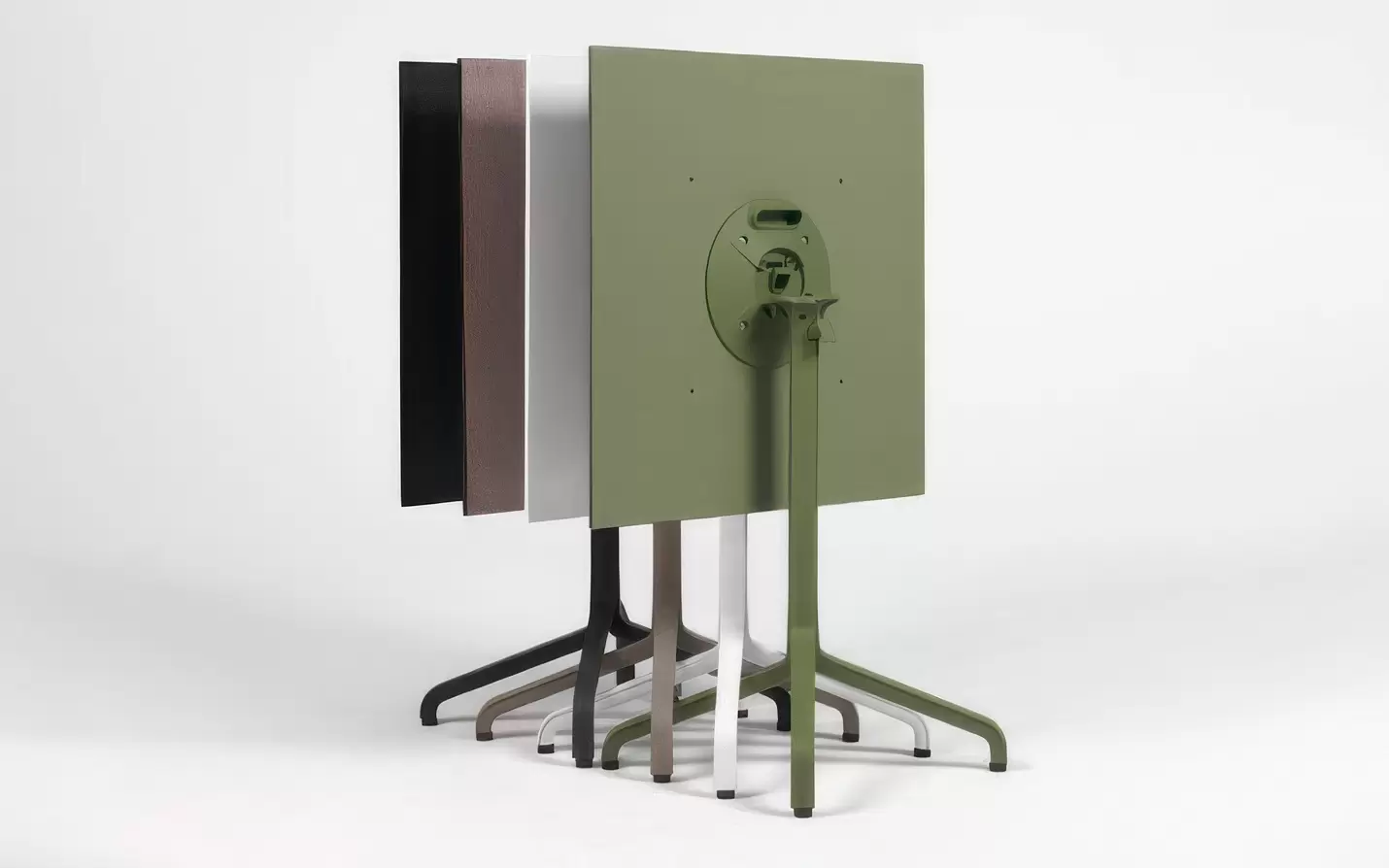 Podstawa wykonana jest z aluminium malowanego proszkowo, odpornego na korozję, wilgoć i promieniowanie UV. Szeroko rozstawione ramiona gwarantują pewne podparcie dla mniejszych blatów, a regulowane stopki umożliwiają precyzyjne wypoziomowanie stołu na każdej powierzchni.