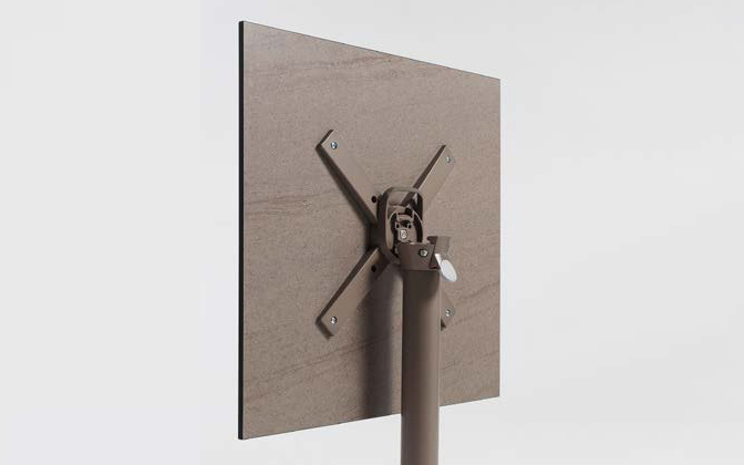 SCUDO to funkcjonalna, składana podstawa stołu włoskiej marki Nardi, zaprojektowana z myślą o profesjonalnych przestrzeniach gastronomicznych i tarasowych. Mechanizm odchylania blatu pozwala ustawić go pionowo, co znacząco ułatwia przechowywanie i transport, szczególnie w lokalach sezonowych.
