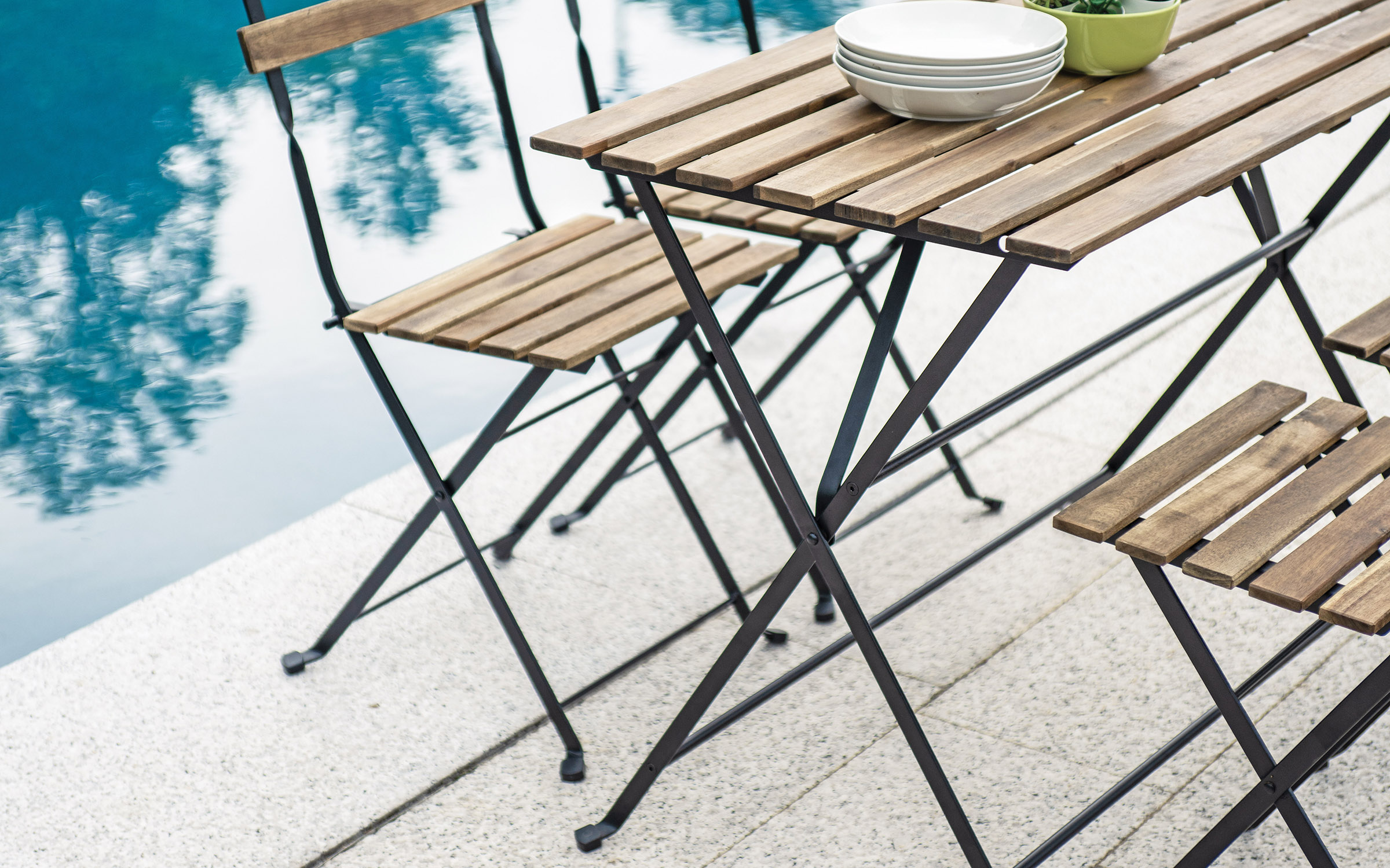 - 1× składany stół ogrodowy ze stali z blatem z drewna akacjowego FSC