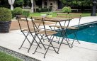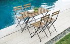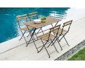 Praktyczny zestaw bistro dla czterech osób, idealny na balkon, taras lub do ogrodu. Wykonany z trwałej stali z powłoką antykorozyjną oraz drewna akacjowego FSC w wykończeniu ciemnym. Składany stół i 4 składane krzesła zapewniają wygodę użytkowania i łatwe przechowywanie. Kolor konstrukcji: antracytowy.
