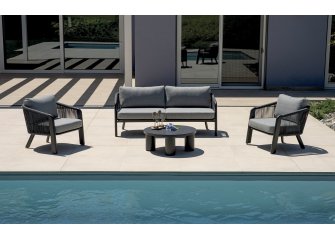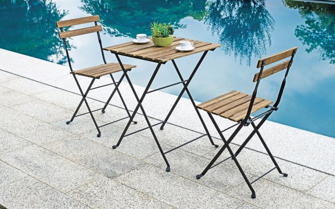 Kompaktowy zestaw bistro idealny na balkon, taras lub do małego ogrodu. Wykonany z trwałej stali z powłoką antykorozyjną oraz drewna akacjowego FSC w wykończeniu ciemnym. Składany stół i 2 składane krzesła zapewniają wygodę użytkowania i łatwe przechowywanie. Kolor konstrukcji: antracytowy.