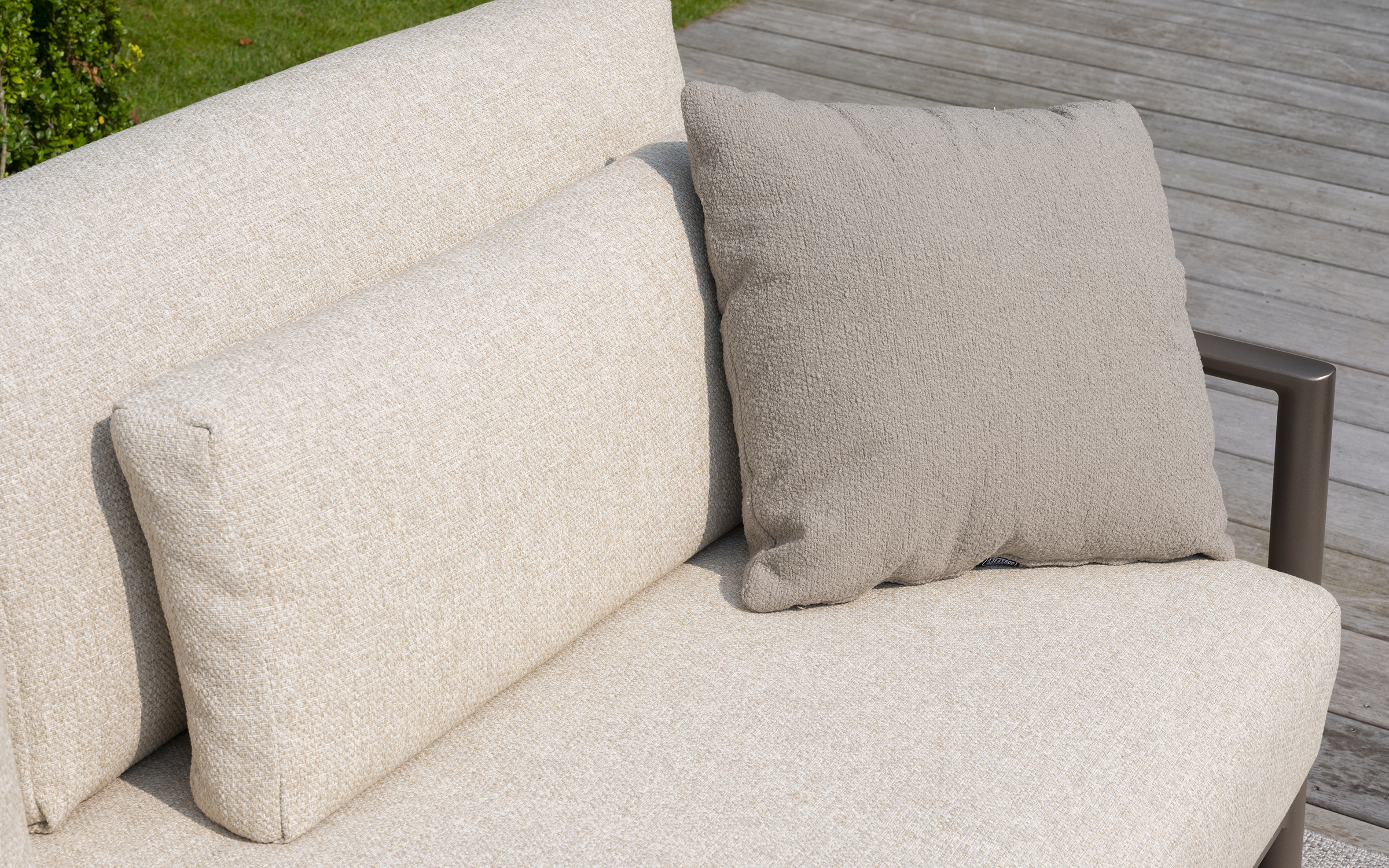 Sofa wypoczynkowa Capresi jest trwała, całkowicie odporna na warunki atmosferyczne i bardzo łatwa w utrzymaniu, zapewniając lata beztroskiej przyjemności wypoczynku.