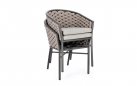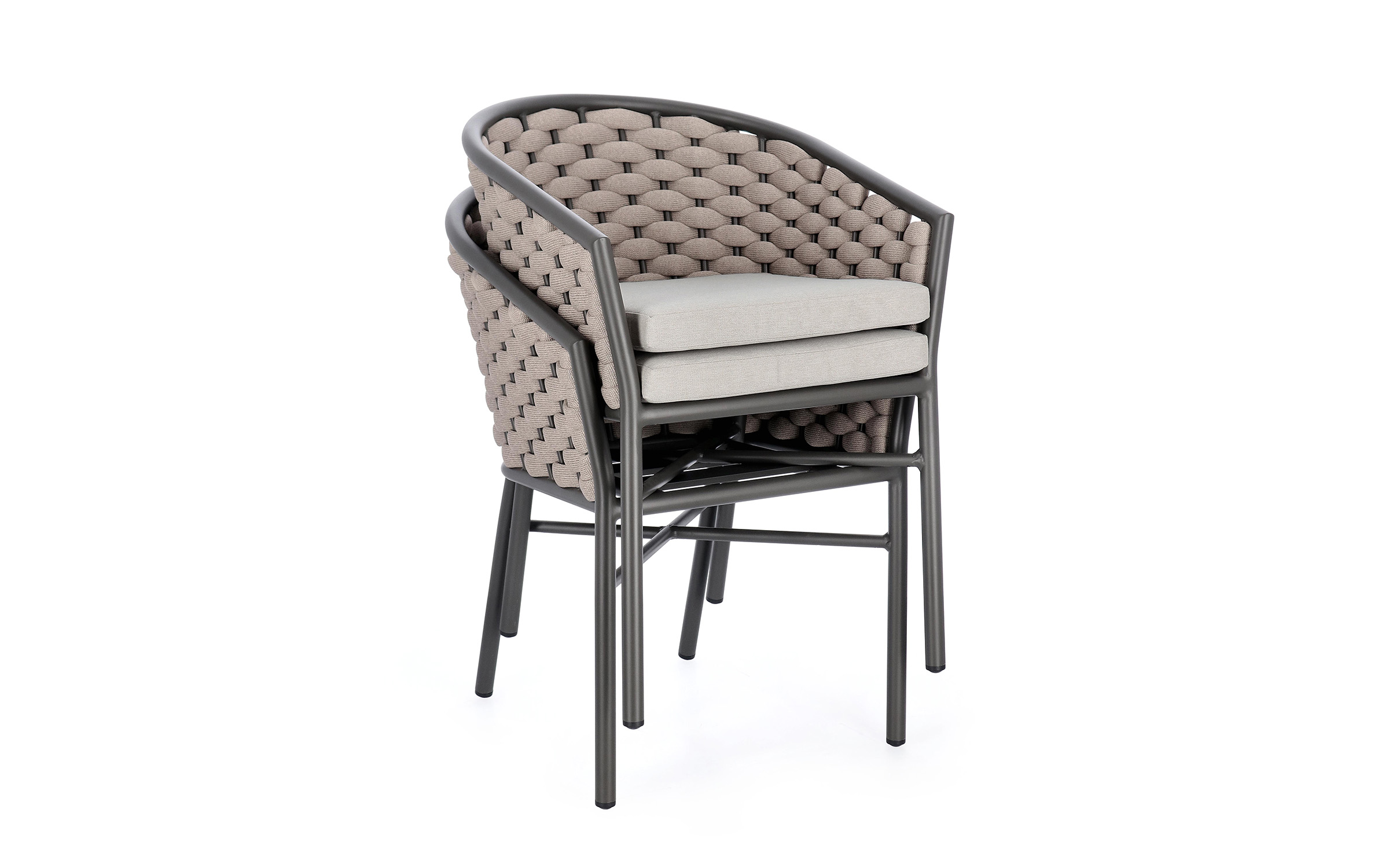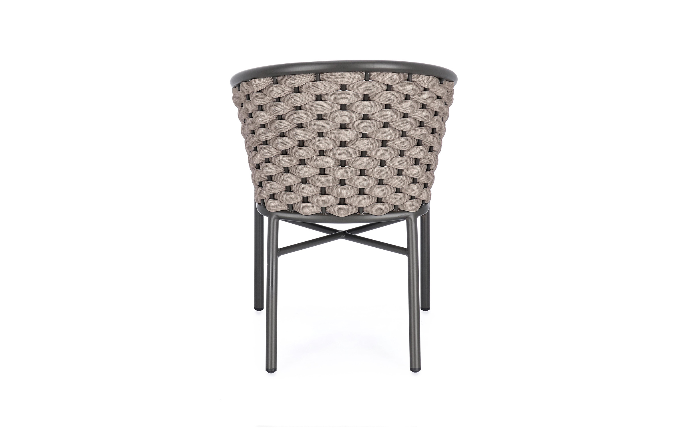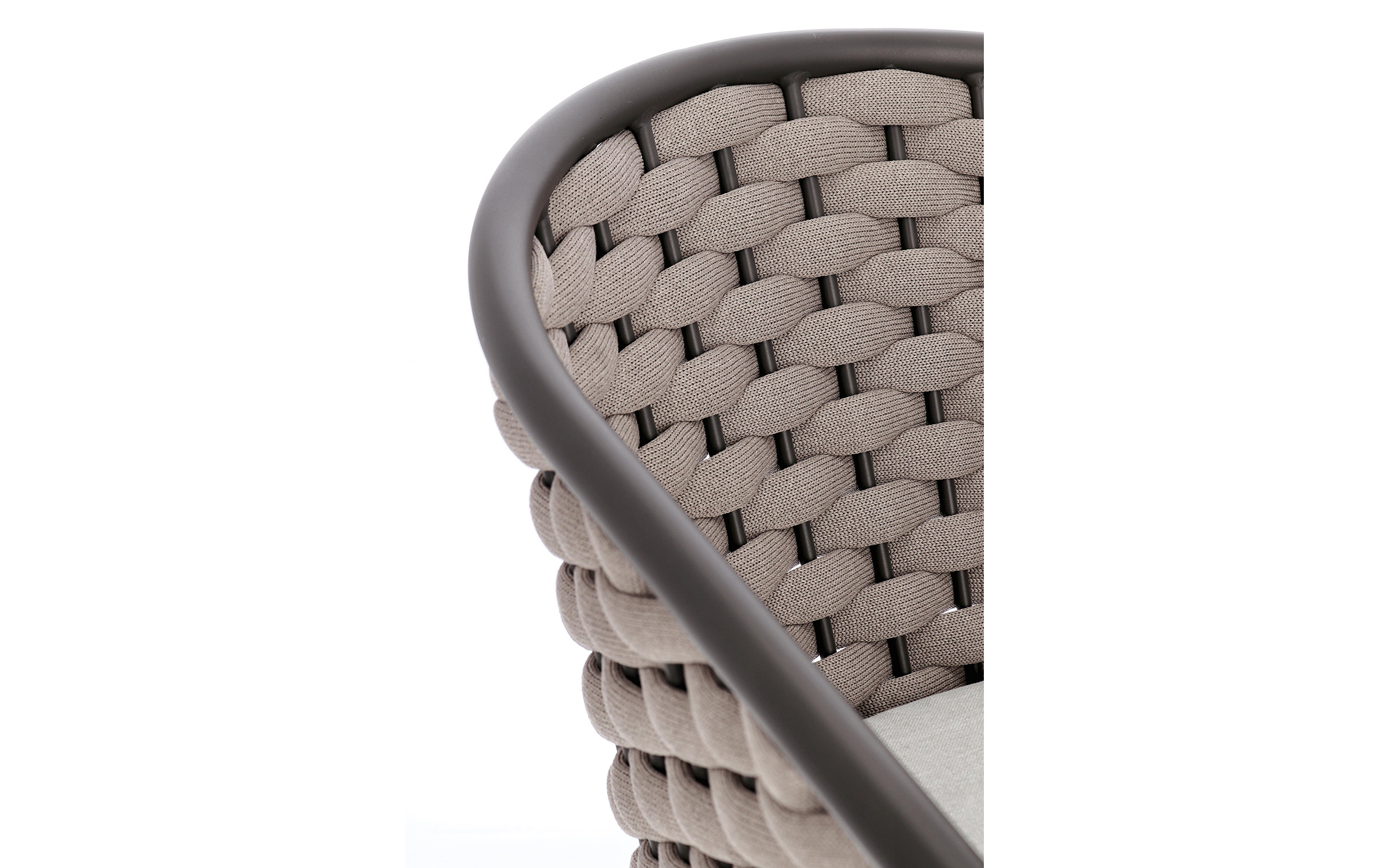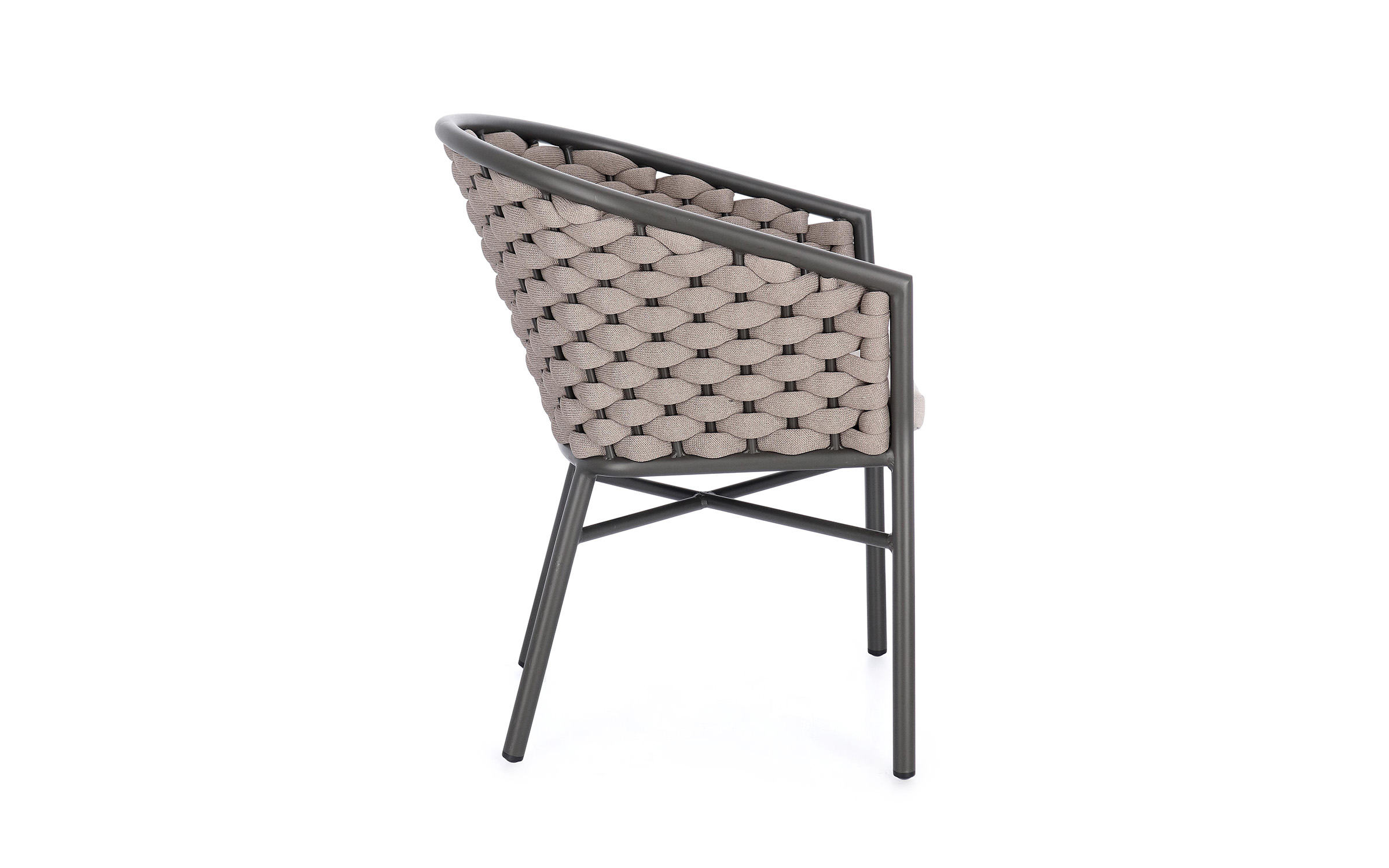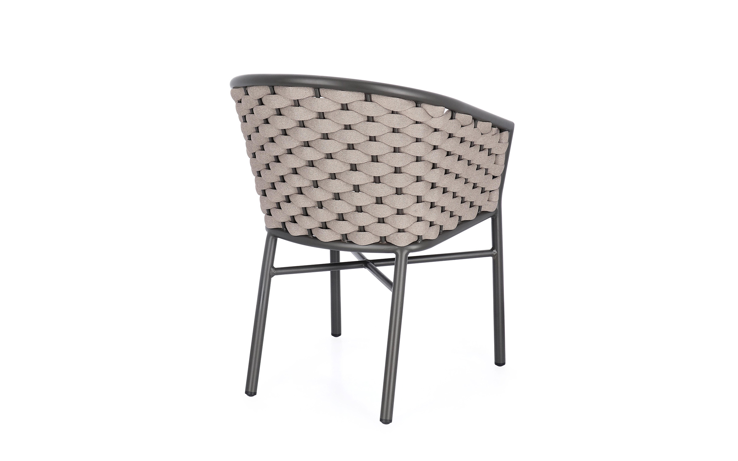 Aluminiowe krzesło ogrodowe o stabilnej konstrukcji z aluminium. Pełne opływowe oparcie z wplecionymi wypukłymi splotami materiału (rękaw z materiału Olefin z wkładem polietylenowym), które dodają mu nowoczesności.