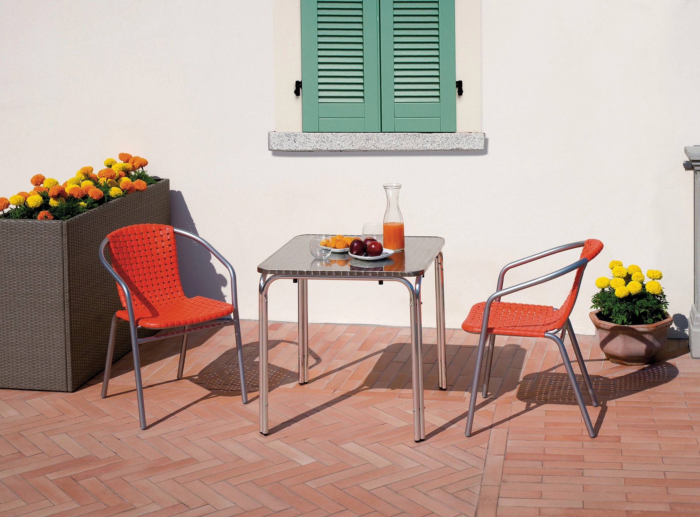 Konstrukcja stal malowana na kolor srebrny matowy. Krzesła można sztaplować.