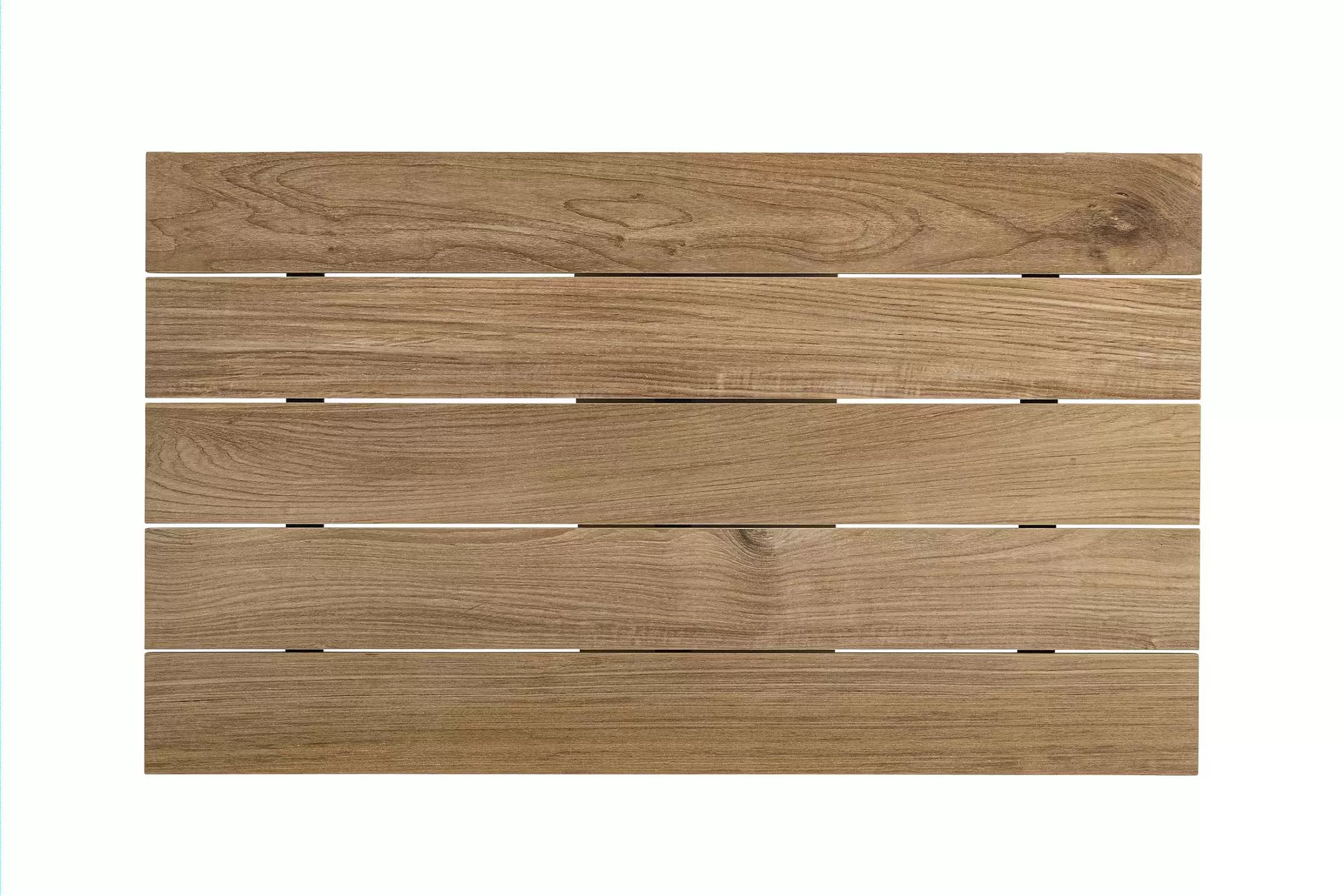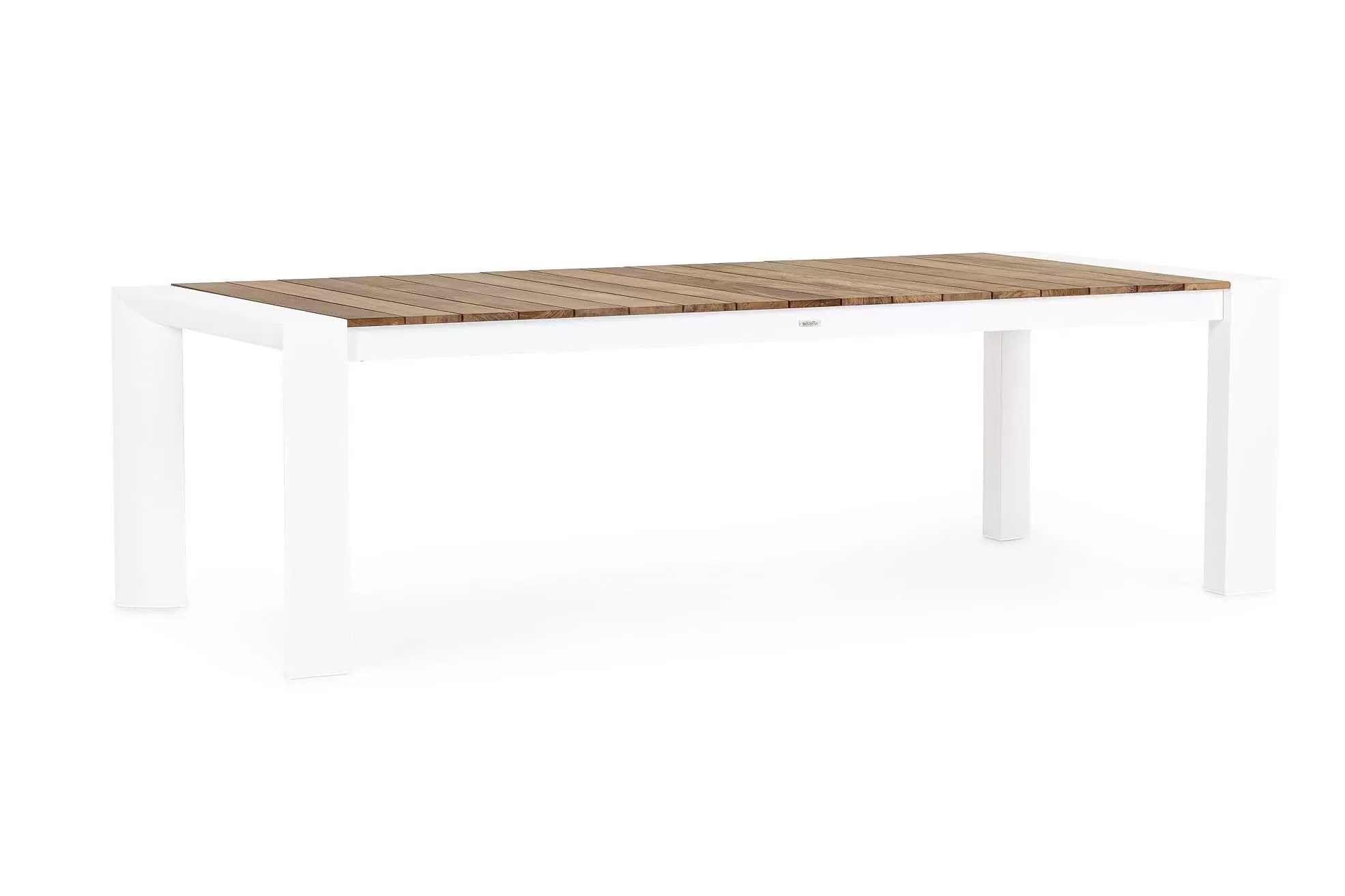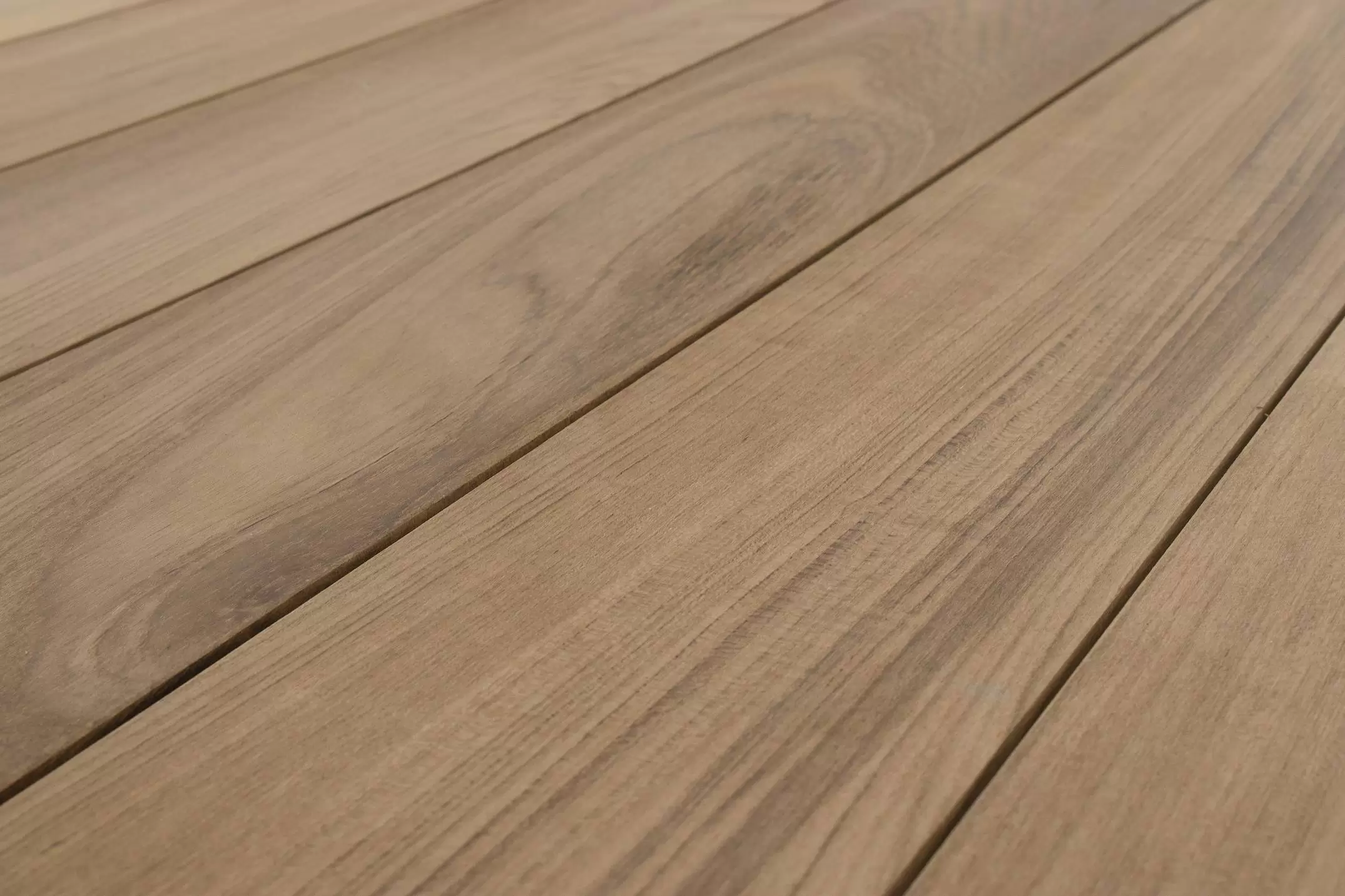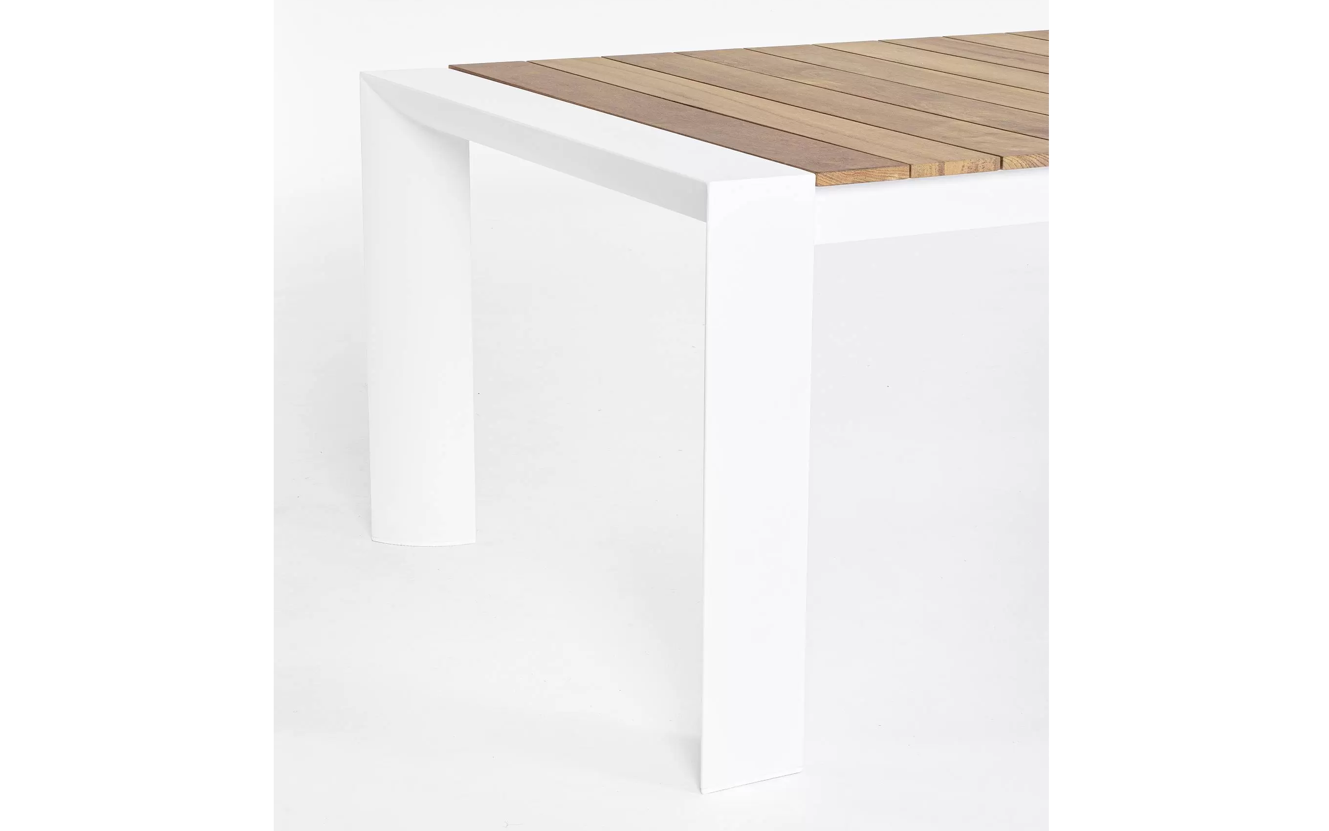 Blat stołu z desek teak. Elementy montażowe ze stali nierdzewnej.