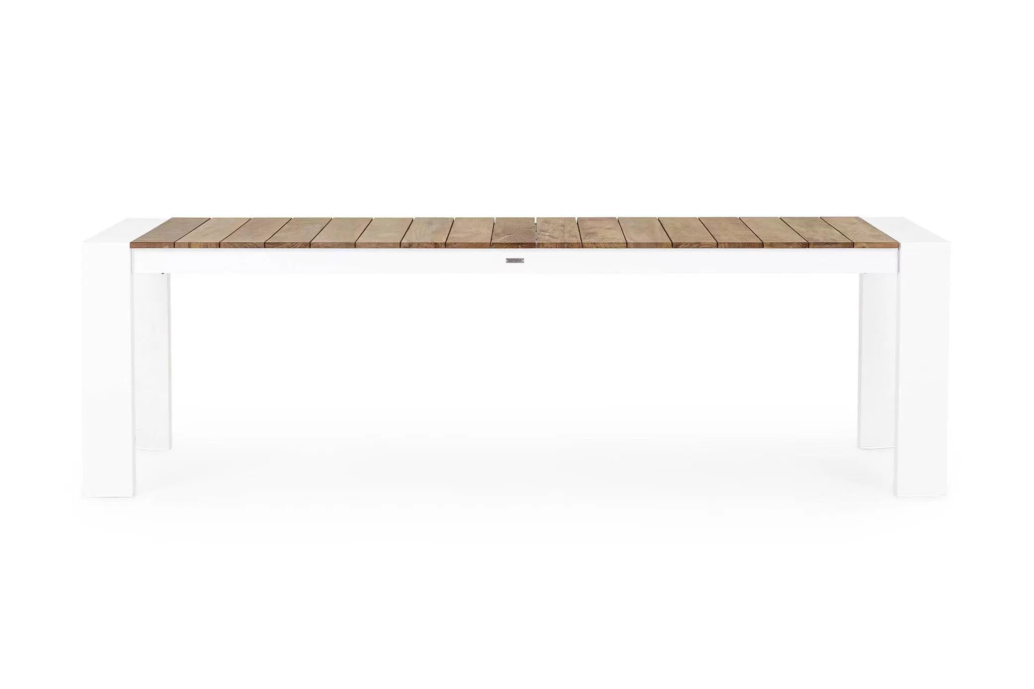 Stół do ogrodowej jadalni 253x110 cm wydłużany dwustopniowo poprzez 319 cm do maksymalnej długości 384 cm. Mechanizm rozkładania teleskopowy. Elementy poszerzające blatu chowane pod blatem.