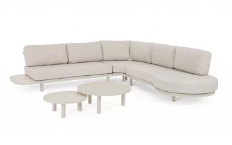 Nowoczesny narożnik na taras wykonany w całości z aluminium, z zakończeniem wyspowym na jednym z ramion. Cechą charakterystyczną tego modelu to okrągłe profile konstrukcji i oraz zaokrąglone krawędzie. Także część narożna narożnika ogrodowego jest zaokrąglona.