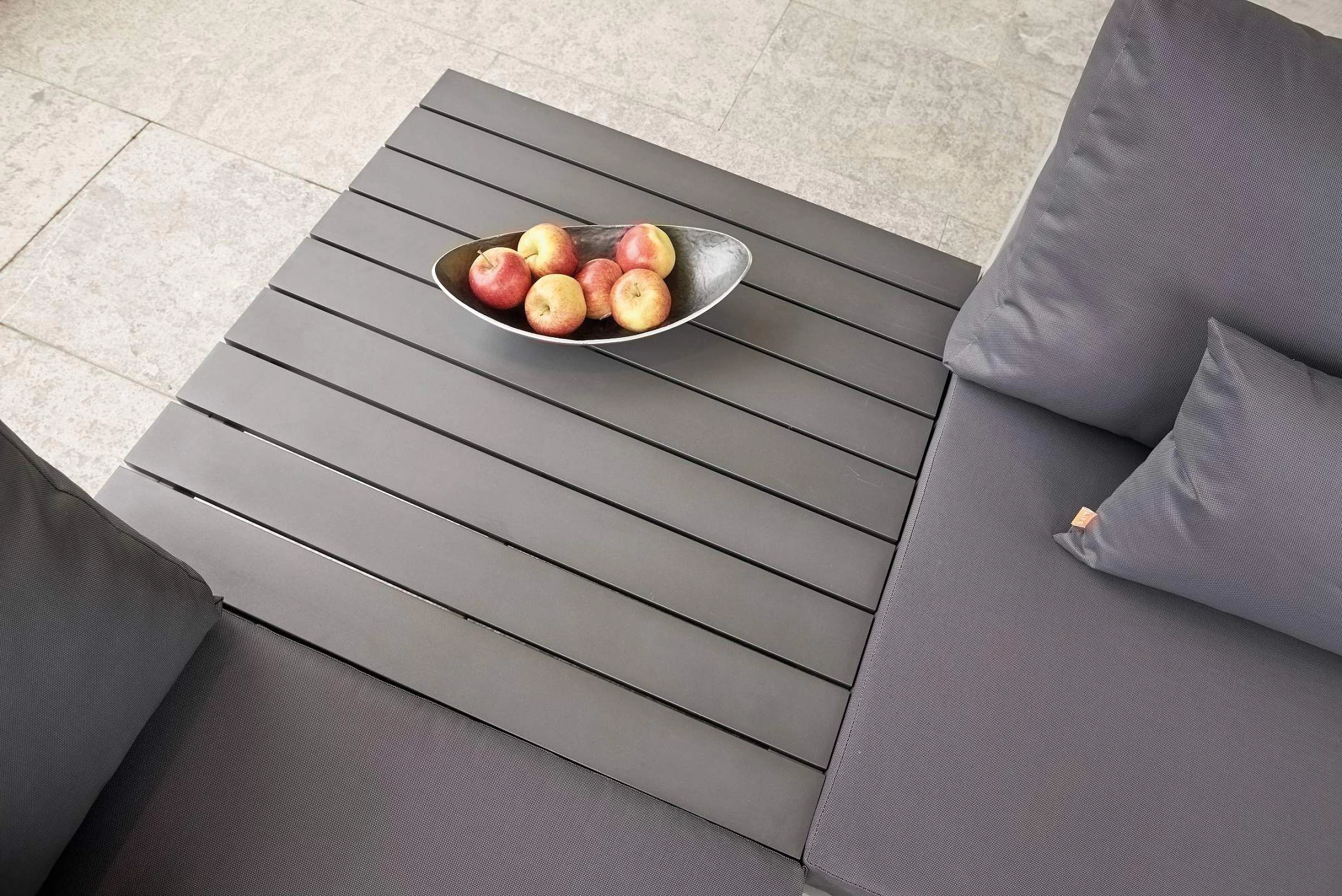 Z kolekcją modułowych mebli ogrodowych Mallorca możesz cieszyć się nowoczesnym wzornictwem z aluminiowym szkieletem z podłokietnikami z kompozytu drewnianego.
