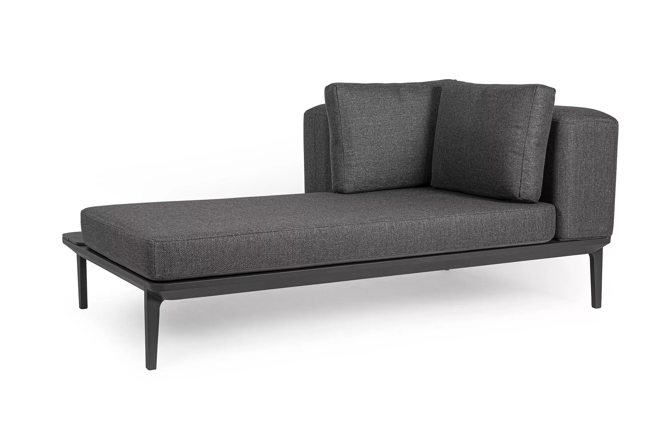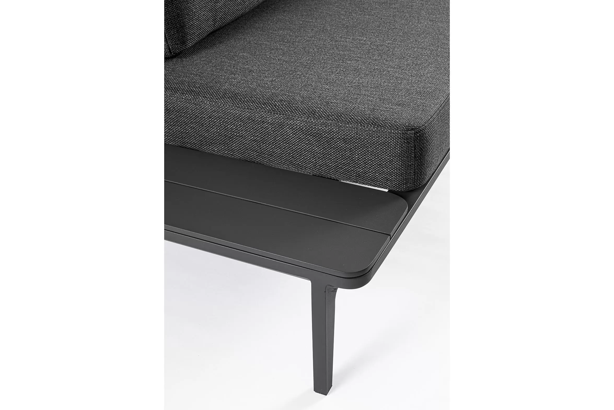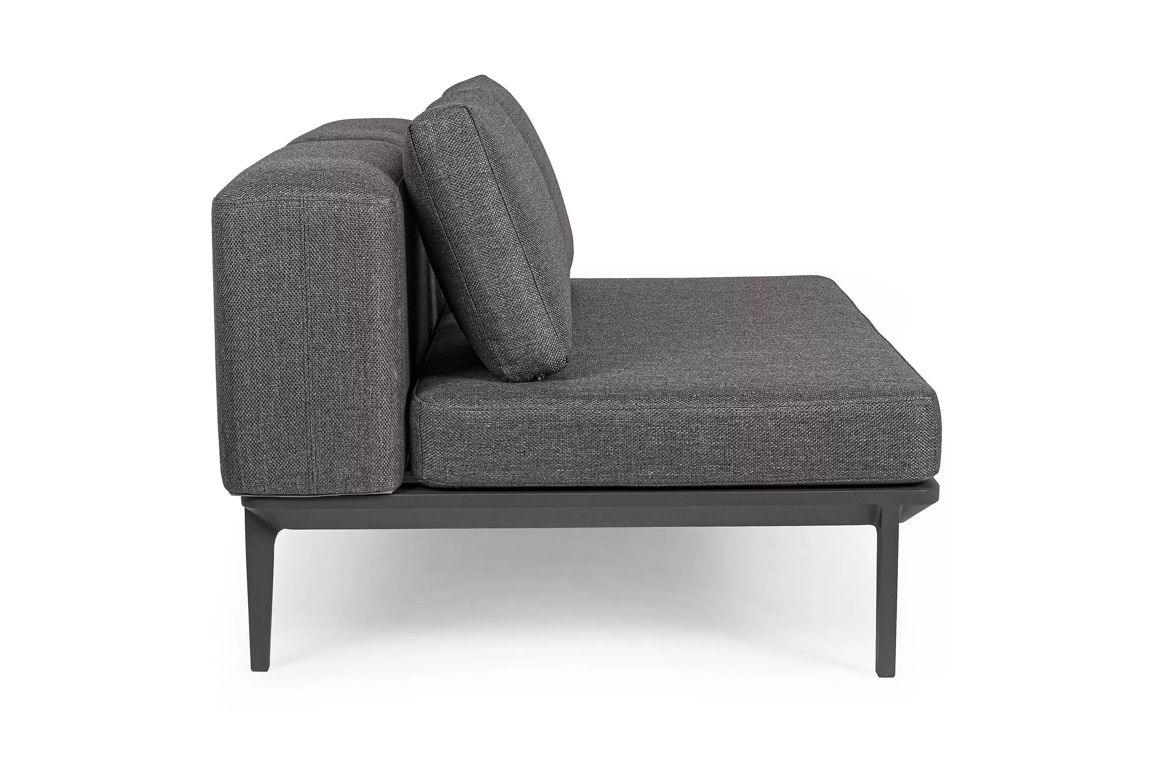 Aluminiowa nowoczesna sofa pozwalająca na zamontowanie oparć w 4 kombinacjach.