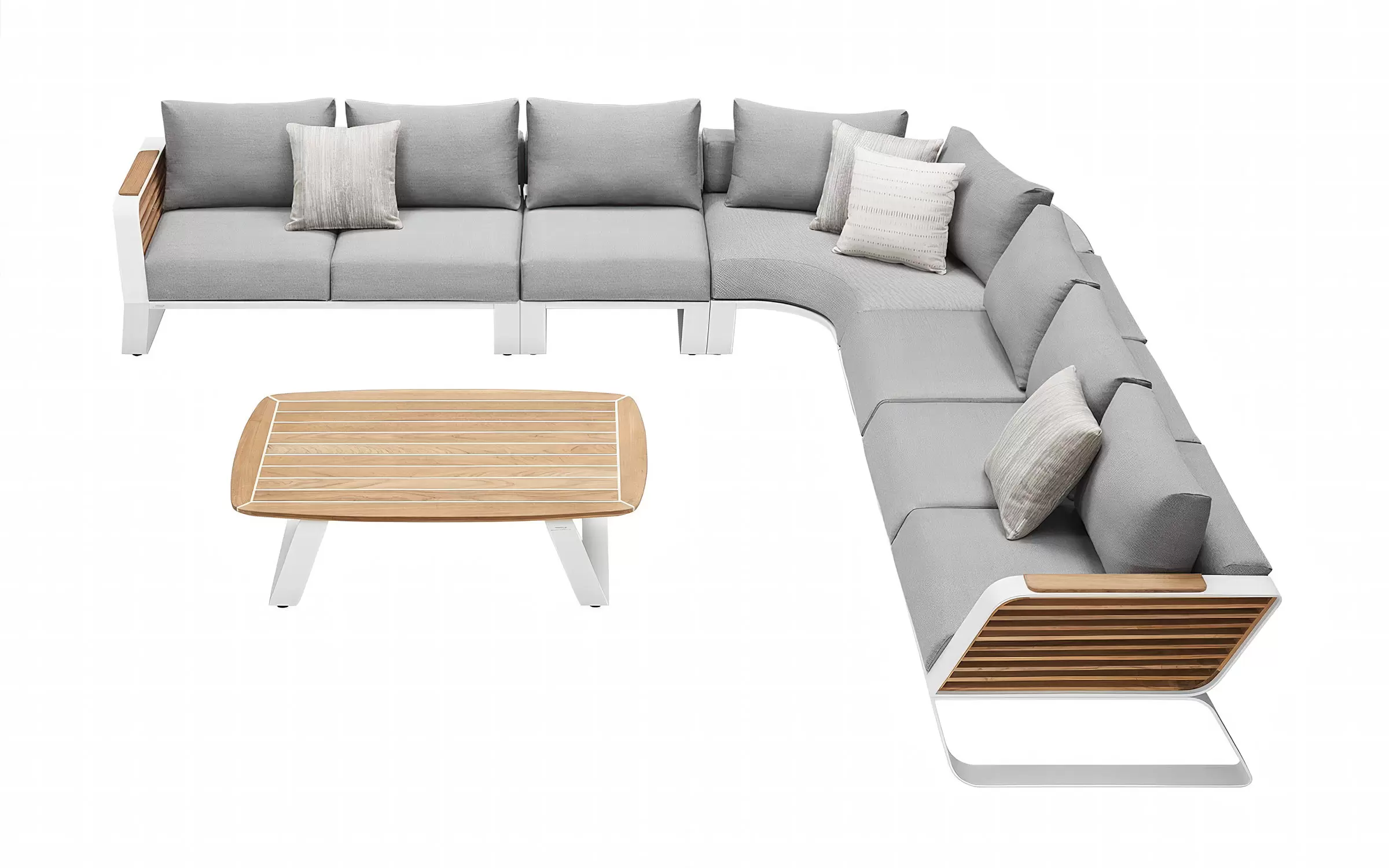 Wspaniała, nowoczesna konstrukcja mebli podkreśla połączenie drewna tekowego z aluminiową lekkością stelaża, a wszystko to dopełnione jest maksymalnym komfortem, funkcjonalnością, jakością i niezawodnością.